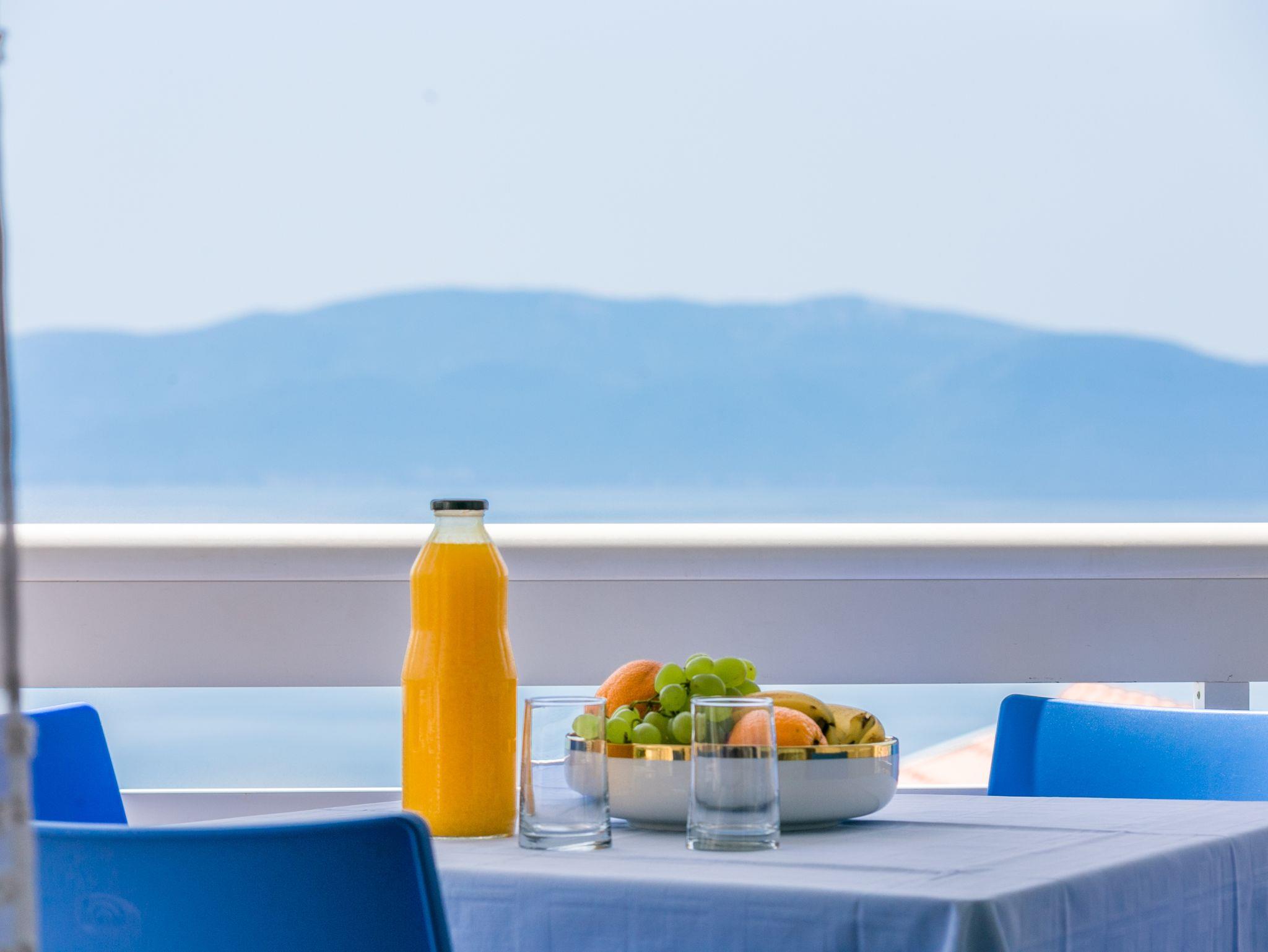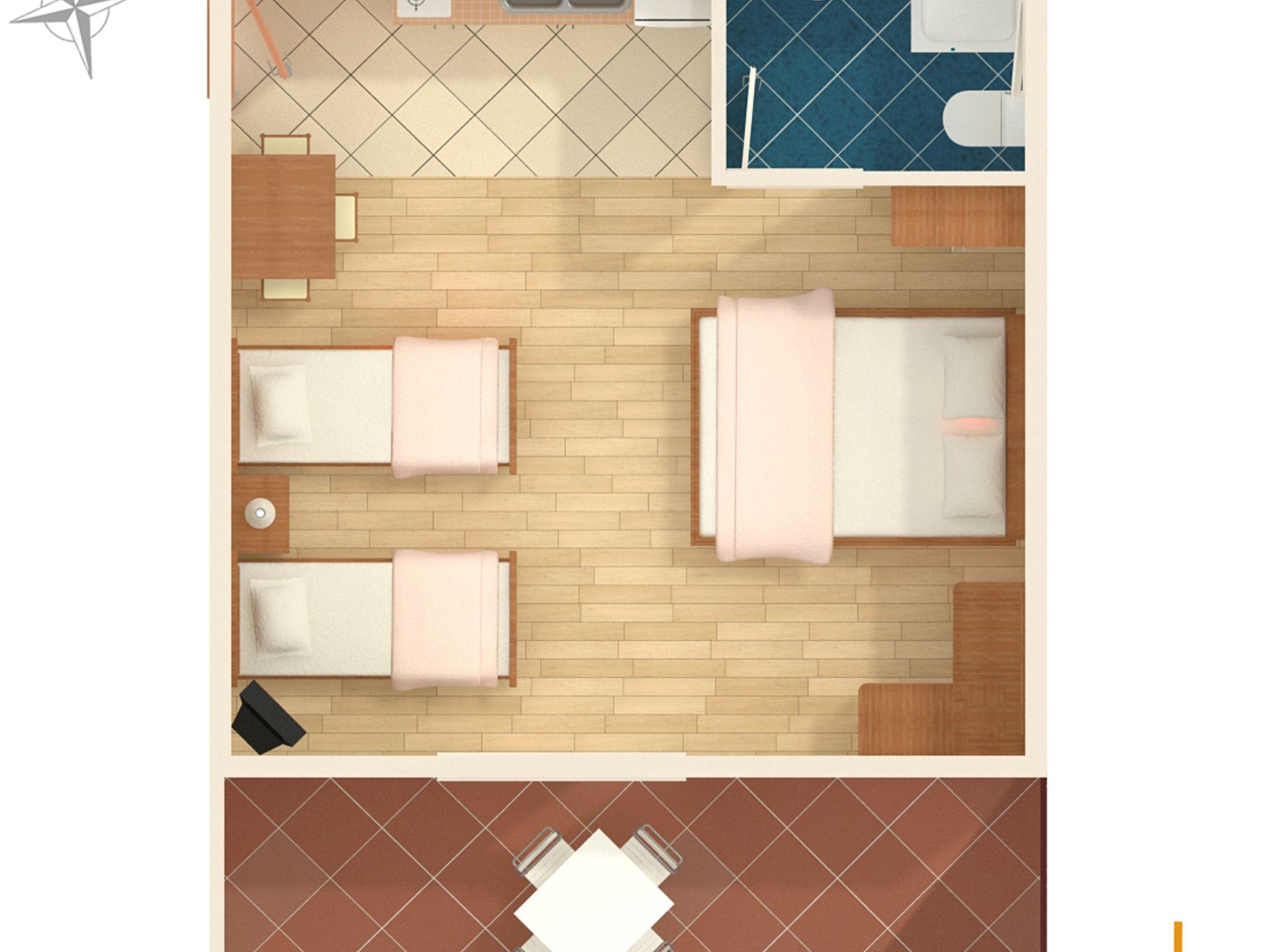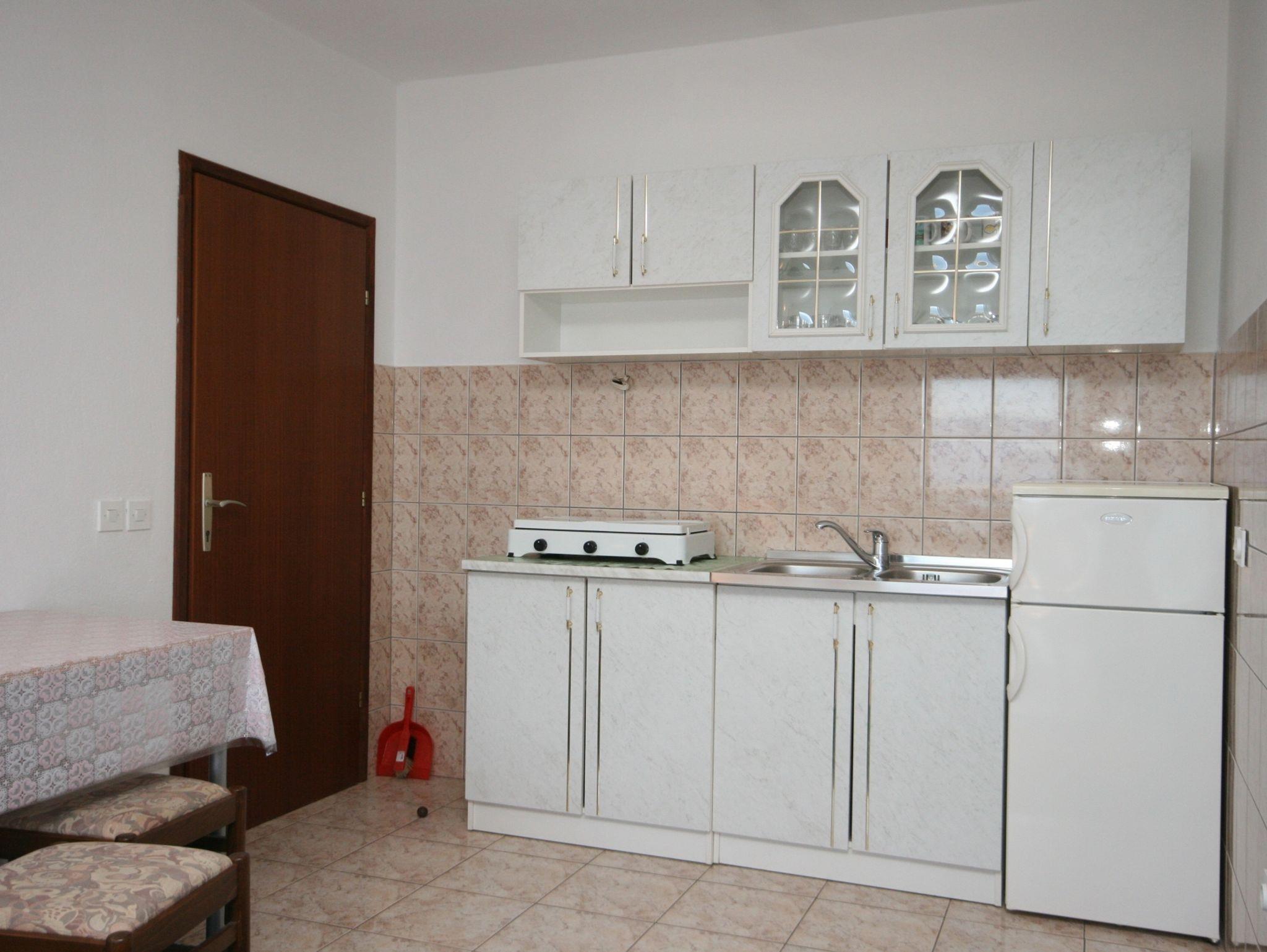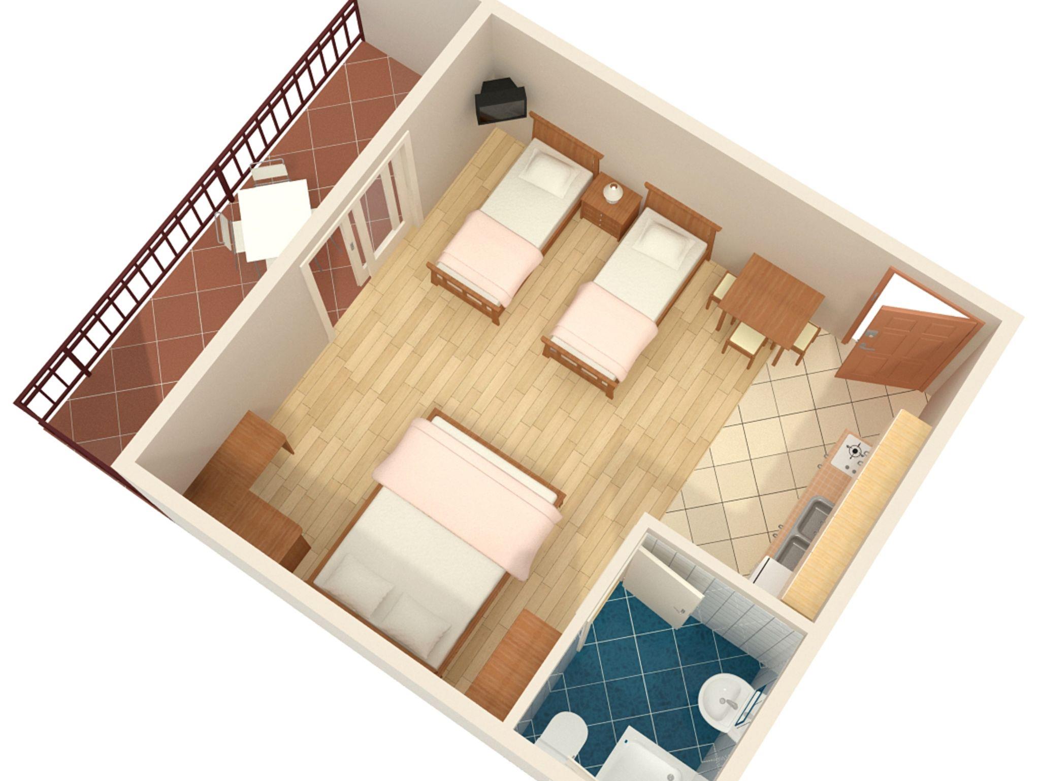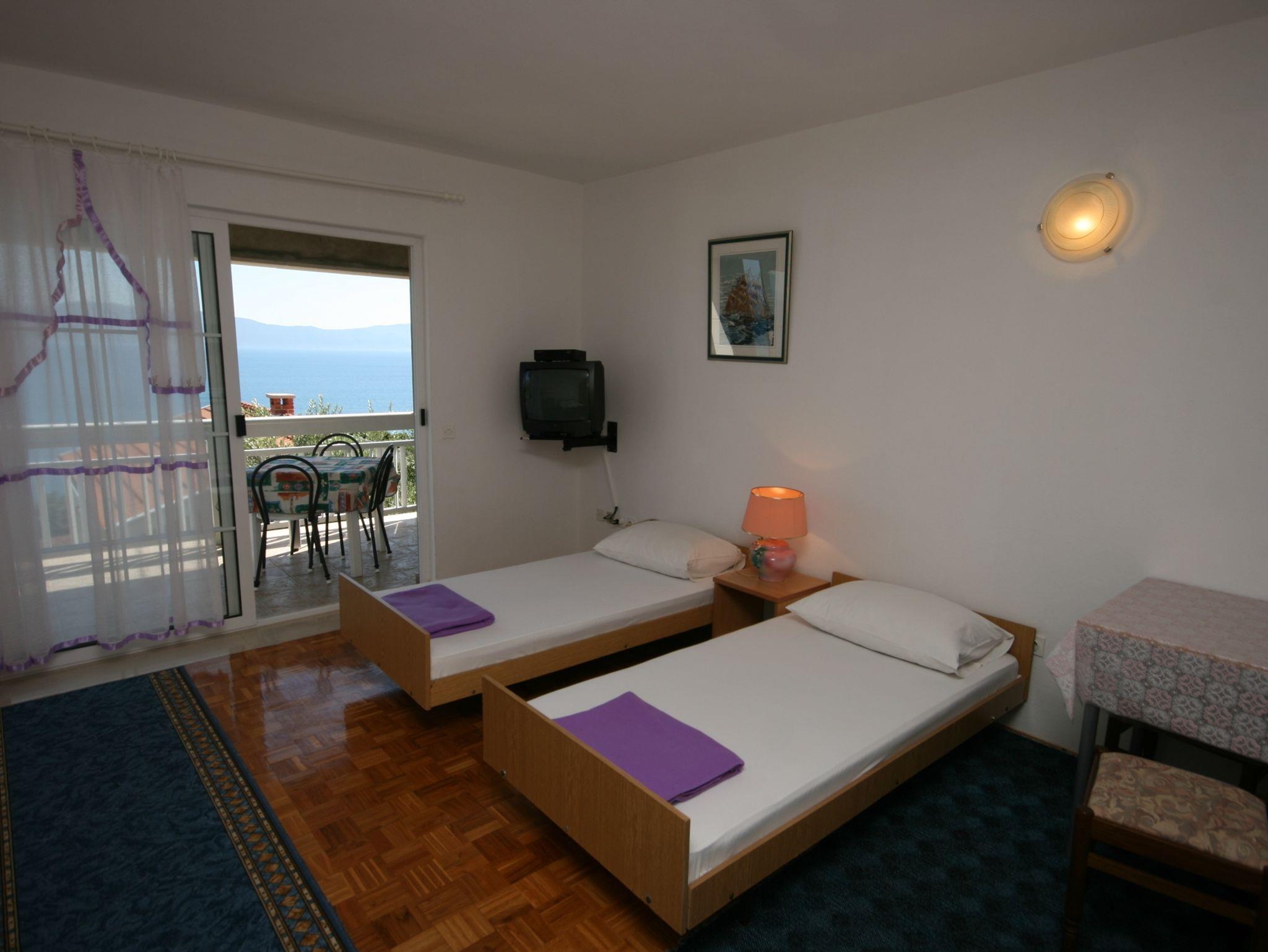 Studio bietet Platz für 4 Gäste. Die Betten sind in Schlafzimmern, die es 1 gibt, innerhalb einer Gesamtfläche von 33m2, angeordnet. Die Gäste haben eine eigene Terrasse zur Verfügung, auf der sie in warmen Sommernächten genießen können. Das Studio-Apartment bietet Meerblick. IM PREIS INBEGRIFFEN: Kurtaxe, Endreinigung, Parkplatz, Internet, Kinderbett, Bügeleisen, Bügelbrett, Föhn, Sonnenschirm, Liegestühle. VERBINDLICHE ZUSÄTZLICHE KOSTEN: Aufzahlung für Kurzaufenthalte (prozentualer Zuschlag pro Nächtigungsanzahl: 30% - 1, 20% - 2, 10% - 3). UNVERBINDLICHE ZUSÄTZLICHE KOSTEN: Klimatisierung (8,00 € pro Nacht). Die Verfügbarkeit zusätzlicher Dienstleistungen in Ihrem reservierten Termin und die Preise derselben (falls nicht aufgeführt) müssen im Voraus überprüft werden. Zusätzliche Dienstleistungen die in der Zahlungsaufforderung nicht aufgeführt sind werden direkt beim Vermieter bezahlt, angenommen der Gast nutzt auch diese. Ermäßigung auf den Grundpreis: Gratistag 14=13 (bei einem Aufenthalt von 14 Tagen oder mehr erhalten Sie einen Gratistag für den Aufenthalt bis 31.12.26).