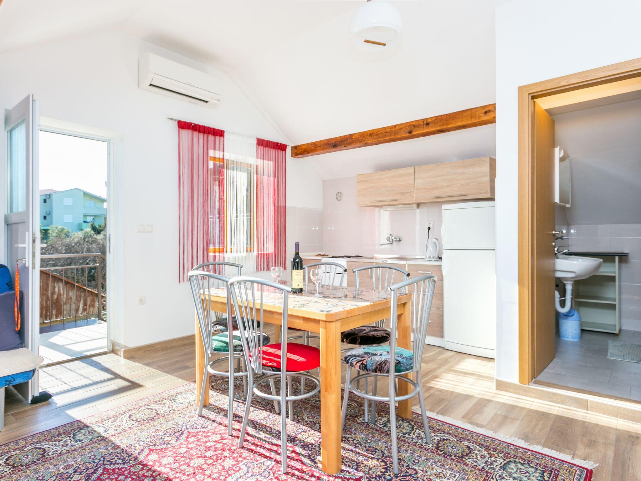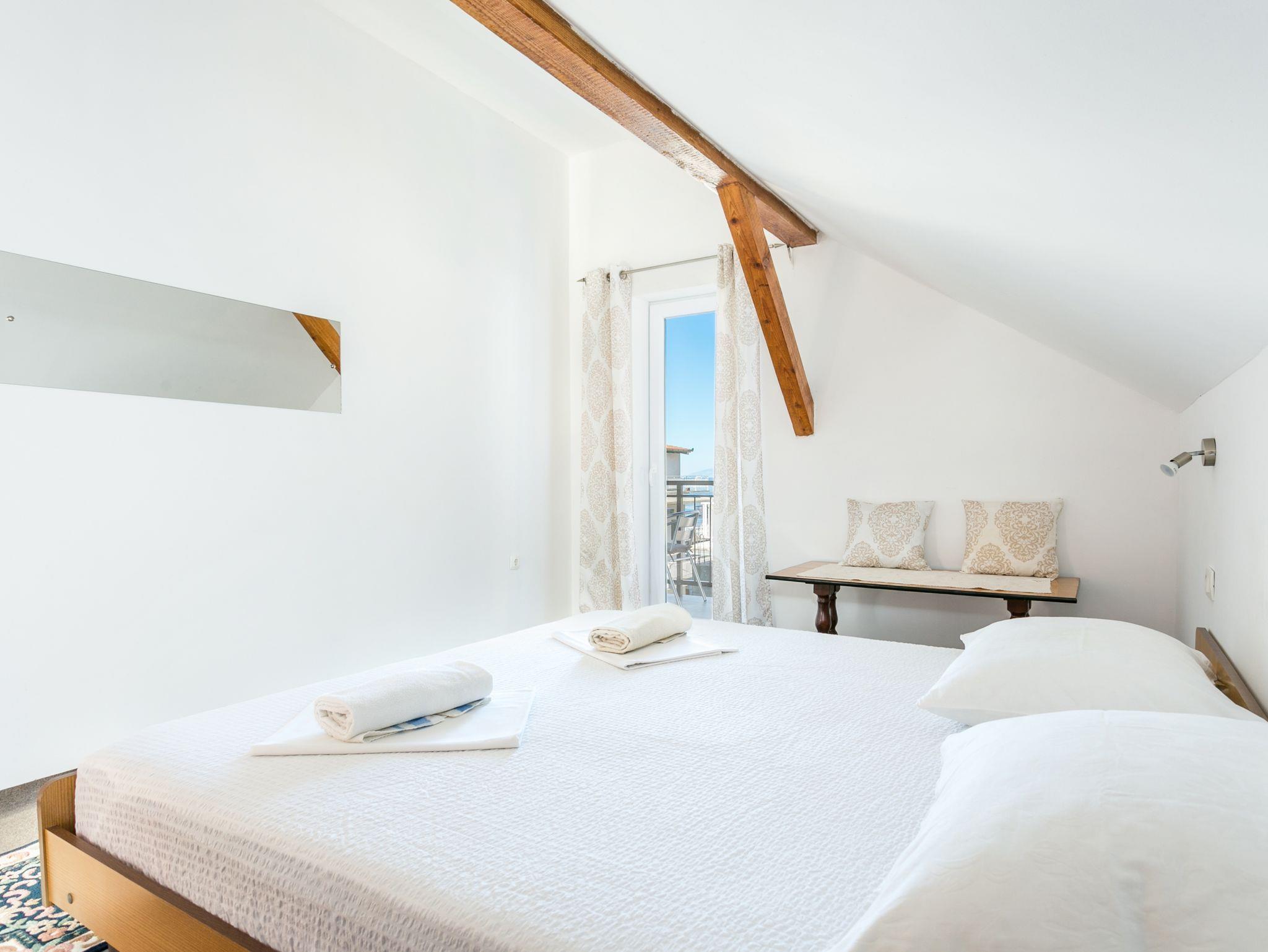 Ferienwohnung bietet Platz für 5 Gäste. Die Betten sind in Schlafzimmern, die es 2 gibt, innerhalb einer Gesamtfläche von 56m2, angeordnet. Die Gäste haben einen eigenen Balkon zur Verfügung, auf der sie in warmen Sommernächten genießen können. Das Apartment bietet Meerblick. Es ist erlaubt, Speisen auf dem Gemeinschafts-Grill vorzubereiten. IM PREIS INBEGRIFFEN: Kurtaxe, Endreinigung, Parkplatz, Internet, Bügeleisen, Bügelbrett, Föhn. VERBINDLICHE ZUSÄTZLICHE KOSTEN: Aufzahlung für Kurzaufenthalte (prozentualer Zuschlag pro Nächtigungsanzahl: 30% - 1, 20% - 2, 10% - 3). UNVERBINDLICHE ZUSÄTZLICHE KOSTEN: Klimatisierung (5,00 € pro Nacht), Wäschewaschen (8,00 € Waschen). Die Verfügbarkeit zusätzlicher Dienstleistungen in Ihrem reservierten Termin und die Preise derselben (falls nicht aufgeführt) müssen im Voraus überprüft werden. Zusätzliche Dienstleistungen die in der Zahlungsaufforderung nicht aufgeführt sind werden direkt beim Vermieter bezahlt, angenommen der Gast nutzt auch diese.