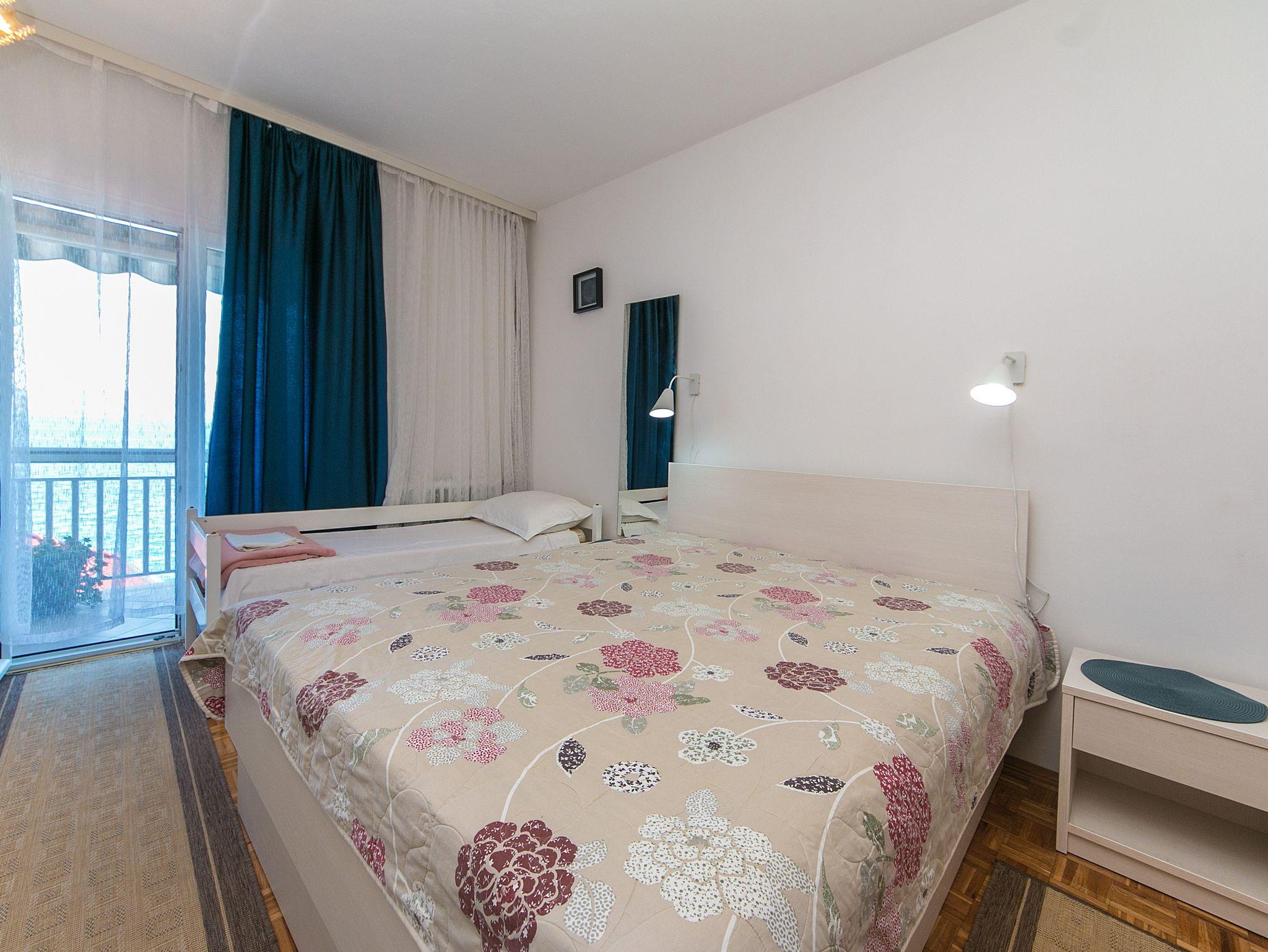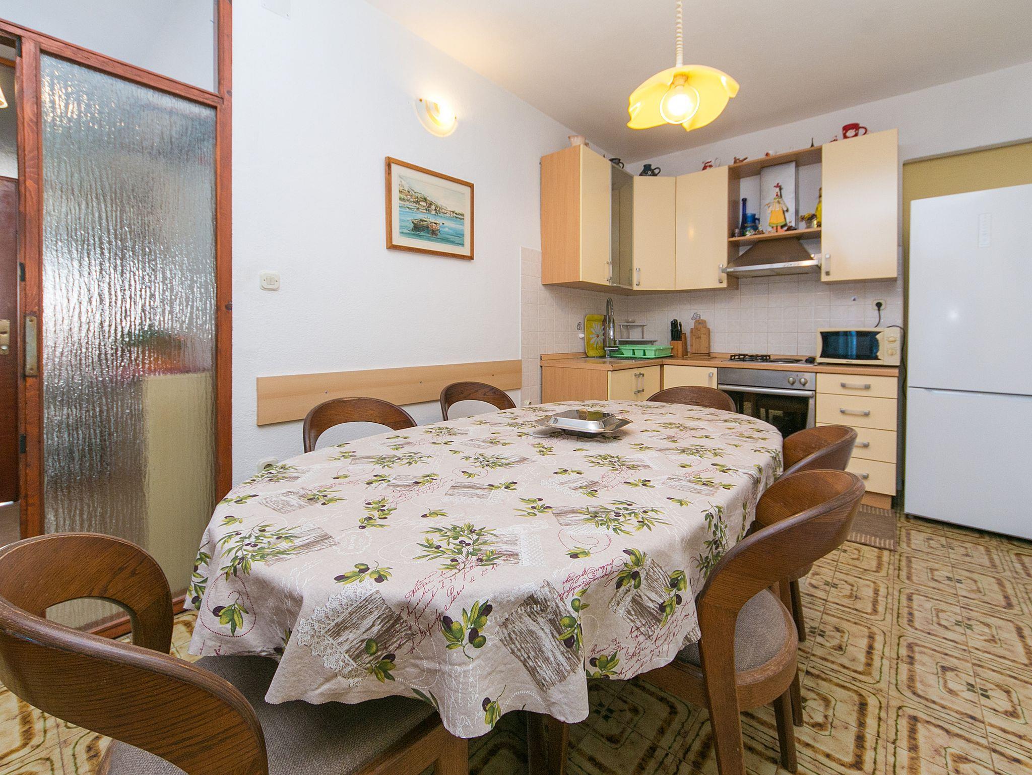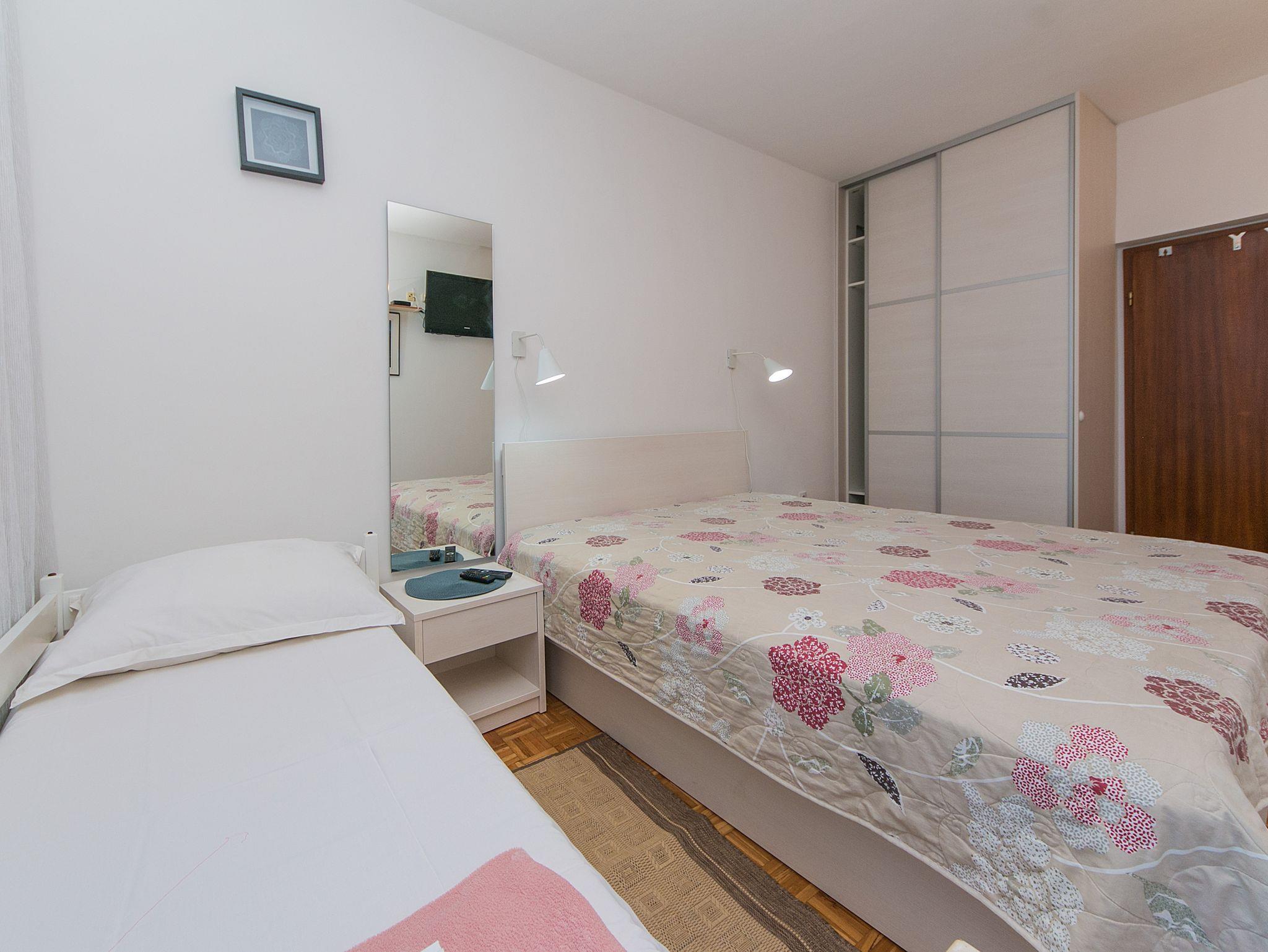 Ferienwohnung bietet Platz für 5 Gäste. Die Betten sind in Schlafzimmern, die es 1 gibt, und in Wohnzimmer, innerhalb einer Gesamtfläche von 62m2, angeordnet. Die Gäste haben einen eigenen Balkon zur Verfügung, auf der sie in warmen Sommernächten genießen können. Das Apartment bietet Meerblick. IM PREIS INBEGRIFFEN: Kurtaxe, Endreinigung, Parkplatz, Internet, Bootsanlegeplatz, Bügeleisen, Bügelbrett, Föhn. VERBINDLICHE ZUSÄTZLICHE KOSTEN: Aufzahlung für Kurzaufenthalte (prozentualer Zuschlag pro Nächtigungsanzahl: 30% - 1, 20% - 2, 10% - 3). UNVERBINDLICHE ZUSÄTZLICHE KOSTEN: Klimatisierung (5,00 € pro Nacht). Die Verfügbarkeit zusätzlicher Dienstleistungen in Ihrem reservierten Termin und die Preise derselben (falls nicht aufgeführt) müssen im Voraus überprüft werden. Zusätzliche Dienstleistungen die in der Zahlungsaufforderung nicht aufgeführt sind werden direkt beim Vermieter bezahlt, angenommen der Gast nutzt auch diese.