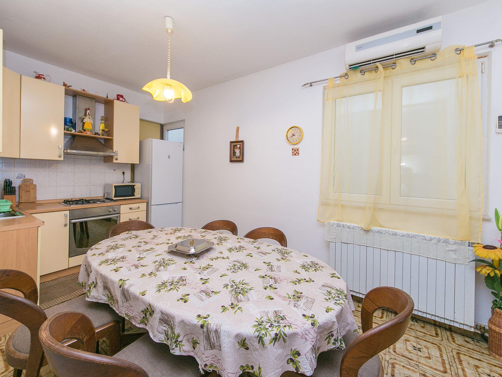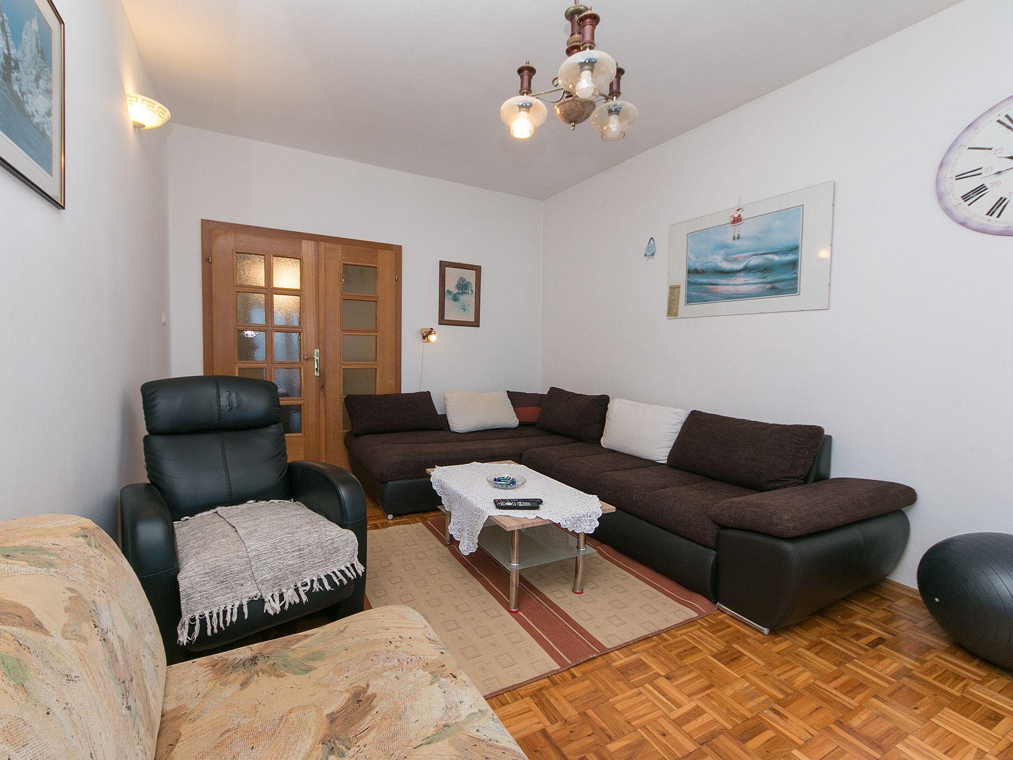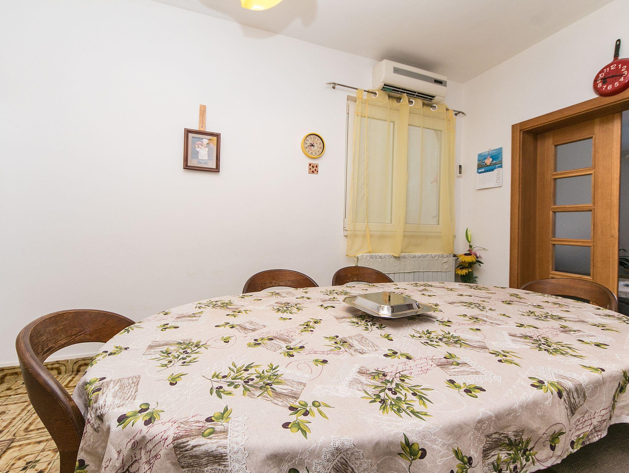 Ferienwohnung bietet Platz für 5 Gäste. Die Betten sind in Schlafzimmern, die es 1 gibt, und in Wohnzimmer, innerhalb einer Gesamtfläche von 62m2, angeordnet. Die Gäste haben einen eigenen Balkon zur Verfügung, auf der sie in warmen Sommernächten genießen können. Das Apartment bietet Meerblick. IM PREIS INBEGRIFFEN: Kurtaxe, Endreinigung, Parkplatz, Internet, Bootsanlegeplatz, Bügeleisen, Bügelbrett, Föhn. VERBINDLICHE ZUSÄTZLICHE KOSTEN: Aufzahlung für Kurzaufenthalte (prozentualer Zuschlag pro Nächtigungsanzahl: 30% - 1, 20% - 2, 10% - 3). UNVERBINDLICHE ZUSÄTZLICHE KOSTEN: Klimatisierung (5,00 € pro Nacht). Die Verfügbarkeit zusätzlicher Dienstleistungen in Ihrem reservierten Termin und die Preise derselben (falls nicht aufgeführt) müssen im Voraus überprüft werden. Zusätzliche Dienstleistungen die in der Zahlungsaufforderung nicht aufgeführt sind werden direkt beim Vermieter bezahlt, angenommen der Gast nutzt auch diese.