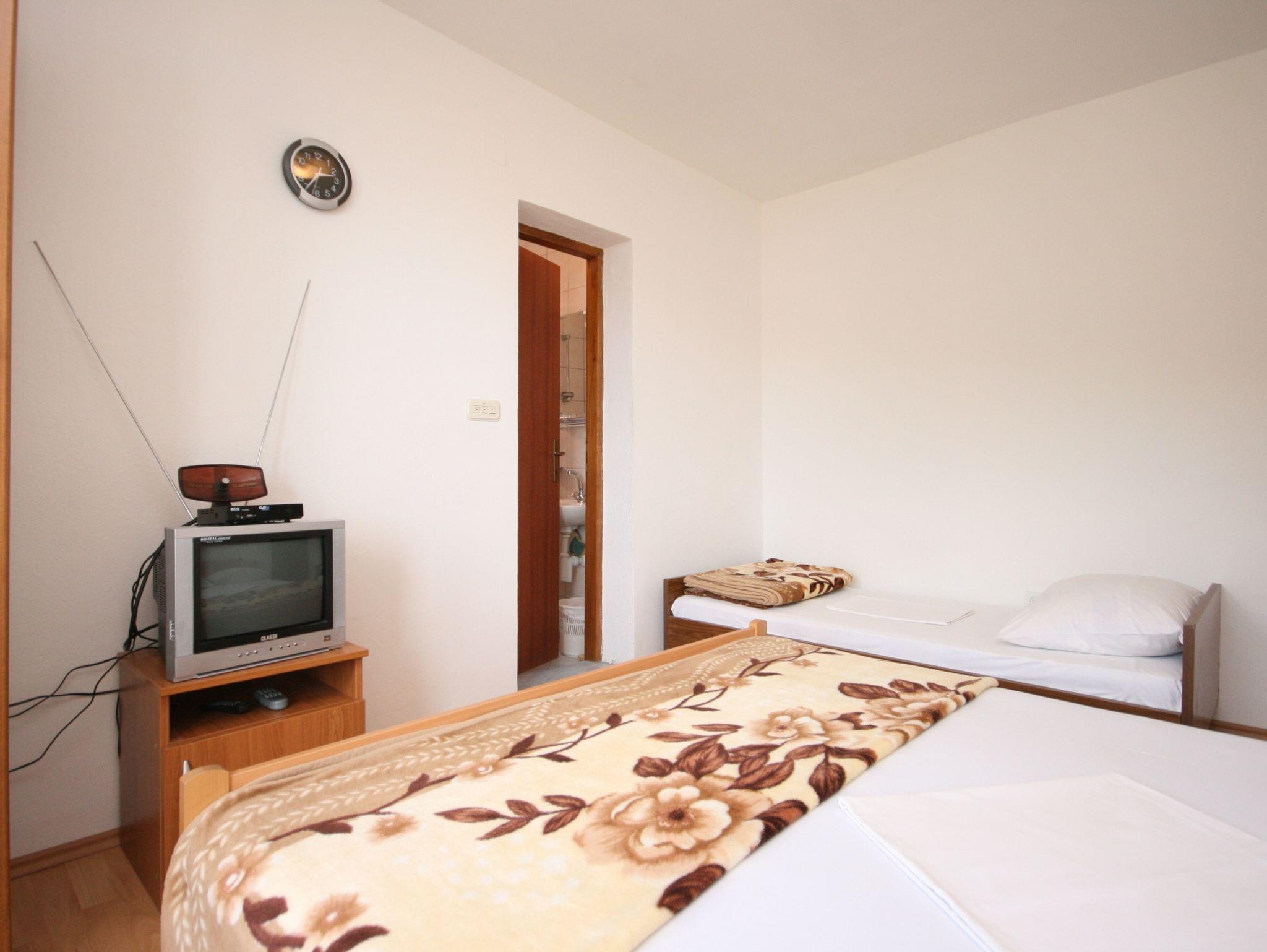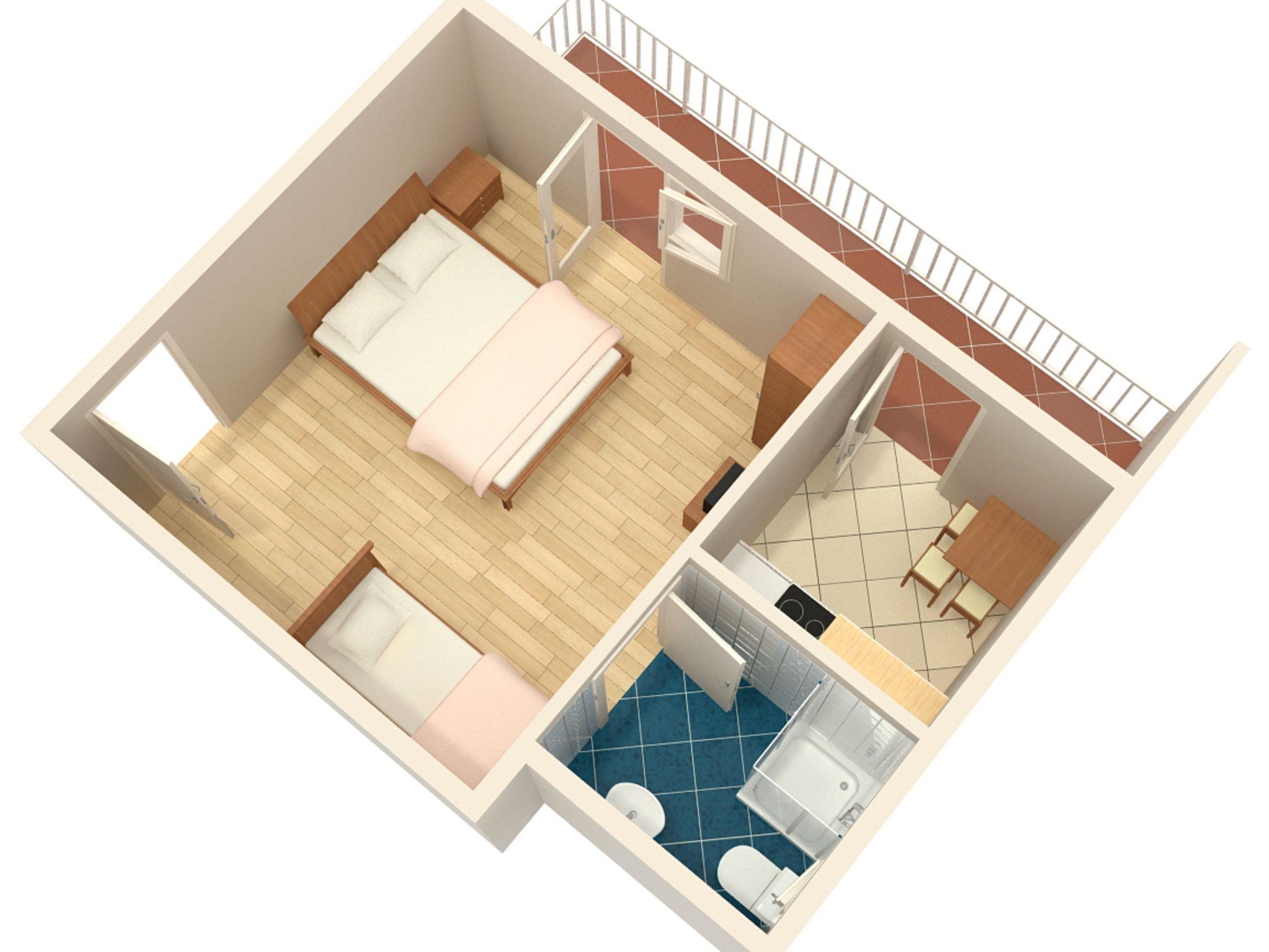 Studio bietet Platz für 3 Gäste. Die Betten sind in Schlafzimmern, die es 1 gibt, innerhalb einer Gesamtfläche von 16m2, angeordnet. Die Gäste haben einen eigenen Balkon zur Verfügung, auf der sie in warmen Sommernächten genießen können. Das Studio-Apartment bietet Meerblick. Es ist erlaubt, Speisen auf dem Gemeinschafts-Grill vorzubereiten. IM PREIS INBEGRIFFEN: Kurtaxe, Endreinigung, Parkplatz, Internet, Wäschewaschen. VERBINDLICHE ZUSÄTZLICHE KOSTEN: Aufzahlung für Kurzaufenthalte (prozentualer Zuschlag pro Nächtigungsanzahl: 30% - 1, 20% - 2, 10% - 3). Die Verfügbarkeit zusätzlicher Dienstleistungen in Ihrem reservierten Termin und die Preise derselben (falls nicht aufgeführt) müssen im Voraus überprüft werden. Zusätzliche Dienstleistungen die in der Zahlungsaufforderung nicht aufgeführt sind werden direkt beim Vermieter bezahlt, angenommen der Gast nutzt auch diese. Ermäßigung auf den Grundpreis: Gratistag 14=13 (bei einem Aufenthalt von 14 Tagen oder mehr erhalten Sie einen Gratistag für den Aufenthalt bis 31.12.26).