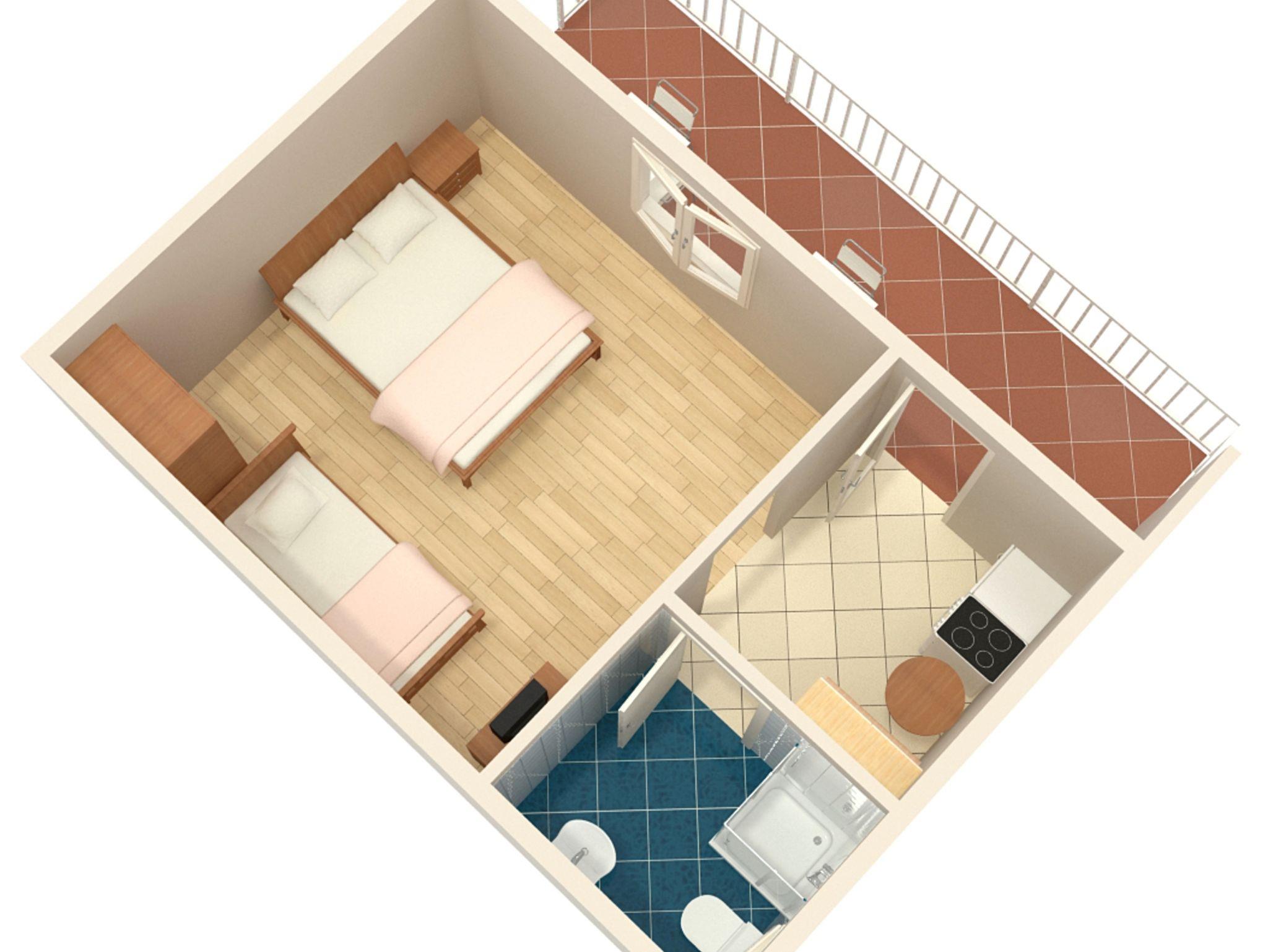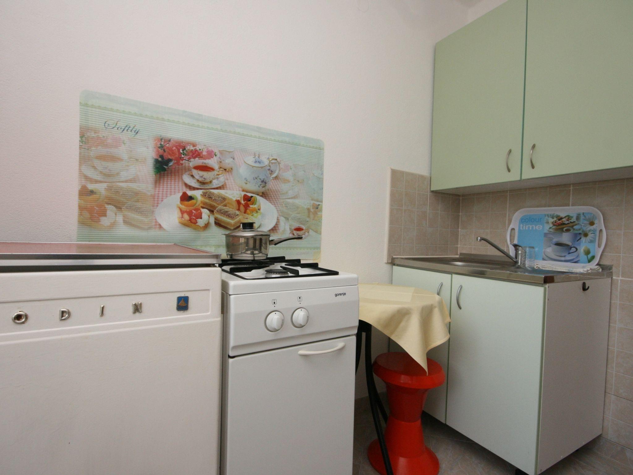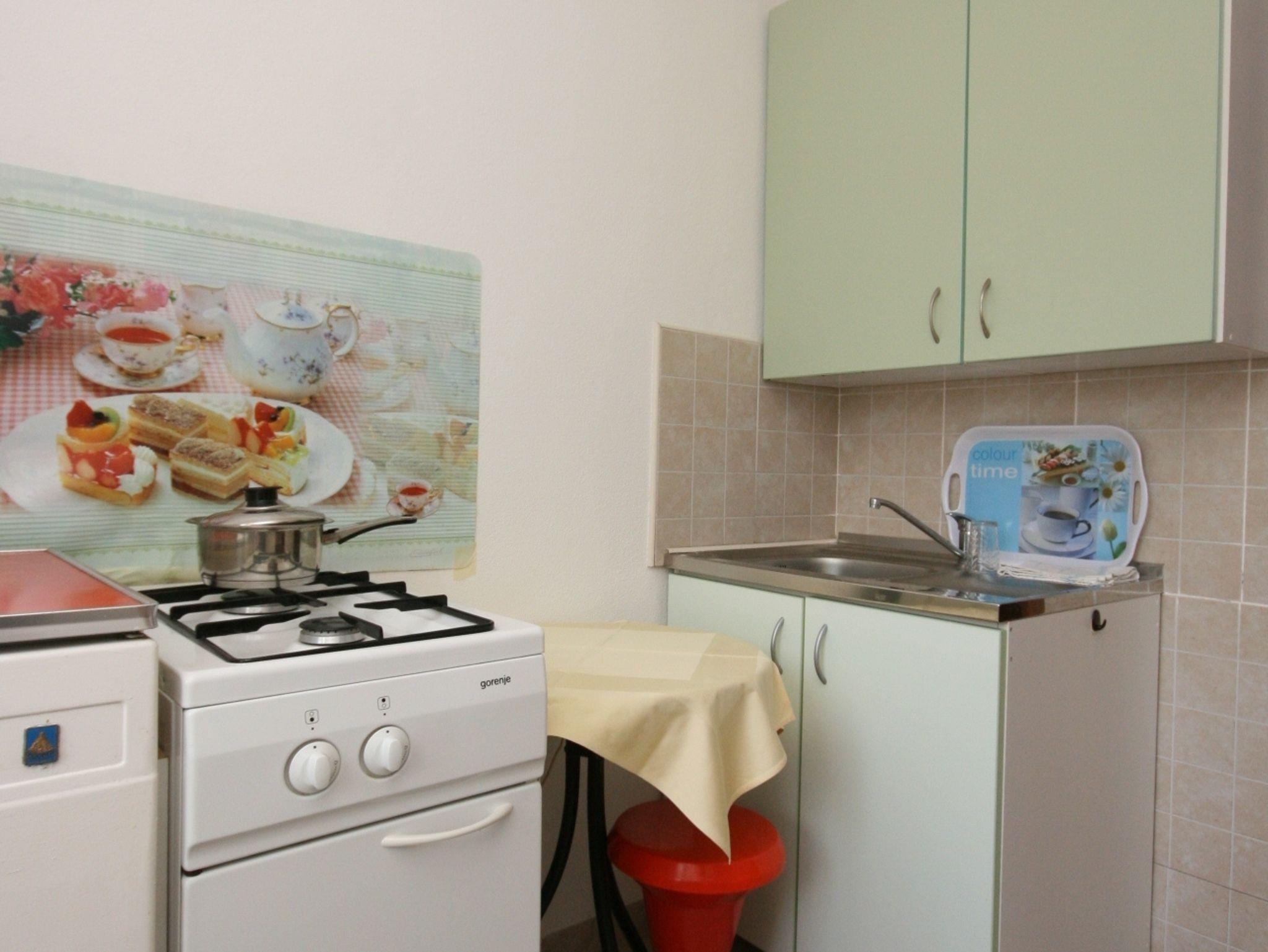 Studio bietet Platz für 3 Gäste. Die Betten sind in Schlafzimmern, die es 1 gibt, innerhalb einer Gesamtfläche von 17m2, angeordnet. Die Gäste haben eine eigene Terrasse zur Verfügung, auf der sie in warmen Sommernächten genießen können. Das Studio-Apartment bietet Meerblick. Es ist erlaubt, Speisen auf dem Gemeinschafts-Grill vorzubereiten. IM PREIS INBEGRIFFEN: Kurtaxe, Endreinigung, Parkplatz, Internet, Wäschewaschen. VERBINDLICHE ZUSÄTZLICHE KOSTEN: Aufzahlung für Kurzaufenthalte (prozentualer Zuschlag pro Nächtigungsanzahl: 30% - 1, 20% - 2, 10% - 3). Die Verfügbarkeit zusätzlicher Dienstleistungen in Ihrem reservierten Termin und die Preise derselben (falls nicht aufgeführt) müssen im Voraus überprüft werden. Zusätzliche Dienstleistungen die in der Zahlungsaufforderung nicht aufgeführt sind werden direkt beim Vermieter bezahlt, angenommen der Gast nutzt auch diese. Ermäßigung auf den Grundpreis: Gratistag 14=13 (bei einem Aufenthalt von 14 Tagen oder mehr erhalten Sie einen Gratistag für den Aufenthalt bis 31.12.26).