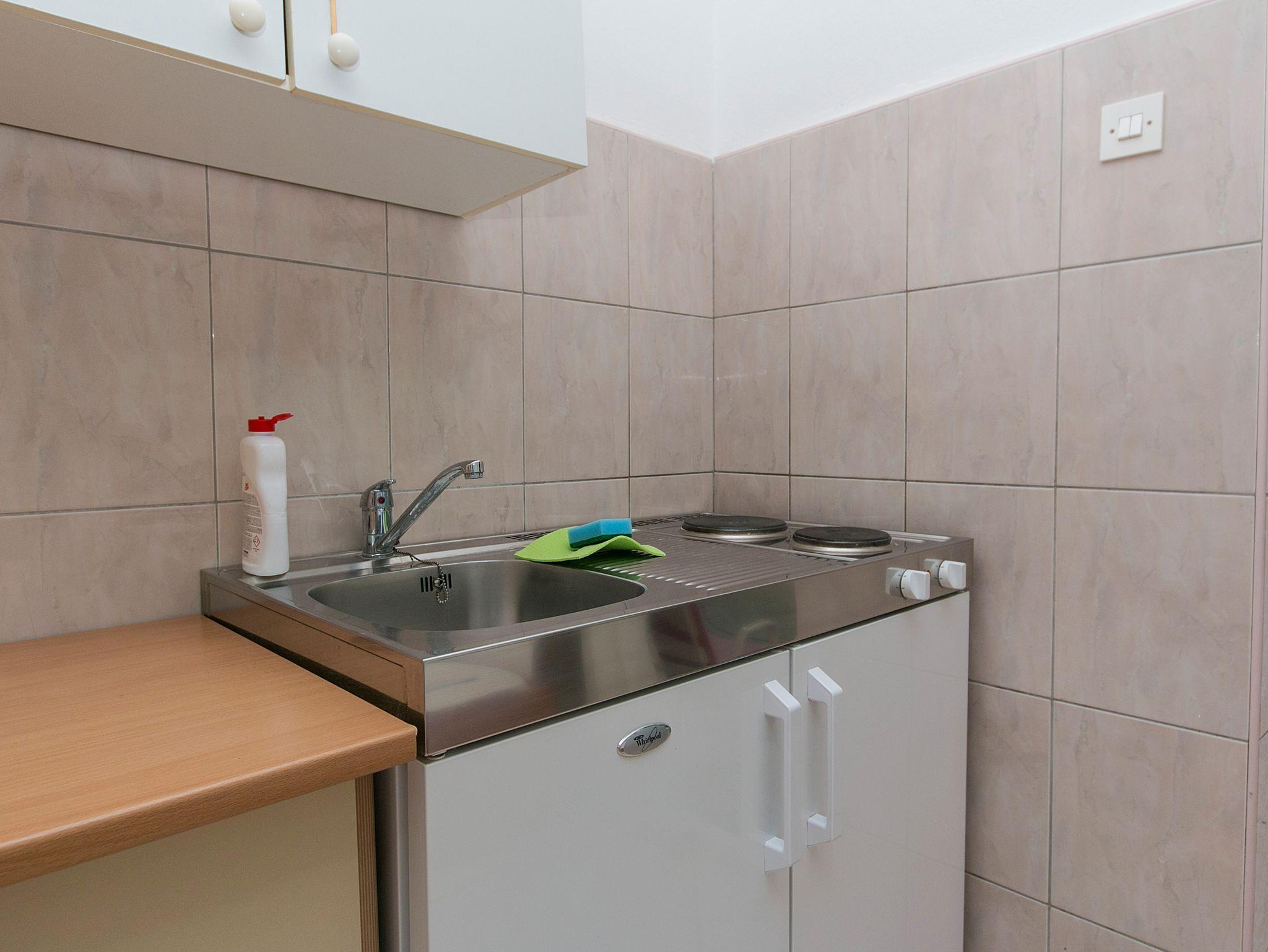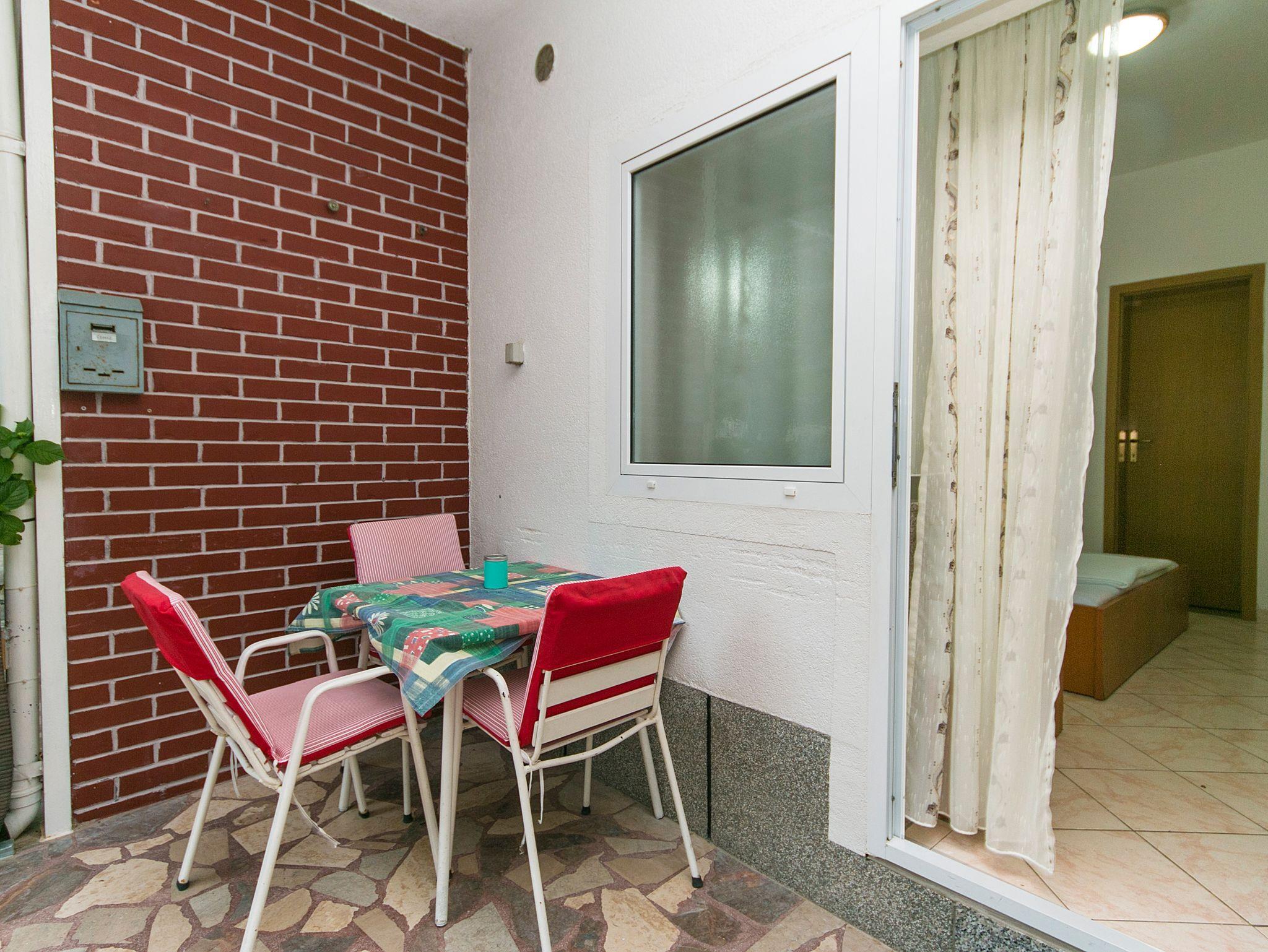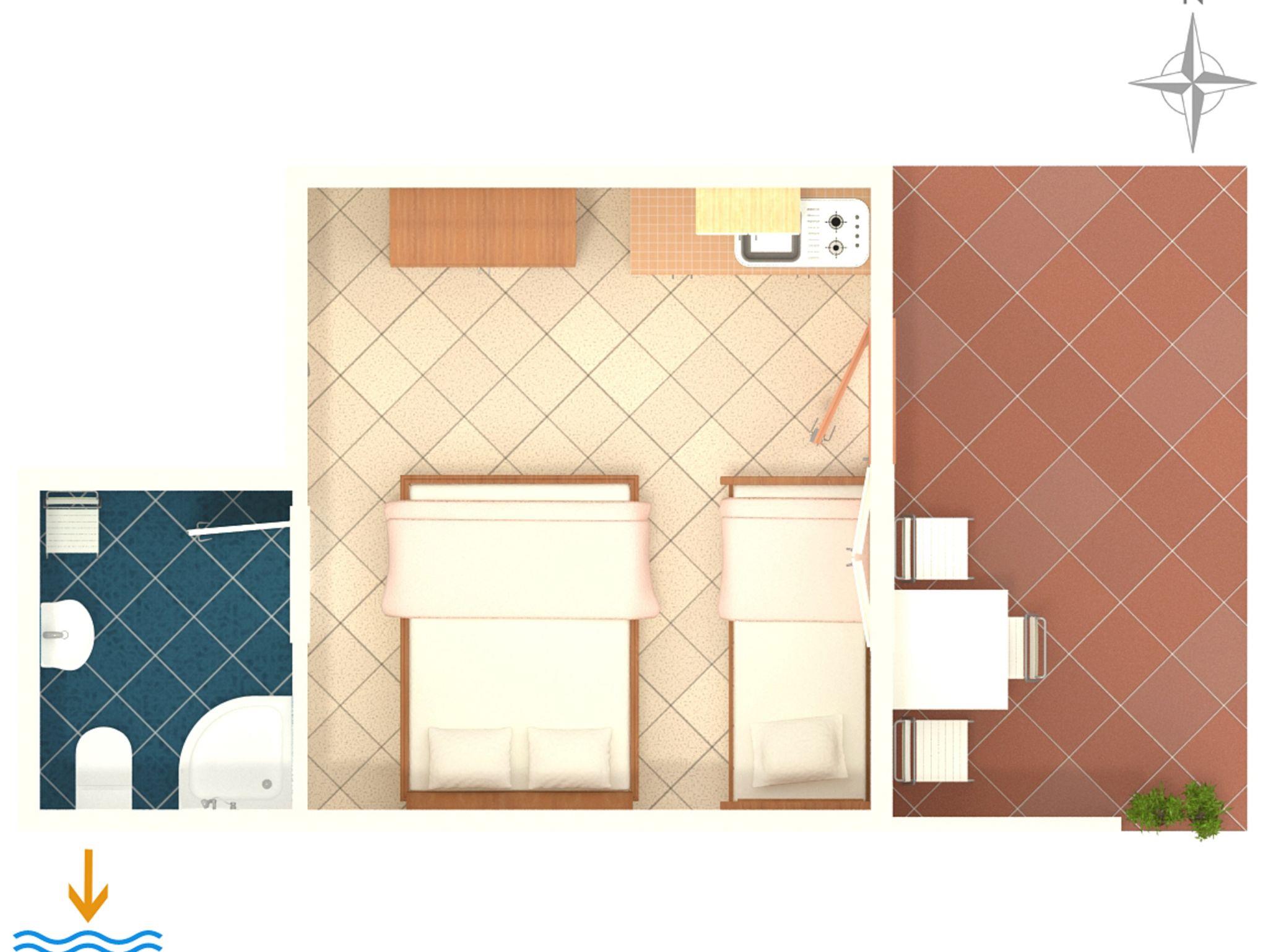 Studio bietet Platz für 3 Gäste. Die Betten sind in Schlafzimmern, die es 1 gibt, innerhalb einer Gesamtfläche von 18m2, angeordnet. Die Gäste haben eine eigene Terrasse zur Verfügung, auf der sie in warmen Sommernächten genießen können. Es ist erlaubt, Speisen auf dem Gemeinschafts-Grill vorzubereiten. IM PREIS INBEGRIFFEN: Kurtaxe, Endreinigung, Parkplatz, Internet, Bügeleisen, Bügelbrett, Föhn, tragbarer Grill. VERBINDLICHE ZUSÄTZLICHE KOSTEN: Aufzahlung für Kurzaufenthalte (prozentualer Zuschlag pro Nächtigungsanzahl: 30% - 1, 20% - 2, 10% - 3). UNVERBINDLICHE ZUSÄTZLICHE KOSTEN: Wäschewaschen (7,00 € Waschen), Zusatzbett (6,00 € pro Nacht). Die Verfügbarkeit zusätzlicher Dienstleistungen in Ihrem reservierten Termin und die Preise derselben (falls nicht aufgeführt) müssen im Voraus überprüft werden. Zusätzliche Dienstleistungen die in der Zahlungsaufforderung nicht aufgeführt sind werden direkt beim Vermieter bezahlt, angenommen der Gast nutzt auch diese. Ermäßigung auf den Grundpreis: Gratistag 28=25 (bei einem Aufenthalt von 28 oder mehr Tagen erhalten Sie 3 kostenlose Tage für den Aufenthalt bis 31.12.26).