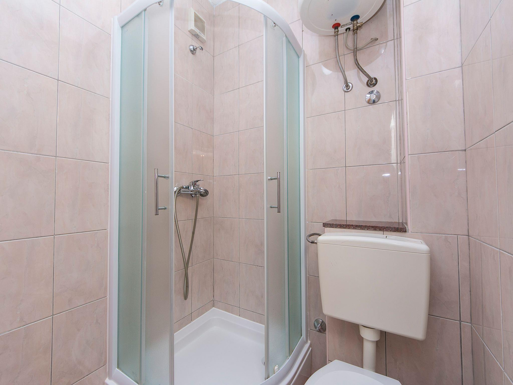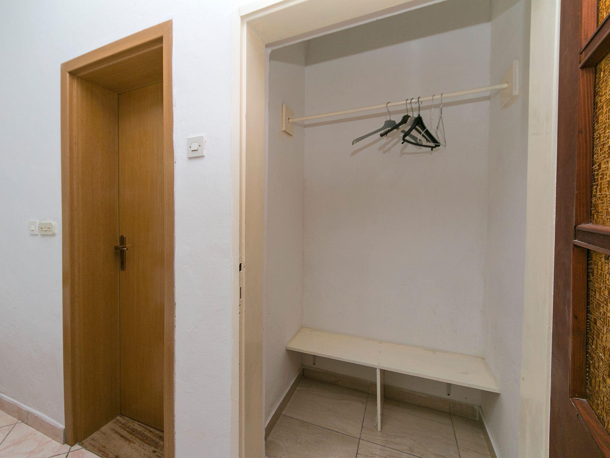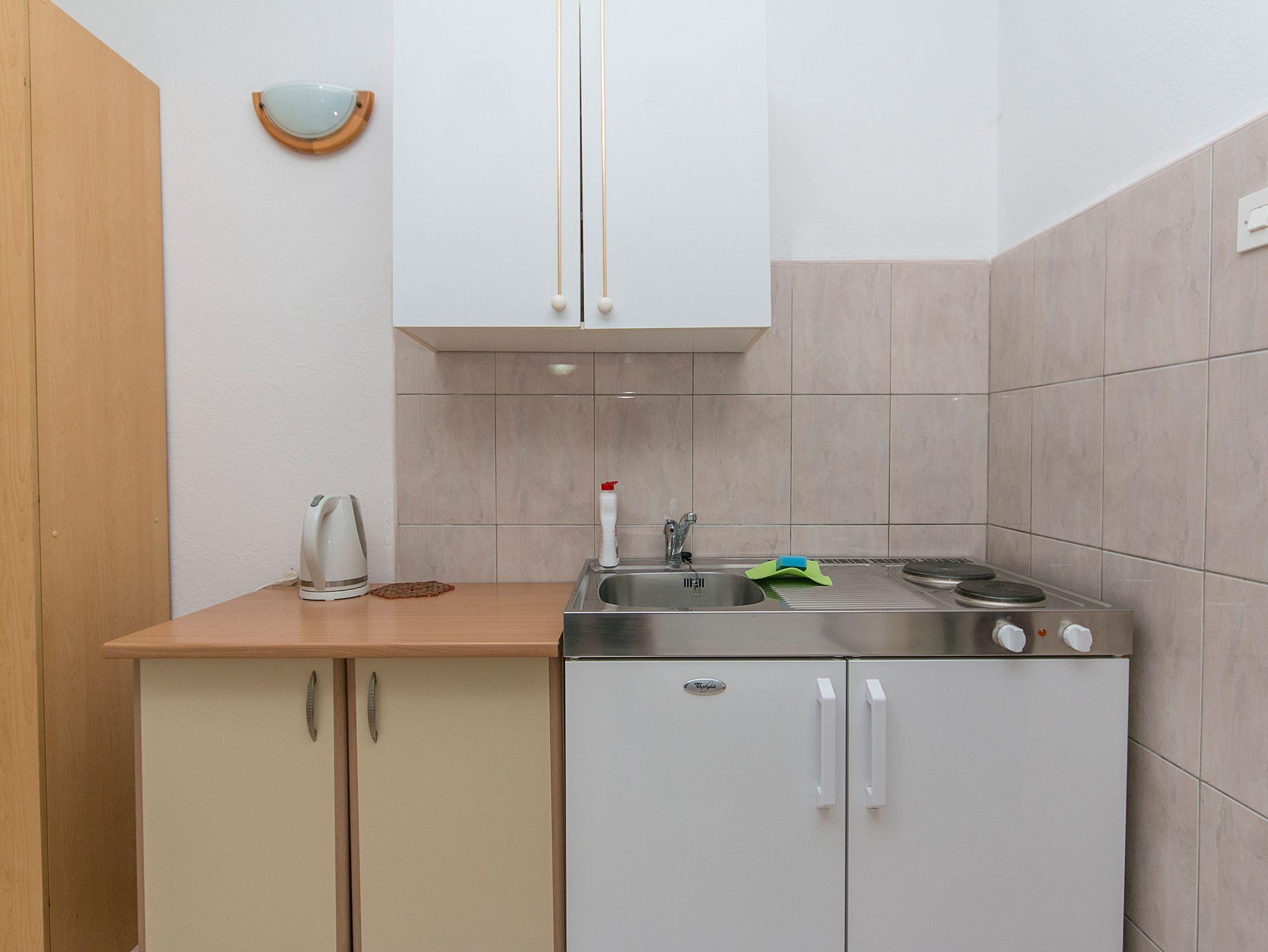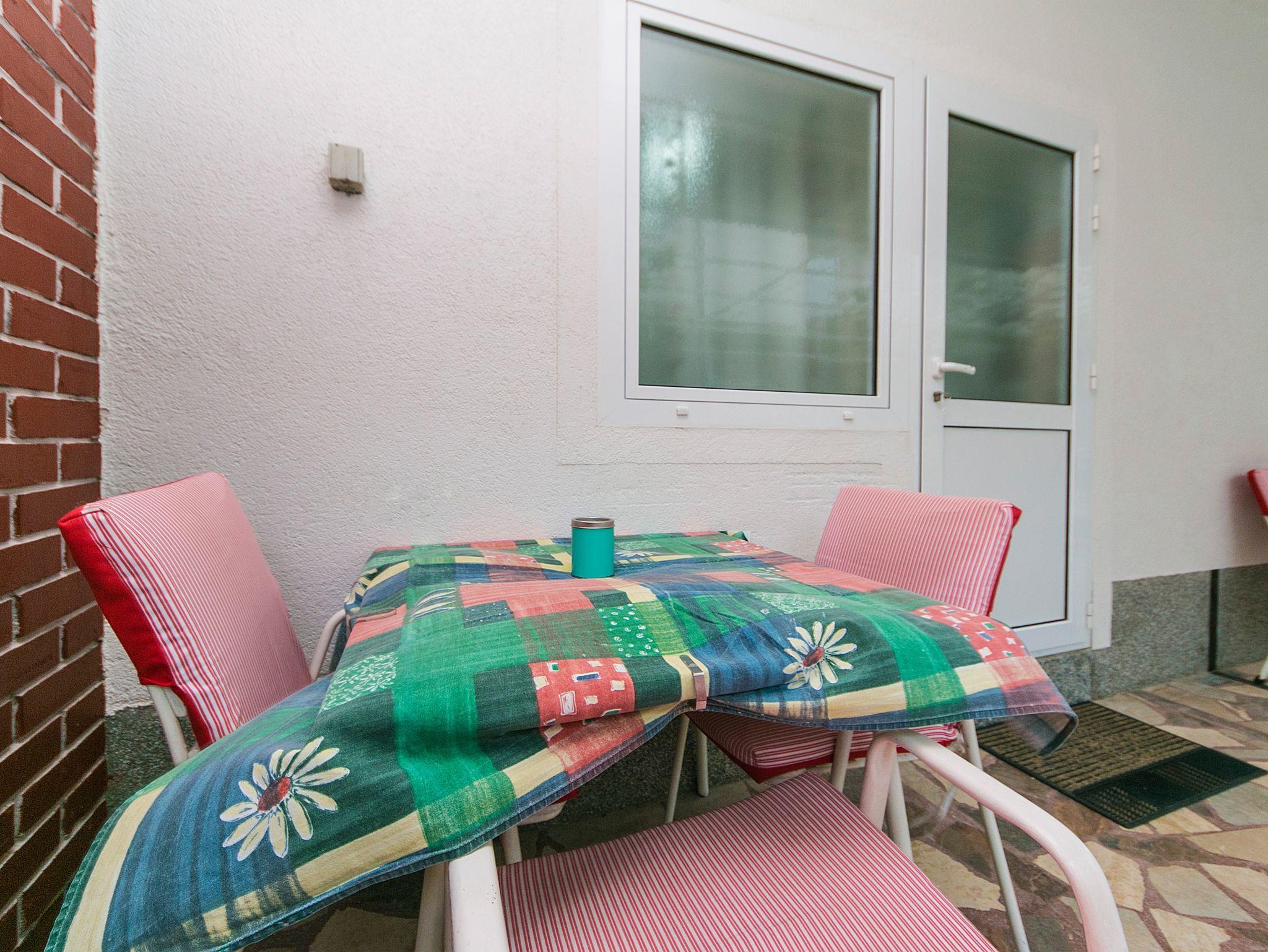Studio bietet Platz für 3 Gäste. Die Betten sind in Schlafzimmern, die es 1 gibt, innerhalb einer Gesamtfläche von 18m2, angeordnet. Die Gäste haben eine eigene Terrasse zur Verfügung, auf der sie in warmen Sommernächten genießen können. Es ist erlaubt, Speisen auf dem Gemeinschafts-Grill vorzubereiten. IM PREIS INBEGRIFFEN: Kurtaxe, Endreinigung, Parkplatz, Internet, Bügeleisen, Bügelbrett, Föhn, tragbarer Grill. VERBINDLICHE ZUSÄTZLICHE KOSTEN: Aufzahlung für Kurzaufenthalte (prozentualer Zuschlag pro Nächtigungsanzahl: 30% - 1, 20% - 2, 10% - 3). UNVERBINDLICHE ZUSÄTZLICHE KOSTEN: Wäschewaschen (7,00 € Waschen), Zusatzbett (6,00 € pro Nacht). Die Verfügbarkeit zusätzlicher Dienstleistungen in Ihrem reservierten Termin und die Preise derselben (falls nicht aufgeführt) müssen im Voraus überprüft werden. Zusätzliche Dienstleistungen die in der Zahlungsaufforderung nicht aufgeführt sind werden direkt beim Vermieter bezahlt, angenommen der Gast nutzt auch diese. Ermäßigung auf den Grundpreis: Gratistag 28=25 (bei einem Aufenthalt von 28 oder mehr Tagen erhalten Sie 3 kostenlose Tage für den Aufenthalt bis 31.12.26).