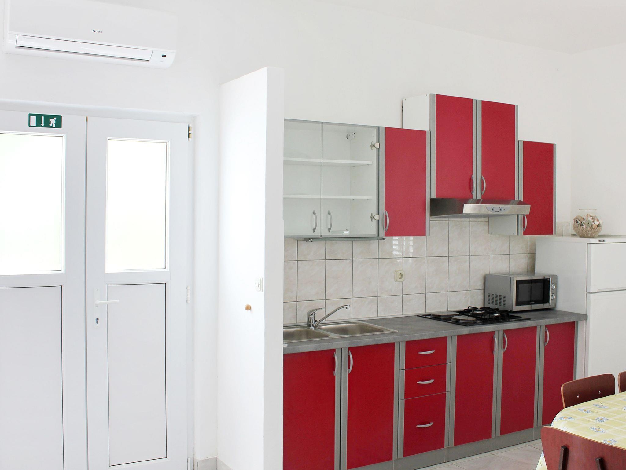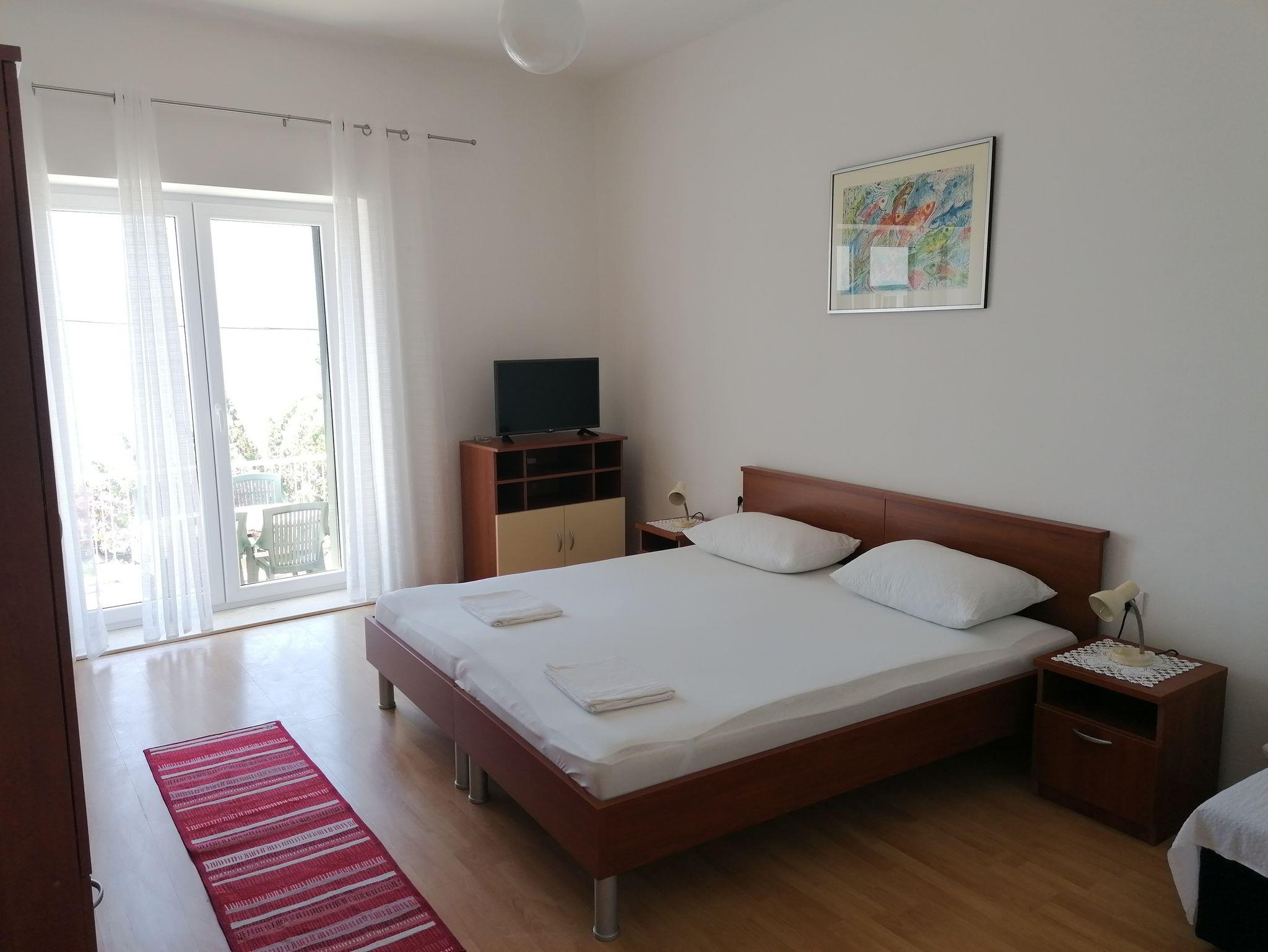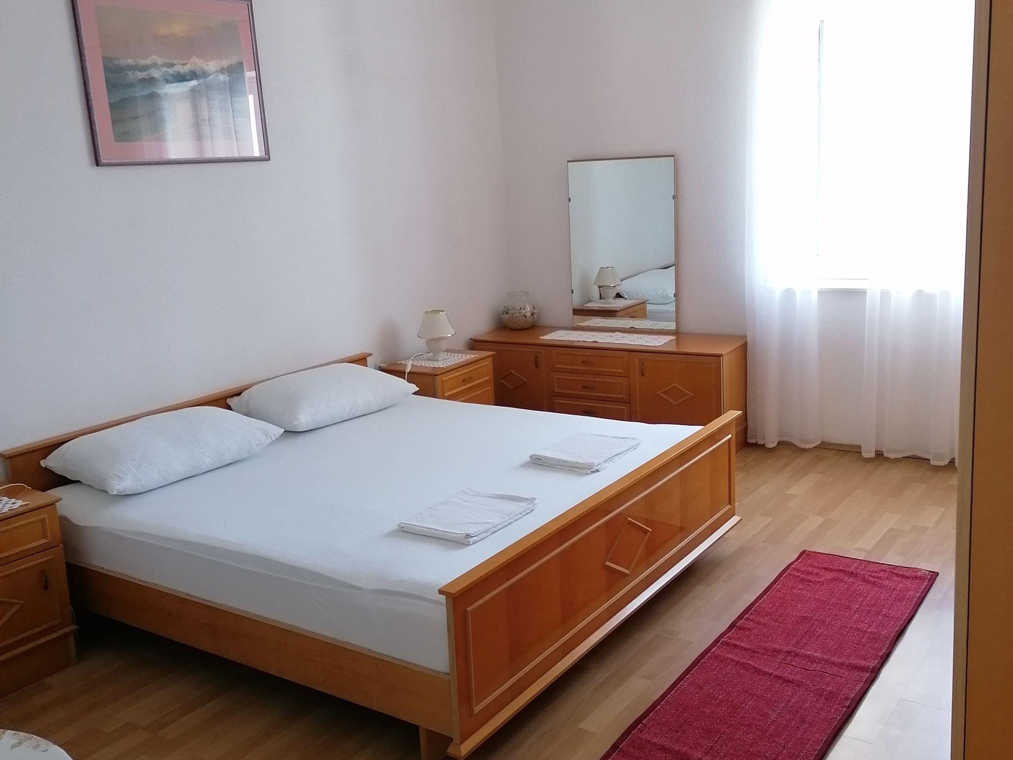 Ferienwohnung bietet Platz für 4 Gäste. Die Betten sind in Schlafzimmern, die es 2 gibt, innerhalb einer Gesamtfläche von 63m2, angeordnet. Die Gäste haben eine eigene Terrasse zur Verfügung, auf der sie in warmen Sommernächten genießen können. Das Apartment bietet Meerblick. Es ist erlaubt, Speisen auf dem Gemeinschafts-Grill vorzubereiten. IM PREIS INBEGRIFFEN: Kurtaxe, Endreinigung, Klimatisierung, Parkplatz, Internet. VERBINDLICHE ZUSÄTZLICHE KOSTEN: Aufzahlung für Kurzaufenthalte (prozentualer Zuschlag pro Nächtigungsanzahl: 30% - 1, 20% - 2, 10% - 3). Die Verfügbarkeit zusätzlicher Dienstleistungen in Ihrem reservierten Termin und die Preise derselben (falls nicht aufgeführt) müssen im Voraus überprüft werden. Zusätzliche Dienstleistungen die in der Zahlungsaufforderung nicht aufgeführt sind werden direkt beim Vermieter bezahlt, angenommen der Gast nutzt auch diese. Ermäßigung auf den Grundpreis: Gratistag 14=13 (bei einem Aufenthalt von 14 Tagen oder mehr erhalten Sie einen Gratistag für den Aufenthalt bis 31.12.26).