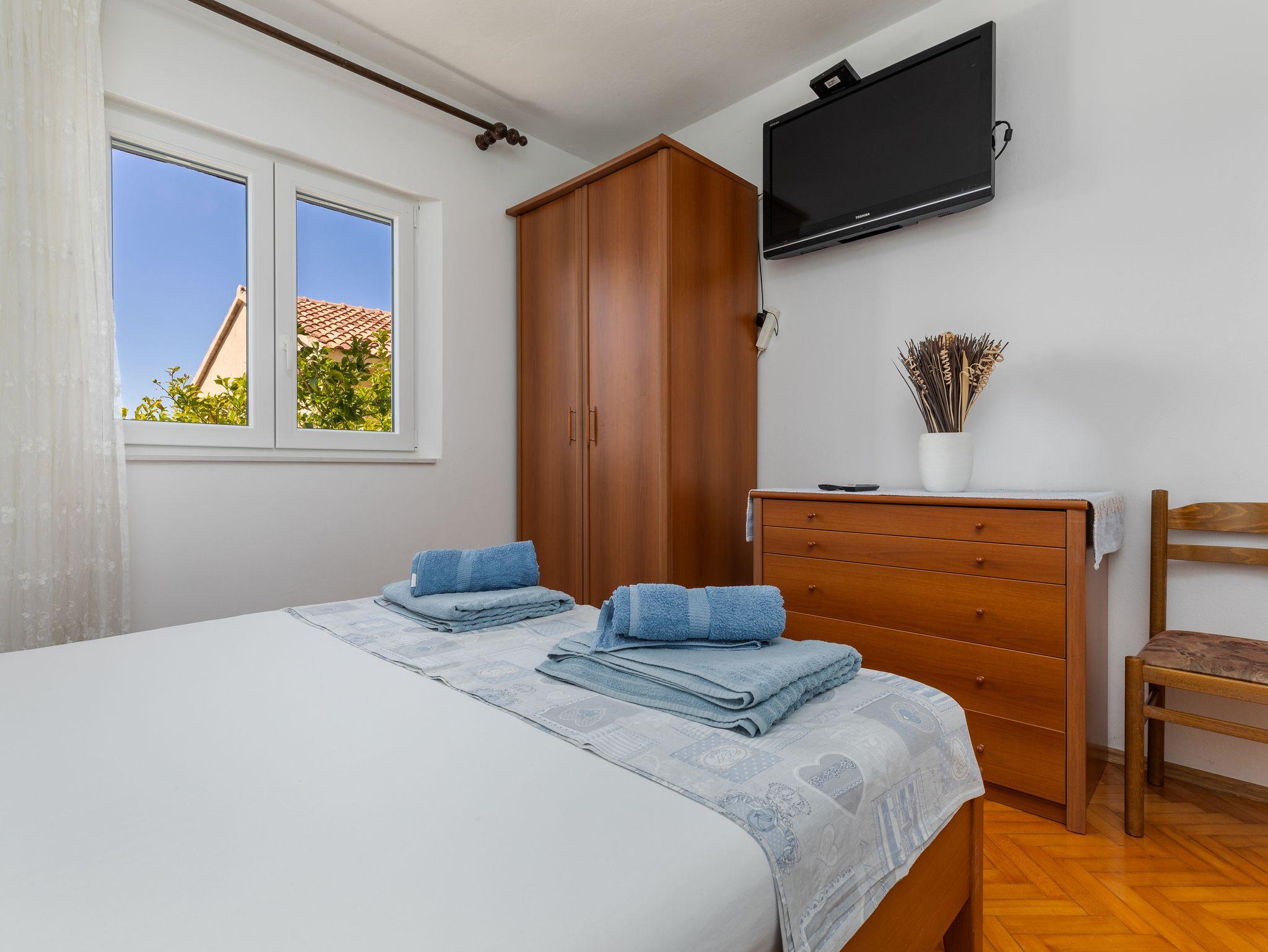 Ferienwohnung bietet Platz für 4 Gäste. Die Betten sind in Schlafzimmern, die es 2 gibt, innerhalb einer Gesamtfläche von 43m2, angeordnet. Die Gäste haben eine eigene Terrasse zur Verfügung, auf der sie in warmen Sommernächten genießen können. Das Apartment bietet Meerblick. Es ist erlaubt, Speisen auf dem Gemeinschafts-Grill vorzubereiten. IM PREIS INBEGRIFFEN: Kurtaxe, Endreinigung, Klimatisierung, Parkplatz, Internet, Föhn, tragbarer Grill. Die Verfügbarkeit zusätzlicher Dienstleistungen in Ihrem reservierten Termin und die Preise derselben (falls nicht aufgeführt) müssen im Voraus überprüft werden. Zusätzliche Dienstleistungen die in der Zahlungsaufforderung nicht aufgeführt sind werden direkt beim Vermieter bezahlt, angenommen der Gast nutzt auch diese.