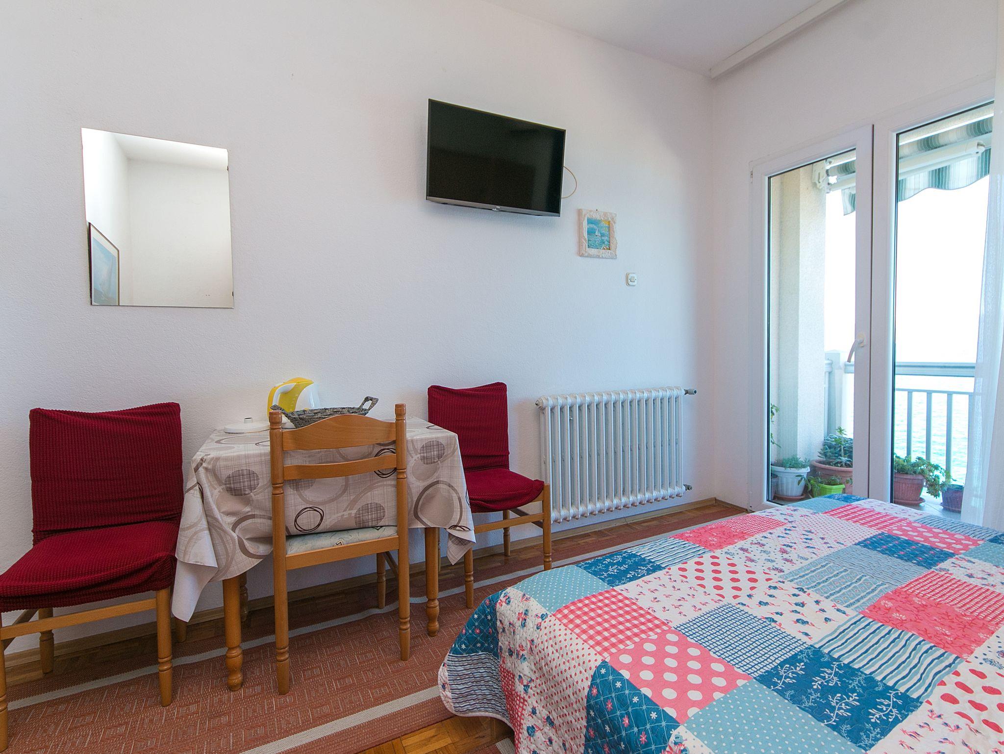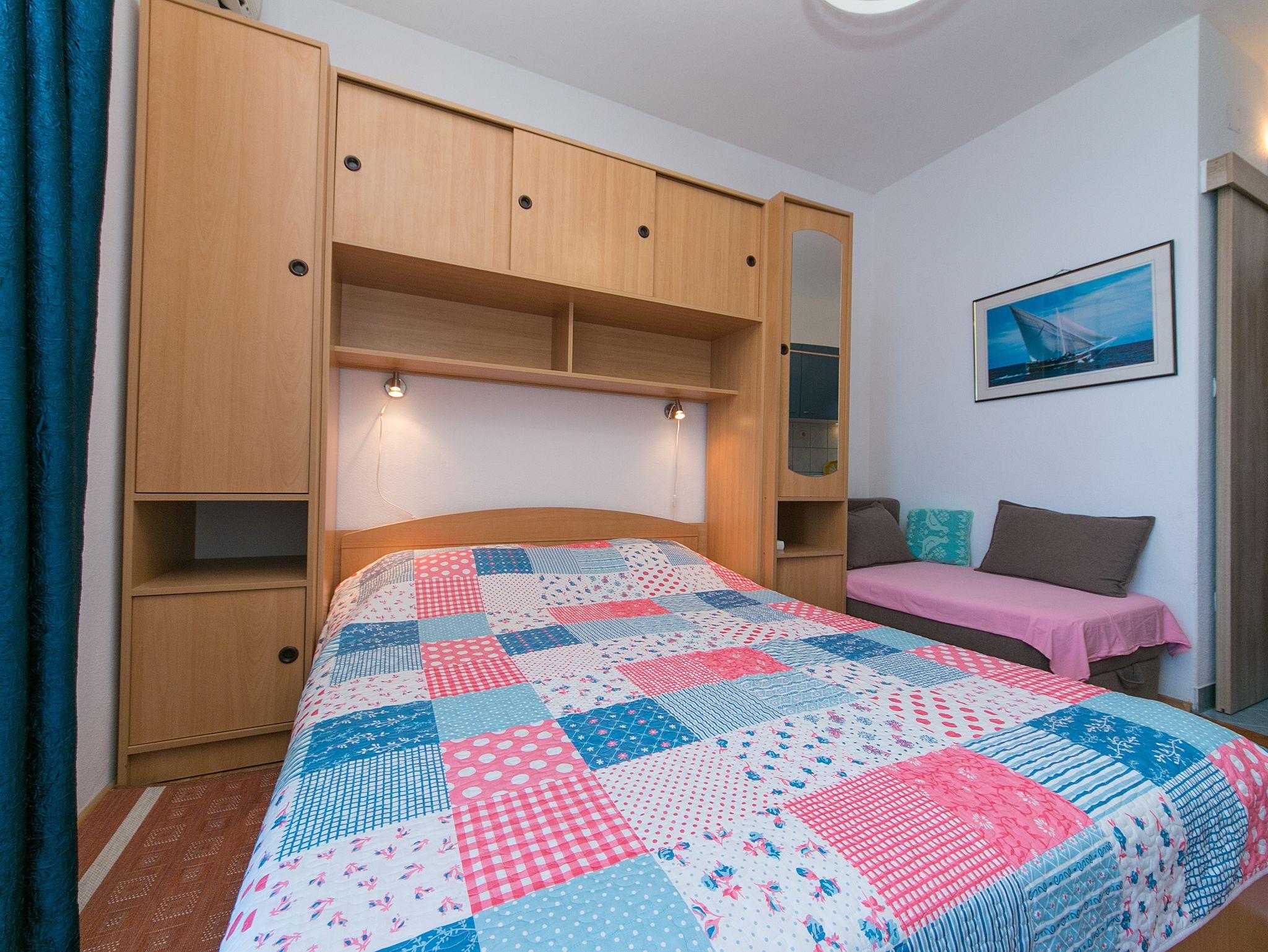 Studio bietet Platz für 3 Gäste. Die Betten sind in Schlafzimmern, die es 1 gibt, innerhalb einer Gesamtfläche von 21m2, angeordnet. Die Gäste haben einen eigenen Balkon zur Verfügung, auf der sie in warmen Sommernächten genießen können. Das Studio-Apartment bietet Meerblick. IM PREIS INBEGRIFFEN: Kurtaxe, Endreinigung, Parkplatz, Internet, Bootsanlegeplatz, Bügeleisen, Bügelbrett, Föhn. VERBINDLICHE ZUSÄTZLICHE KOSTEN: Aufzahlung für Kurzaufenthalte (prozentualer Zuschlag pro Nächtigungsanzahl: 30% - 1, 20% - 2, 10% - 3). UNVERBINDLICHE ZUSÄTZLICHE KOSTEN: Klimatisierung (5,00 € pro Nacht). Die Verfügbarkeit zusätzlicher Dienstleistungen in Ihrem reservierten Termin und die Preise derselben (falls nicht aufgeführt) müssen im Voraus überprüft werden. Zusätzliche Dienstleistungen die in der Zahlungsaufforderung nicht aufgeführt sind werden direkt beim Vermieter bezahlt, angenommen der Gast nutzt auch diese.