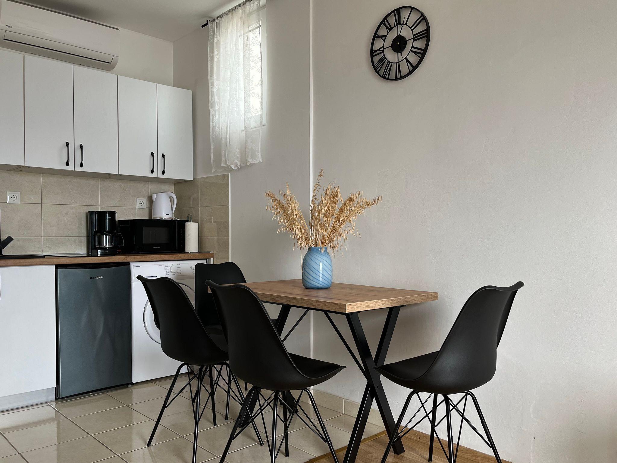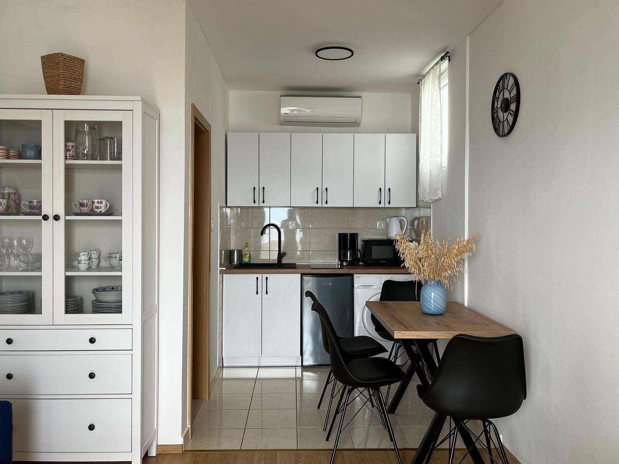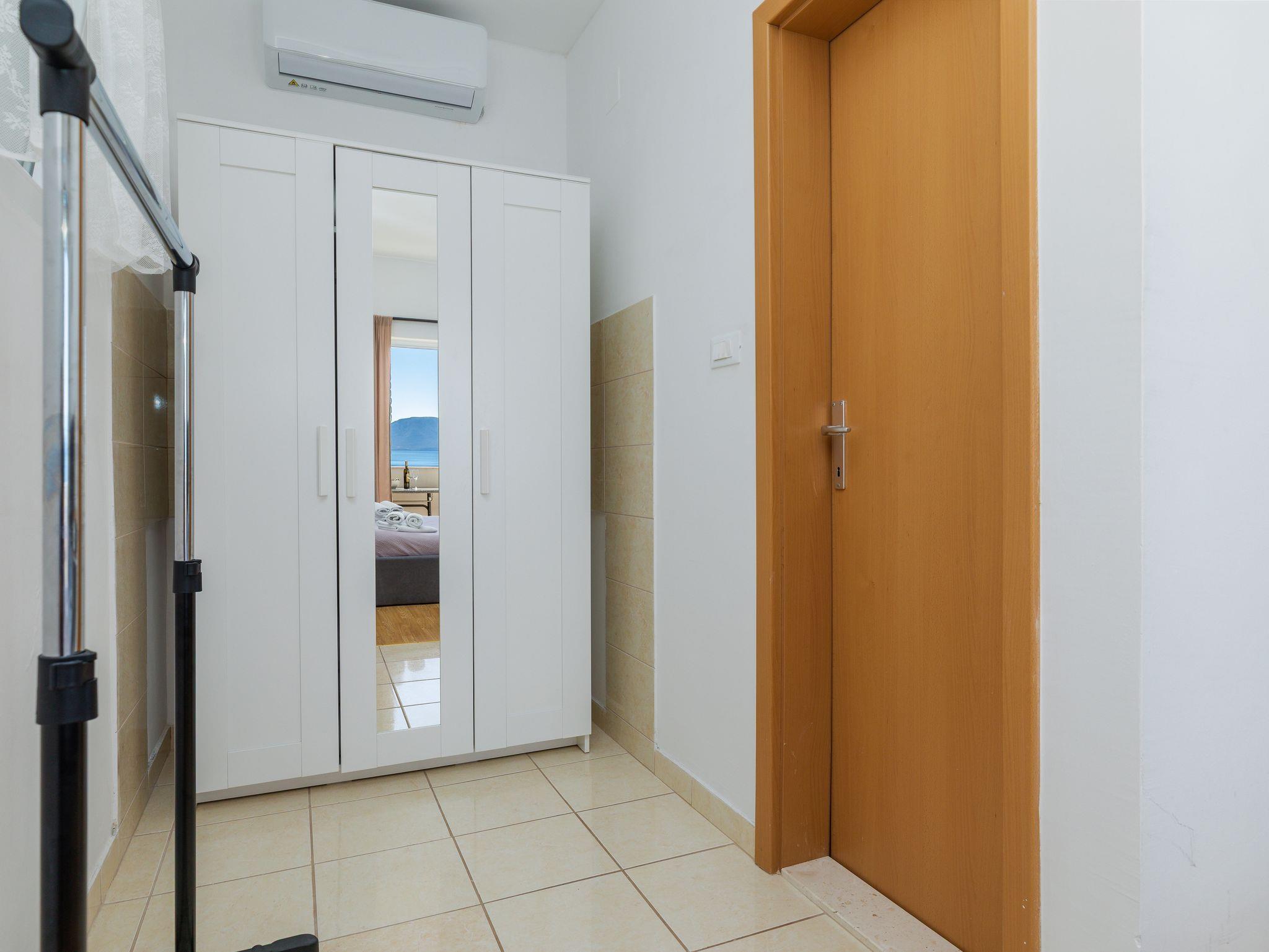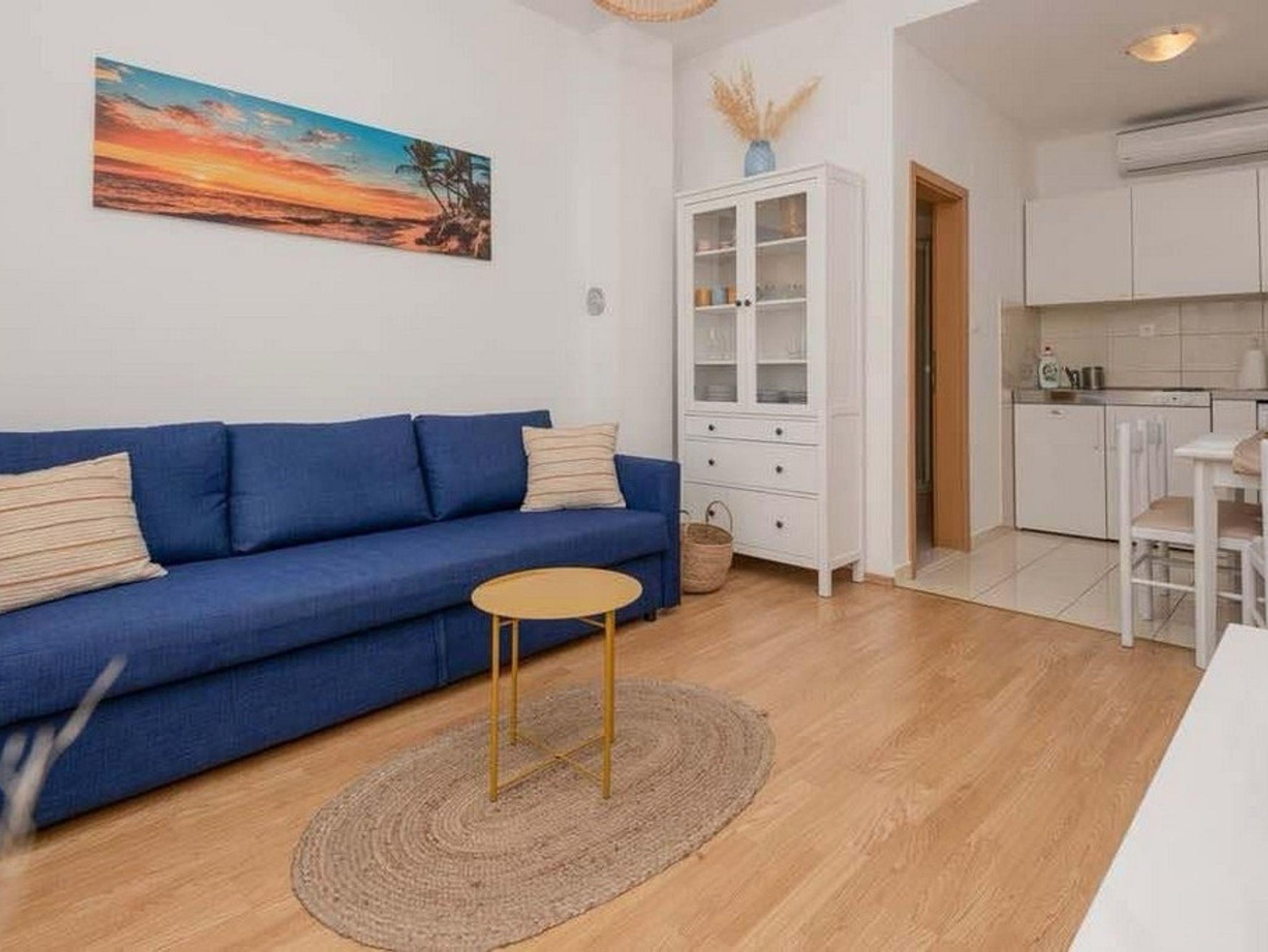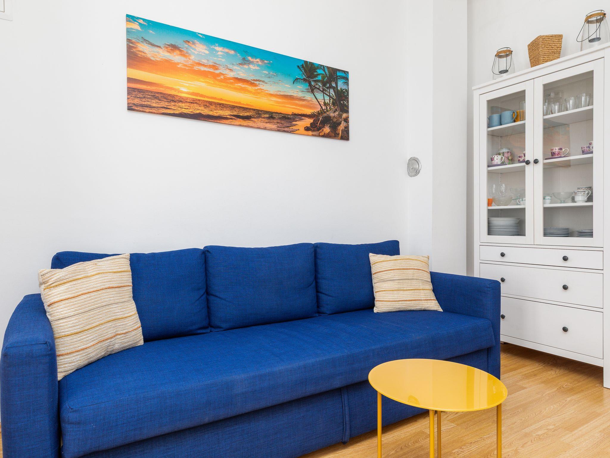Ferienwohnung bietet Platz für 4 Gäste. Die Betten sind in Schlafzimmern, die es 1 gibt, und in Wohnzimmer, innerhalb einer Gesamtfläche von 42m2, angeordnet. Die Gäste haben eine eigene Terrasse zur Verfügung, auf der sie in warmen Sommernächten genießen können. Das Apartment bietet Meerblick. Räume der gebuchten Unterkunftseinheit werden nicht in eine Ganze verbunden. Unterkunftseinheit hat Räume, die von dem Rest der Einheit abgetrennt werden. IM PREIS INBEGRIFFEN: Kurtaxe, Endreinigung, Klimatisierung, Parkplatz, Internet, Kinderbett, Bügeleisen, Föhn. Die Verfügbarkeit zusätzlicher Dienstleistungen in Ihrem reservierten Termin und die Preise derselben (falls nicht aufgeführt) müssen im Voraus überprüft werden. Zusätzliche Dienstleistungen die in der Zahlungsaufforderung nicht aufgeführt sind werden direkt beim Vermieter bezahlt, angenommen der Gast nutzt auch diese.