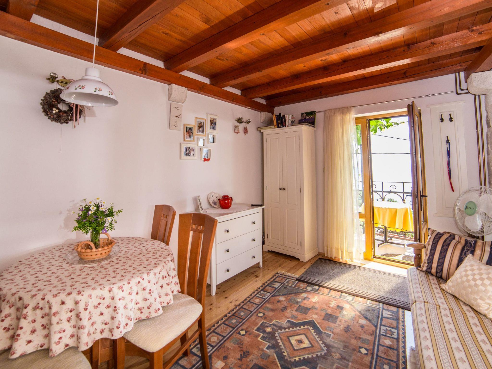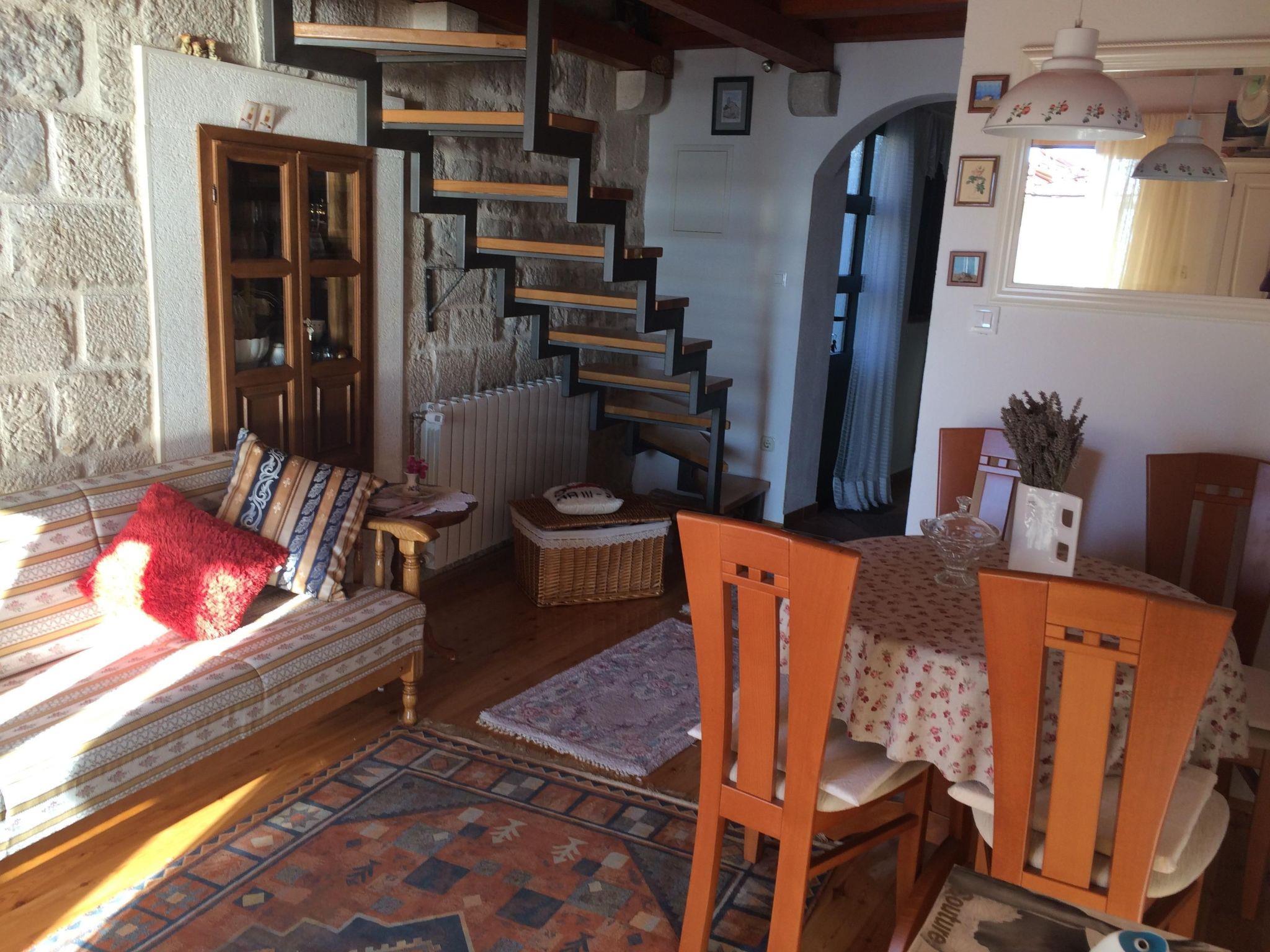 House features sleeps 1 bedroom,one bathroom, fullyequiped kitchen,BBQ-wood avilable,TV,patio and terrace. The room and living room are spacious,stone walledequiped with high quality wood furniture for your comfort. This property can acomodate 3 people (2+1).