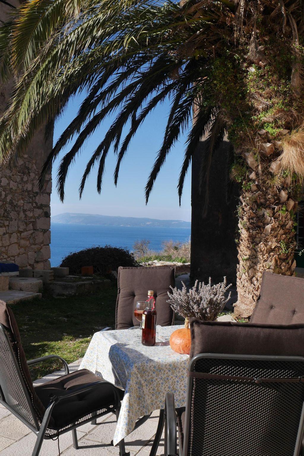 Terrace with garden furniture and sunshade ,barbeque,beautifulview on the sea islands and mountain Biokovo1763m