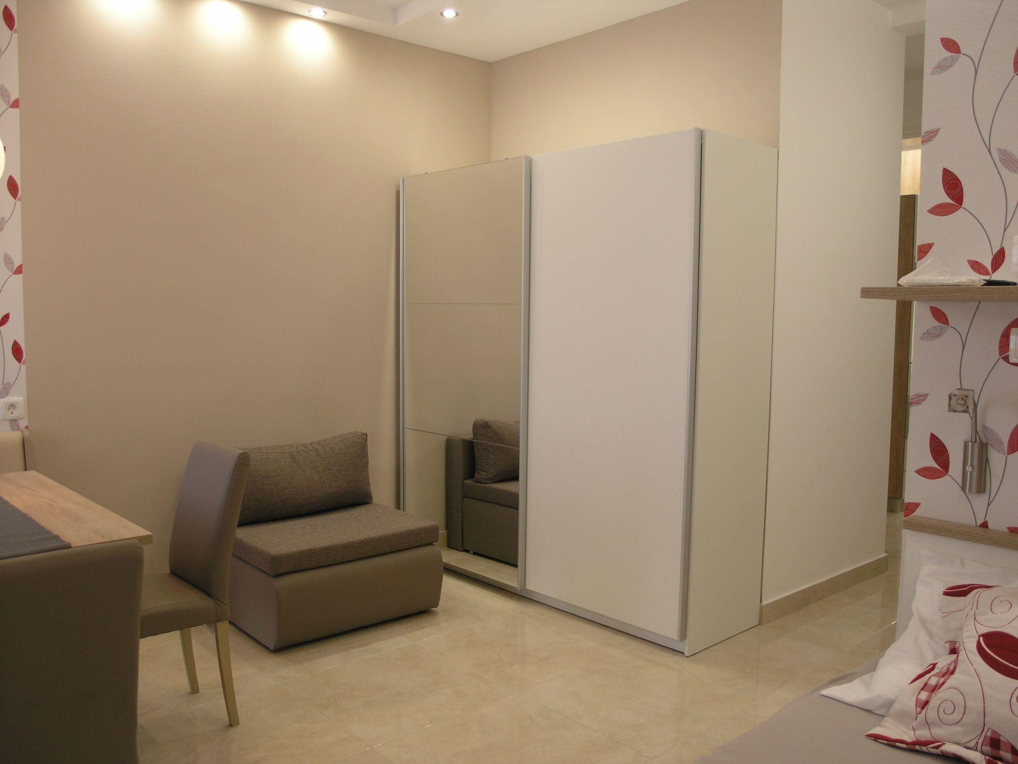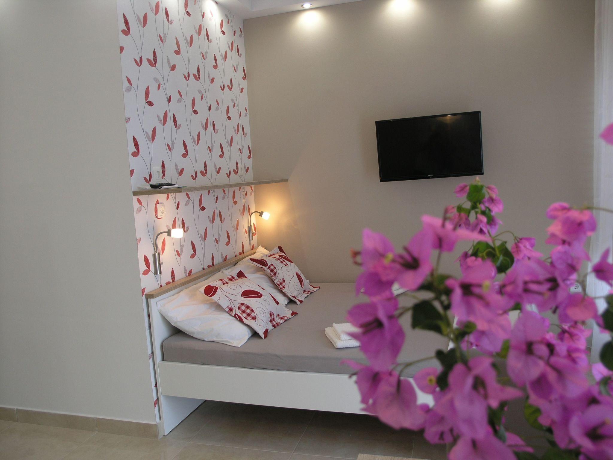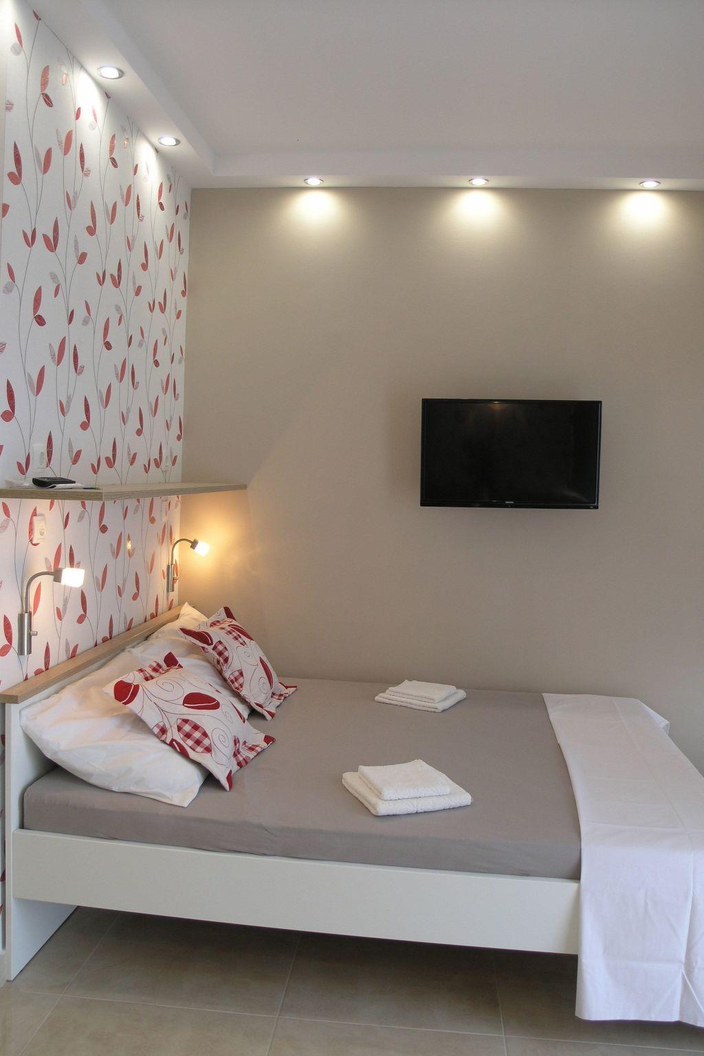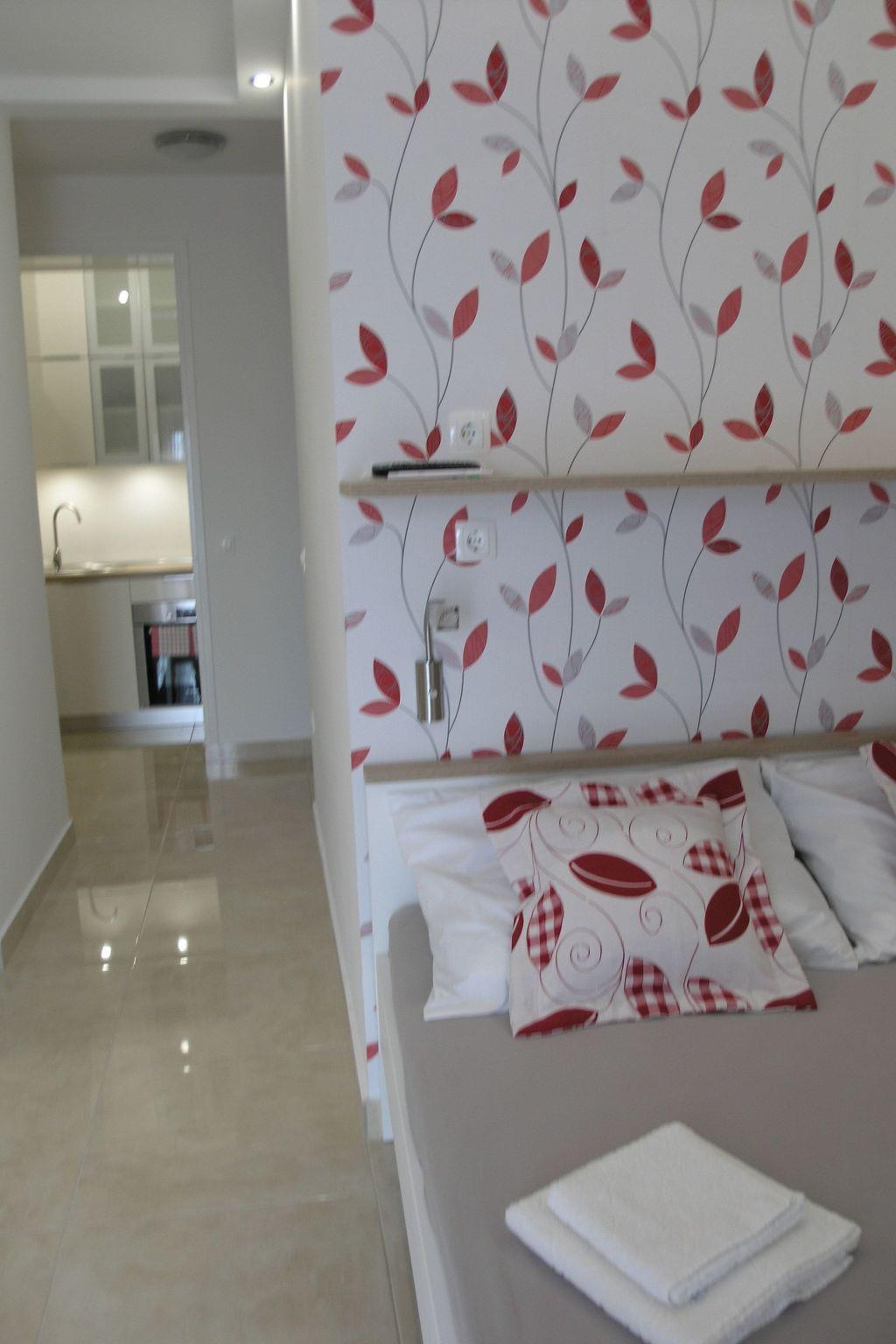 Brand new renovated studio apartment for 2+1. New white kitchen has a big fridge with three deep freeze drawers, oven, induction cooker with 4 rings and a lot of space for passionate cooks. You have toaster, coffe and tea pot and all kitchen accessories for cooking. You have air-condition, flat TV with satelite programs as wel as local programs. In the bathroom you have a hair dryer. From the balcony is a beautiful view to sea, mountain Biokovo and Podgora.