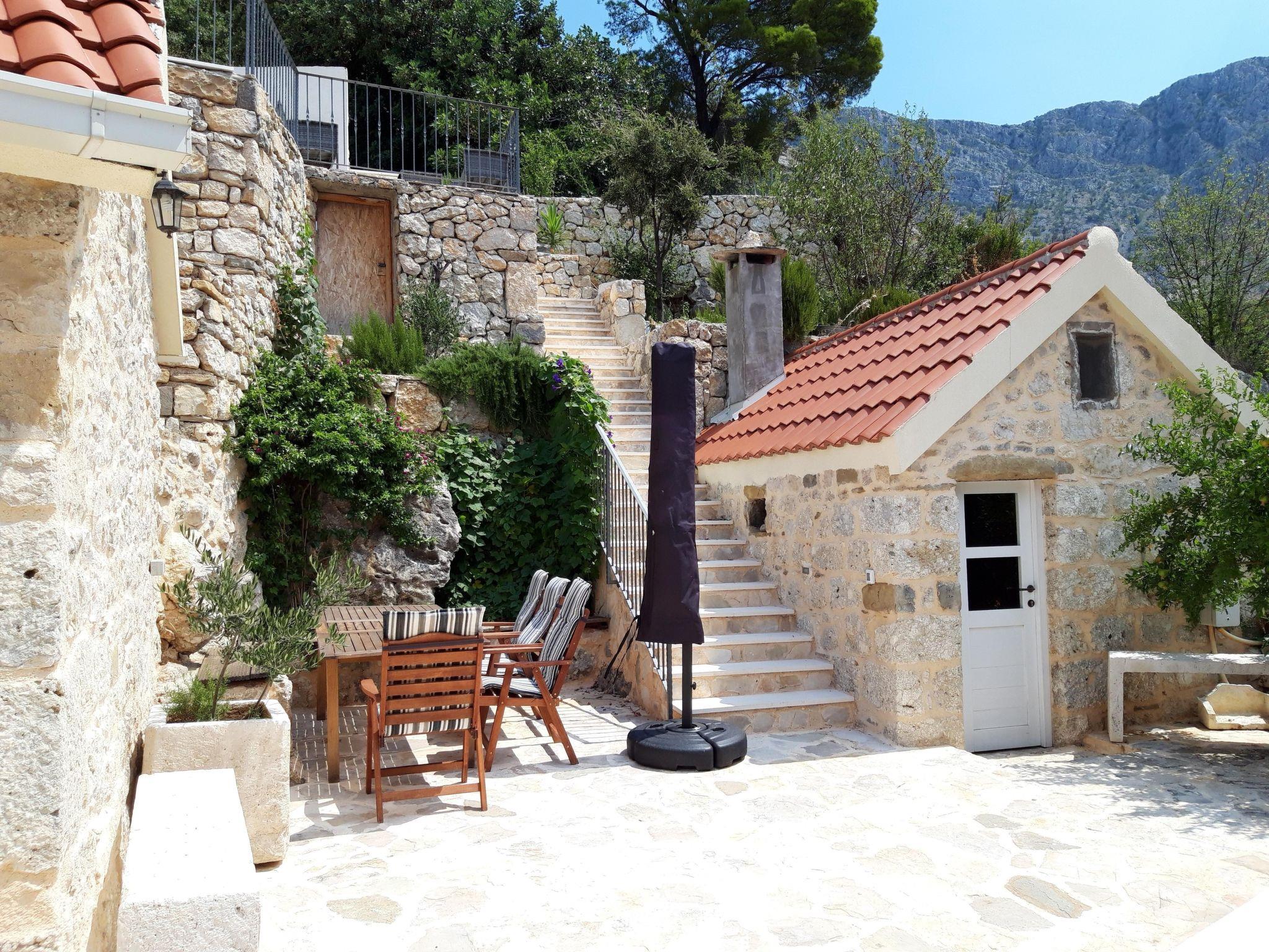 Villa is a beautiful Dalmatian stone house that enjoys a romantic location nestled in the hilly landscape around the coastal town of Podogora, along the sunny Makarska Riviera This Dalmatian stone house is located in the idyllic village of Gornja Podgora, on the slopes of the Biokovo mountain, with breathtaking views of the bay of Podgora and the offshore islands. Here you can enjoy a relaxing holiday with absolute privacy in the midst of lush nature and at the same time close to the blue Adriatic Sea.