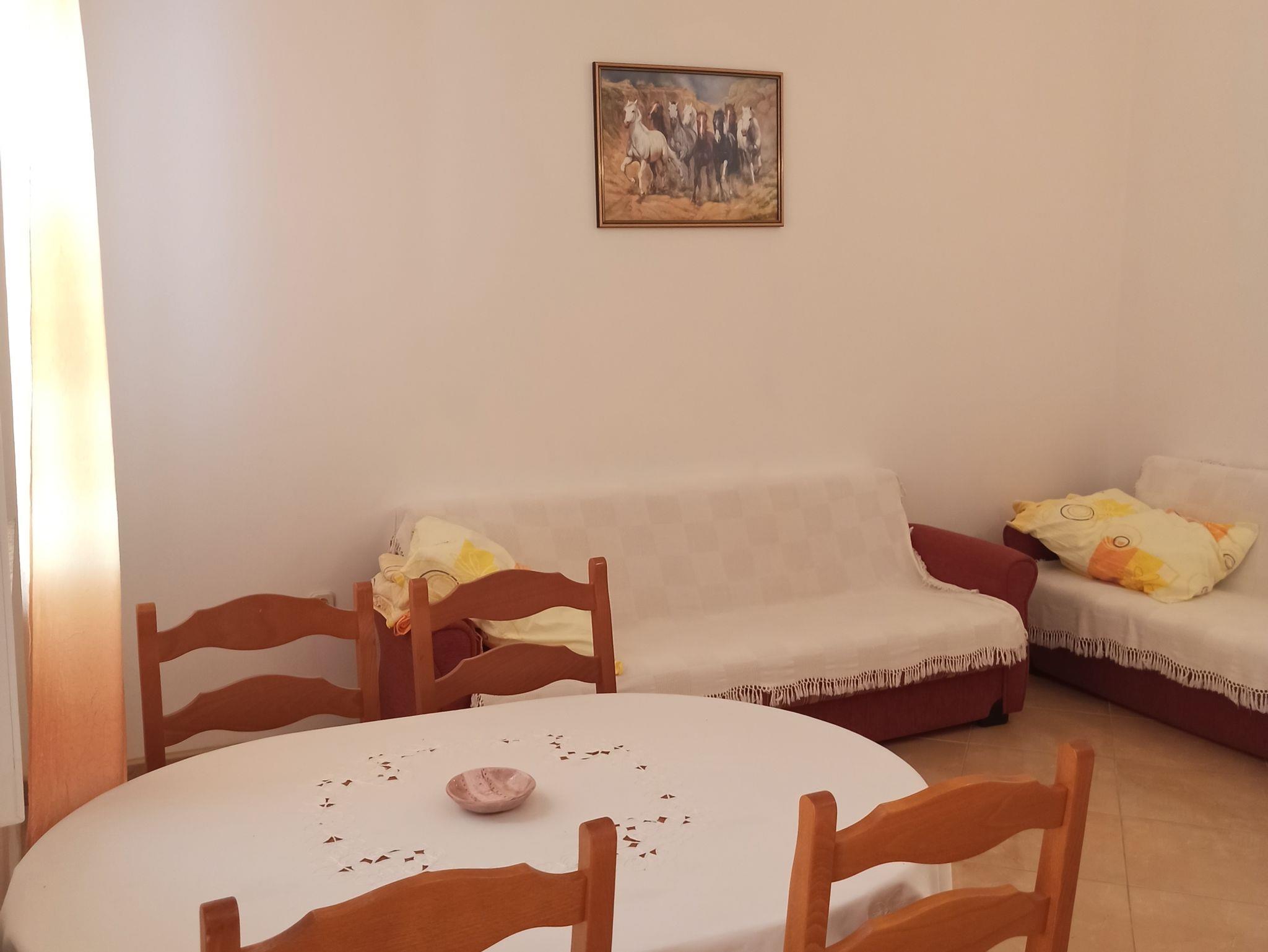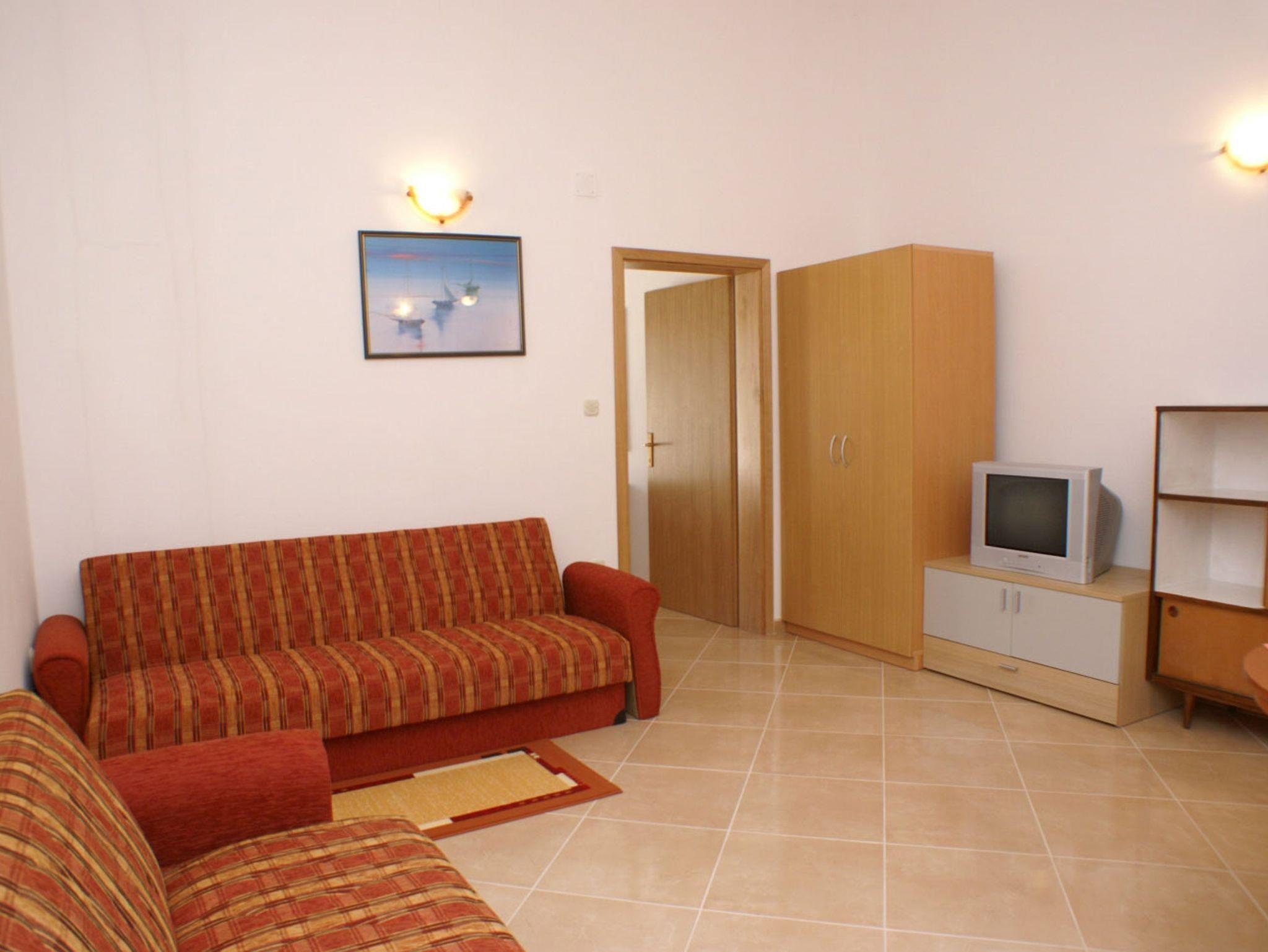 Ferienwohnung bietet Platz für 4 Gäste. Die Betten sind in Schlafzimmern, die es 1 gibt, und in Wohnzimmer, innerhalb einer Gesamtfläche von 42m2, angeordnet. Die Gäste haben eine eigene Terrasse zur Verfügung, auf der sie in warmen Sommernächten genießen können. Das Apartment bietet Meerblick. Es ist erlaubt, Speisen auf dem Gemeinschafts-Grill vorzubereiten. IM PREIS INBEGRIFFEN: Kurtaxe, Endreinigung, Klimatisierung, Parkplatz, Internet, Bügeleisen, Bügelbrett, Föhn, tragbarer Grill. Die Verfügbarkeit zusätzlicher Dienstleistungen in Ihrem reservierten Termin und die Preise derselben (falls nicht aufgeführt) müssen im Voraus überprüft werden. Zusätzliche Dienstleistungen die in der Zahlungsaufforderung nicht aufgeführt sind werden direkt beim Vermieter bezahlt, angenommen der Gast nutzt auch diese.