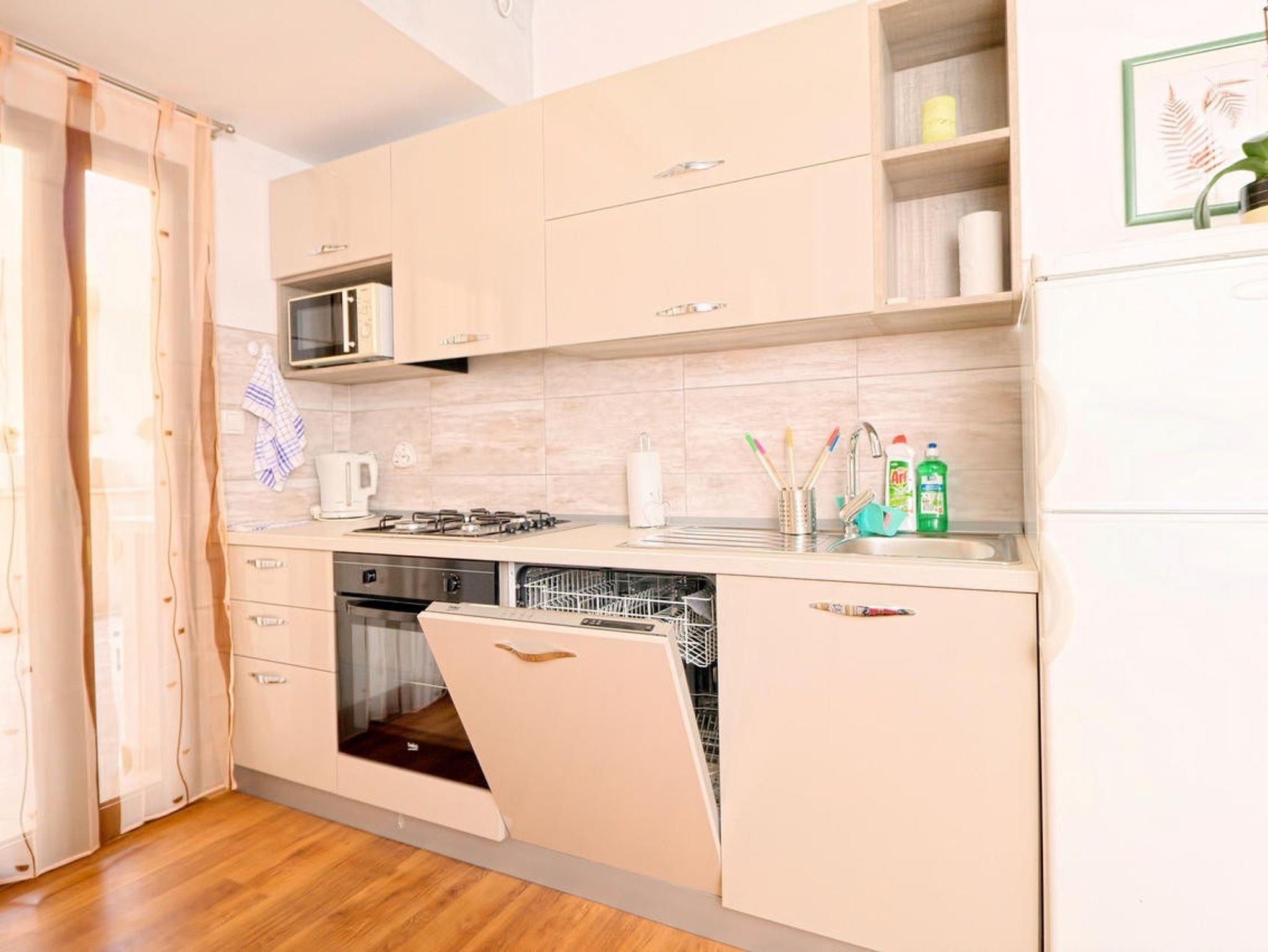 Ferienwohnung bietet Platz für 7 Gäste. Die Betten sind in Schlafzimmern, die es 2 gibt, und in Wohnzimmer, innerhalb einer Gesamtfläche von 55m2, angeordnet. Die Gäste haben eine eigene Terrasse zur Verfügung, auf der sie in warmen Sommernächten genießen können. Das Apartment bietet Meerblick. Es ist erlaubt, Speisen auf dem Gemeinschafts-Grill vorzubereiten. IM PREIS INBEGRIFFEN: Kurtaxe, Endreinigung, Klimatisierung, Parkplatz, Internet, Kinderbett, Bügeleisen, Bügelbrett, Föhn. UNVERBINDLICHE ZUSÄTZLICHE KOSTEN: Zusatzbett (10,00 € pro Nacht). Die Verfügbarkeit zusätzlicher Dienstleistungen in Ihrem reservierten Termin und die Preise derselben (falls nicht aufgeführt) müssen im Voraus überprüft werden. Zusätzliche Dienstleistungen die in der Zahlungsaufforderung nicht aufgeführt sind werden direkt beim Vermieter bezahlt, angenommen der Gast nutzt auch diese.