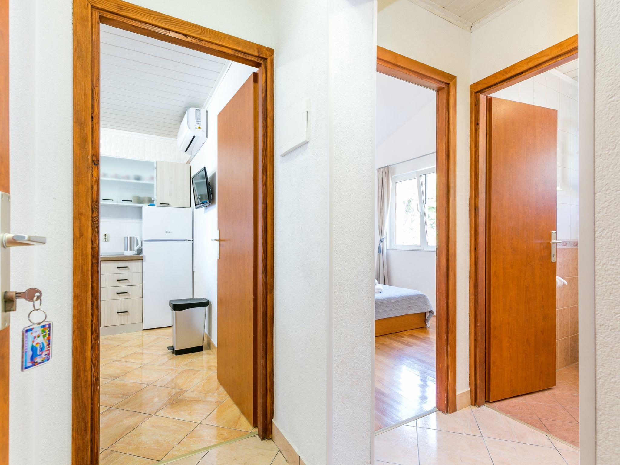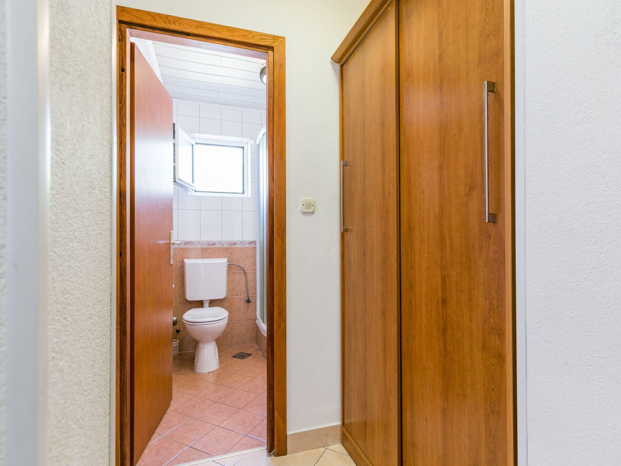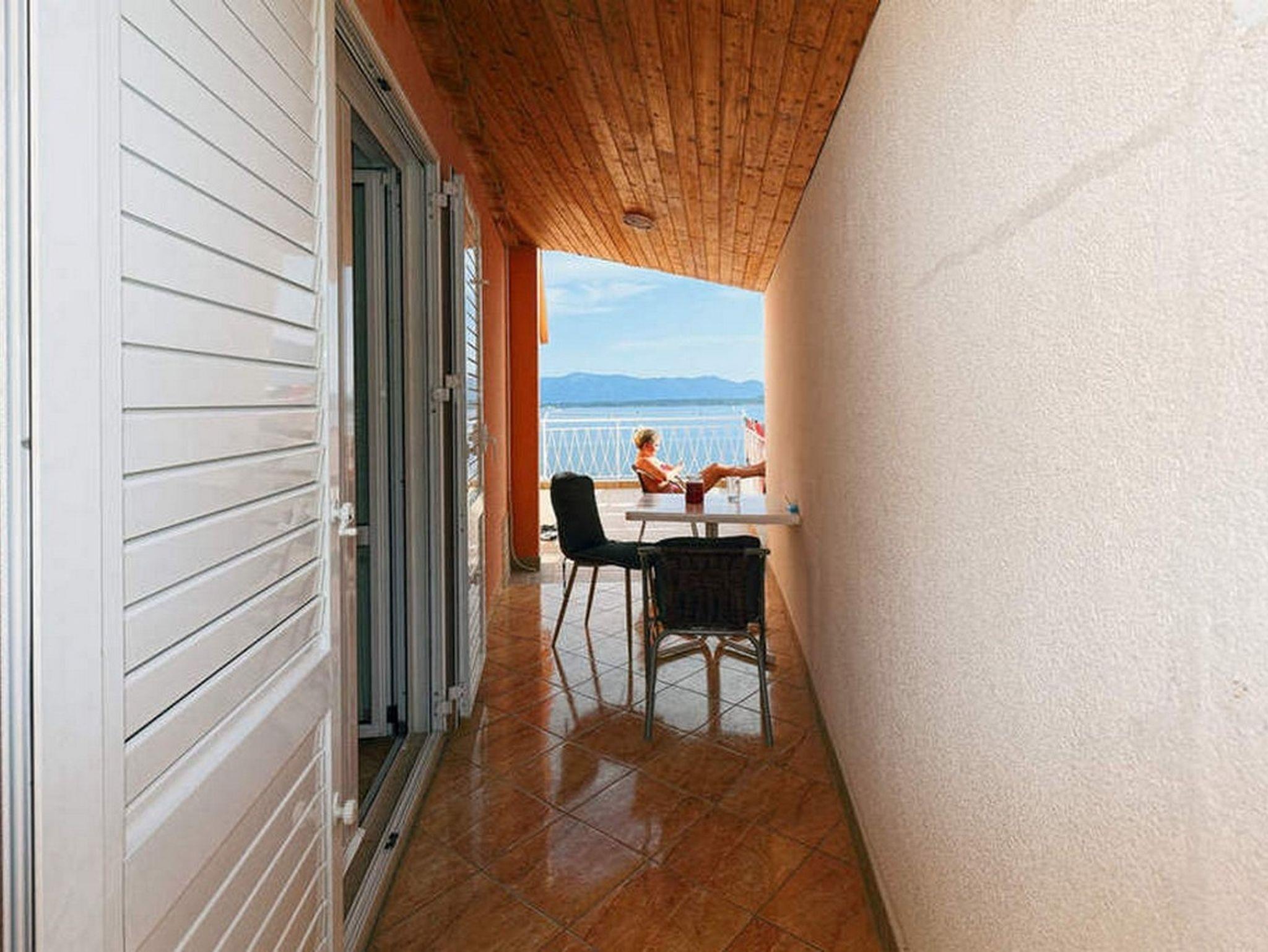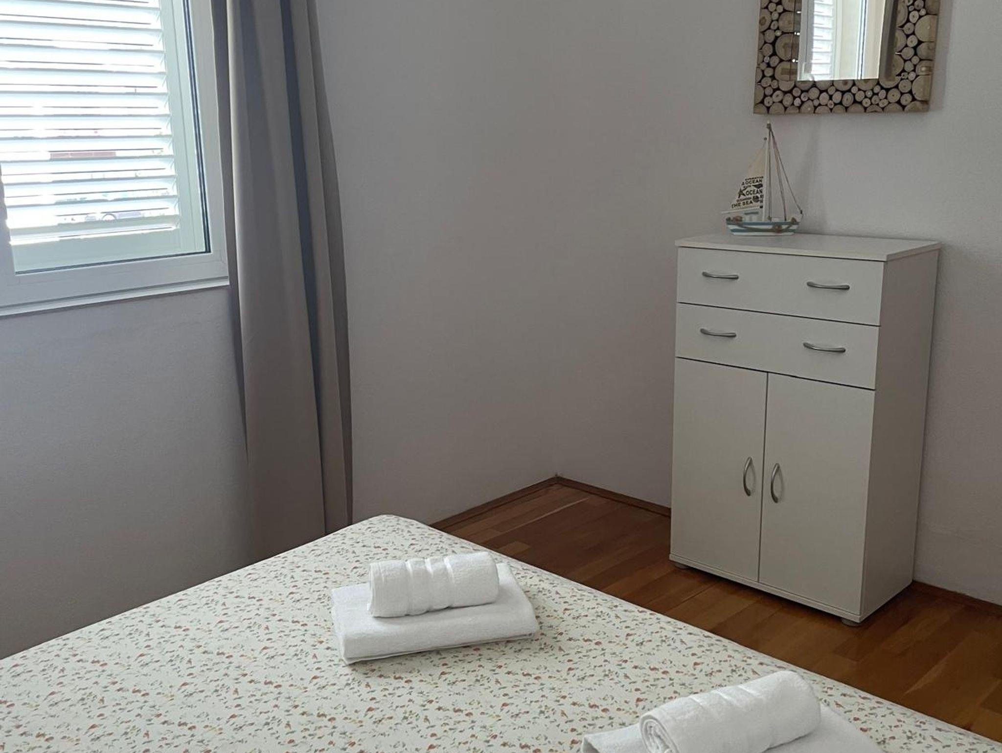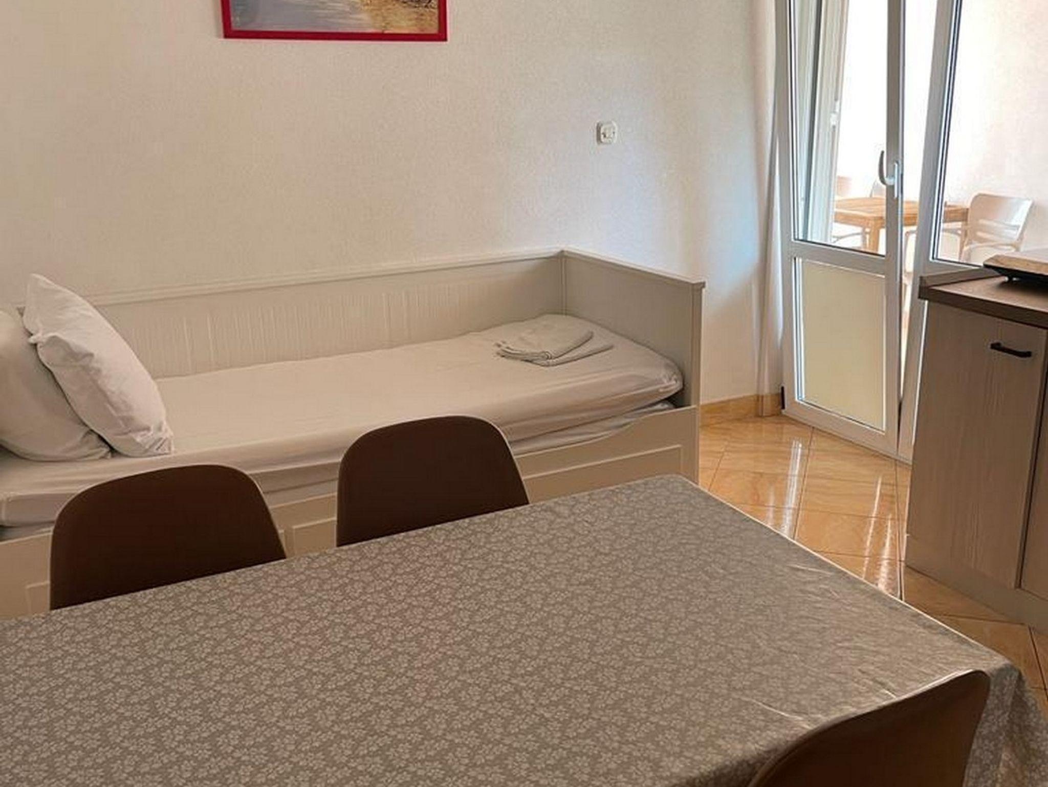 Ferienwohnung bietet Platz für 4 Gäste. Die Betten sind in Schlafzimmern, die es 1 gibt, und in Esszimmer, innerhalb einer Gesamtfläche von 27m2, angeordnet. Die Gäste haben eine eigene Terrasse zur Verfügung, auf der sie in warmen Sommernächten genießen können. Das Apartment bietet Meerblick. Es ist erlaubt, Speisen auf dem Gemeinschafts-Grill vorzubereiten. IM PREIS INBEGRIFFEN: Kurtaxe, Endreinigung, Klimatisierung, Parkplatz, Internet, Wäschewaschen, Kinderbett, Bügeleisen, Bügelbrett. VERBINDLICHE ZUSÄTZLICHE KOSTEN: Aufzahlung für Kurzaufenthalte (prozentualer Zuschlag pro Nächtigungsanzahl: 30% - 1, 20% - 2, 10% - 3). Die Verfügbarkeit zusätzlicher Dienstleistungen in Ihrem reservierten Termin und die Preise derselben (falls nicht aufgeführt) müssen im Voraus überprüft werden. Zusätzliche Dienstleistungen die in der Zahlungsaufforderung nicht aufgeführt sind werden direkt beim Vermieter bezahlt, angenommen der Gast nutzt auch diese. Ermäßigung auf den Grundpreis: Gratistag 14=13 (bei einem Aufenthalt von 14 Tagen oder mehr erhalten Sie einen Gratistag für den Aufenthalt bis 31.12.26).