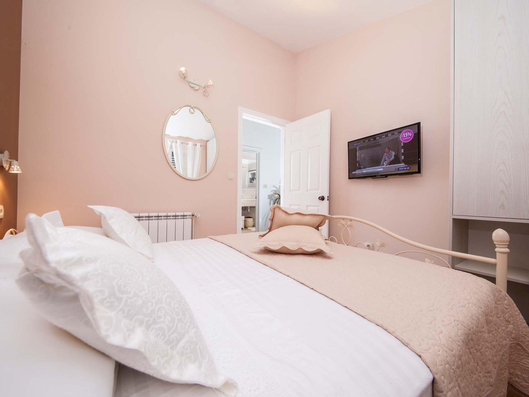 Haus bietet Platz für 5 Gäste. Die Betten sind in Schlafzimmern, die es 3 gibt, innerhalb einer Gesamtfläche von 78m2, angeordnet. Die Gäste haben eine eigene Terrasse zur Verfügung, auf der sie in warmen Sommernächten genießen können. Das Haus bietet Meerblick. Für vollen Genuss und Entspannung gibt es einen privaten Grill für Gäste dieser Unterkunft. In der Unterkunftseinheit besteht die Möglichkeit des Mitbringens von Haustieren, und die Dienstleistung ist im Preis der Unterkunft enthalten. IM PREIS INBEGRIFFEN: Kurtaxe, Endreinigung, Klimatisierung, Parkplatz, Internet, Haustiere, Kinderbett, Bügeleisen, Bügelbrett, Föhn. Die Verfügbarkeit zusätzlicher Dienstleistungen in Ihrem reservierten Termin und die Preise derselben (falls nicht aufgeführt) müssen im Voraus überprüft werden. Zusätzliche Dienstleistungen die in der Zahlungsaufforderung nicht aufgeführt sind werden direkt beim Vermieter bezahlt, angenommen der Gast nutzt auch diese.