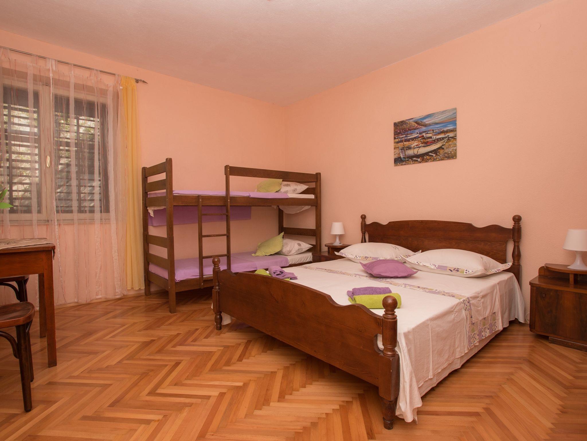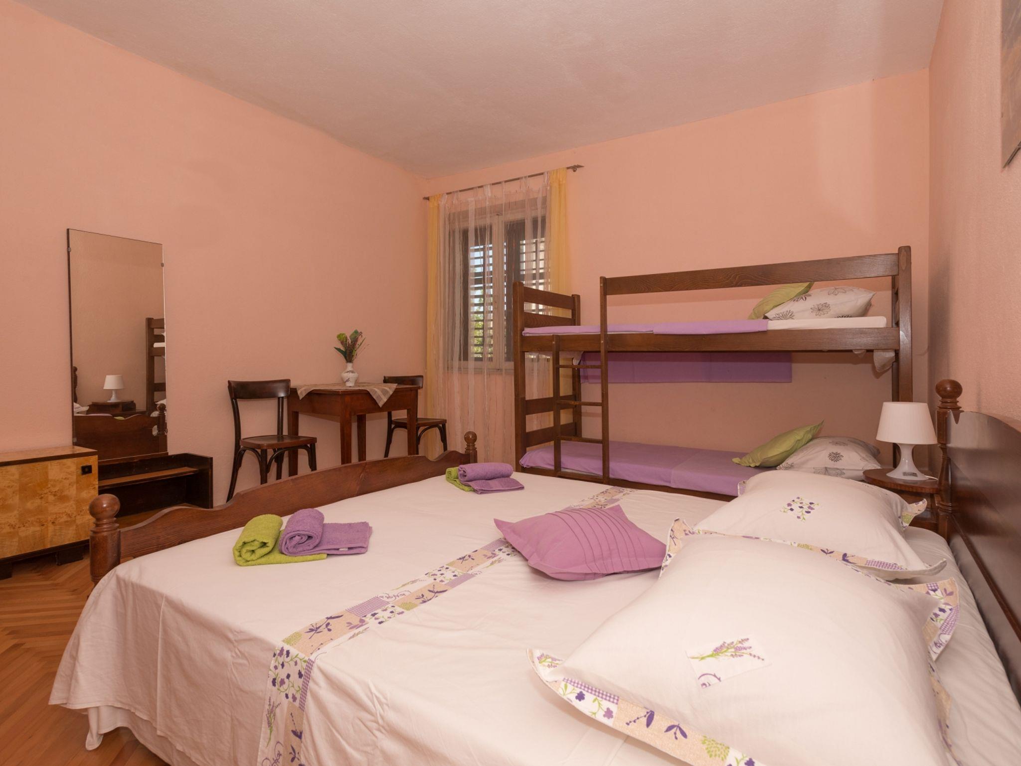Ferienwohnung bietet Platz für 9 Gäste. Die Betten sind in Schlafzimmern, die es 3 gibt, innerhalb einer Gesamtfläche von 84m2, angeordnet. Die Gäste haben eine eigene Terrasse zur Verfügung, auf der sie in warmen Sommernächten genießen können. Das Apartment bietet Meerblick. Für vollen Genuss und Entspannung gibt es einen privaten Grill für Gäste dieser Unterkunft. In der Unterkunftseinheit besteht die Möglichkeit des Mitbringens von Haustieren gegen Aufpreis. Räume der gebuchten Unterkunftseinheit werden nicht in eine Ganze verbunden. Unterkunftseinheit hat Räume, die von dem Rest der Einheit abgetrennt werden. IM PREIS INBEGRIFFEN: Kurtaxe, Endreinigung, Klimatisierung, Parkplatz, Garage, Internet, Kinderbett, Zusatzbett, Bügeleisen, Föhn. VERBINDLICHE ZUSÄTZLICHE KOSTEN: Aufzahlung für Kurzaufenthalte (prozentualer Zuschlag pro Nächtigungsanzahl: 30% - 1, 20% - 2, 10% - 3). UNVERBINDLICHE ZUSÄTZLICHE KOSTEN: Haustiere (7,00 € pro Nacht). Die Verfügbarkeit zusätzlicher Dienstleistungen in Ihrem reservierten Termin und die Preise derselben (falls nicht aufgeführt) müssen im Voraus überprüft werden. Zusätzliche Dienstleistungen die in der Zahlungsaufforderung nicht aufgeführt sind werden direkt beim Vermieter bezahlt, angenommen der Gast nutzt auch diese. Ermäßigung auf den Grundpreis: Gratistag 21=19 (bei einem Aufenthalt von 21 Tagen oder mehr erhalten Sie 2 Gratistage für den Aufenthalt bis 31.12.26).