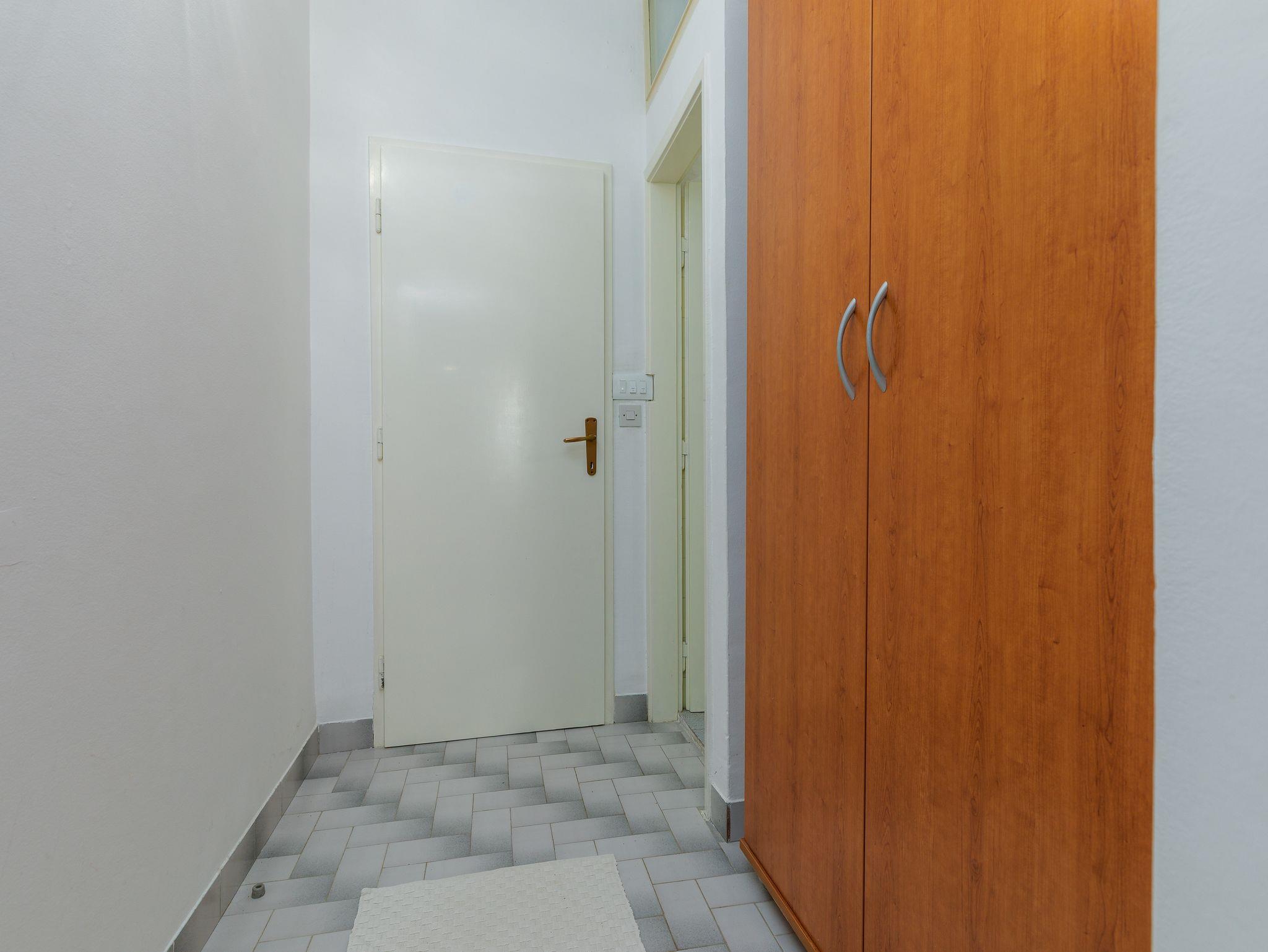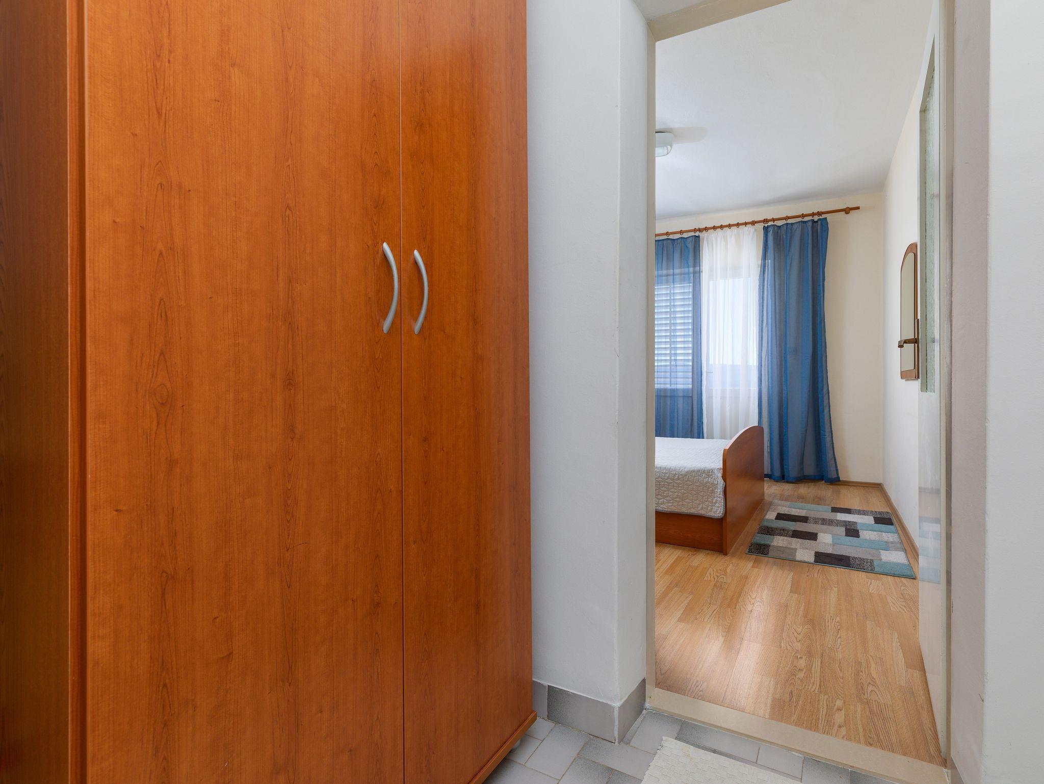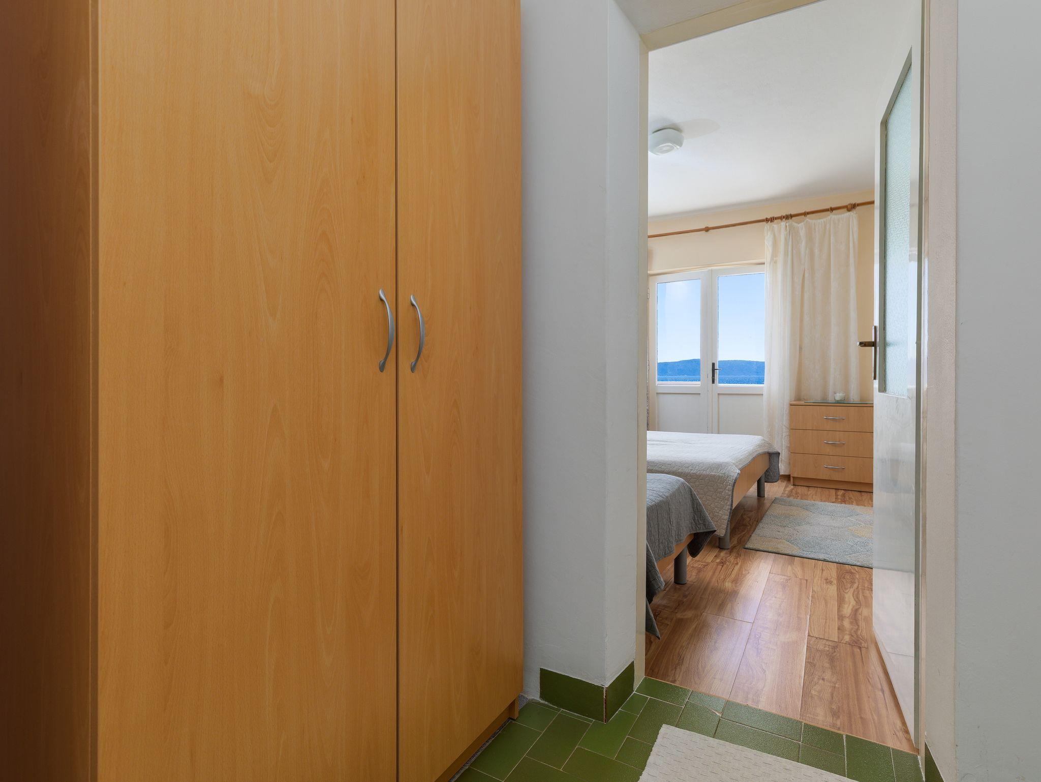 Ferienwohnung bietet Platz für 5 Gäste. Die Betten sind in Schlafzimmern, die es 2 gibt, innerhalb einer Gesamtfläche von 55m2, angeordnet. Die Gäste haben eine eigene Terrasse zur Verfügung, auf der sie in warmen Sommernächten genießen können. Das Apartment bietet Meerblick. Es ist erlaubt, Speisen auf dem Gemeinschafts-Grill vorzubereiten. IM PREIS INBEGRIFFEN: Kurtaxe, Endreinigung, Klimatisierung, Parkplatz, Internet, Kinderbett, Bügeleisen, Bügelbrett, Föhn. VERBINDLICHE ZUSÄTZLICHE KOSTEN: Aufzahlung für Kurzaufenthalte (prozentualer Zuschlag pro Nächtigungsanzahl: 30% - 1, 20% - 2, 10% - 3). Die Verfügbarkeit zusätzlicher Dienstleistungen in Ihrem reservierten Termin und die Preise derselben (falls nicht aufgeführt) müssen im Voraus überprüft werden. Zusätzliche Dienstleistungen die in der Zahlungsaufforderung nicht aufgeführt sind werden direkt beim Vermieter bezahlt, angenommen der Gast nutzt auch diese. Ermäßigung auf den Grundpreis: Gratistag 14=13 (bei einem Aufenthalt von 14 Tagen oder mehr erhalten Sie einen Gratistag für den Aufenthalt bis 31.12.26).