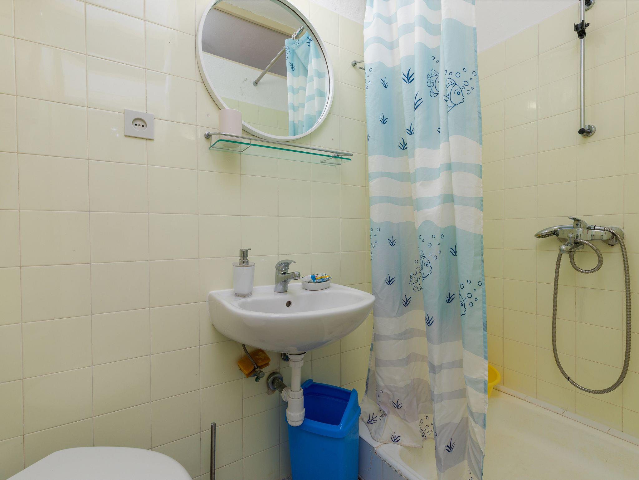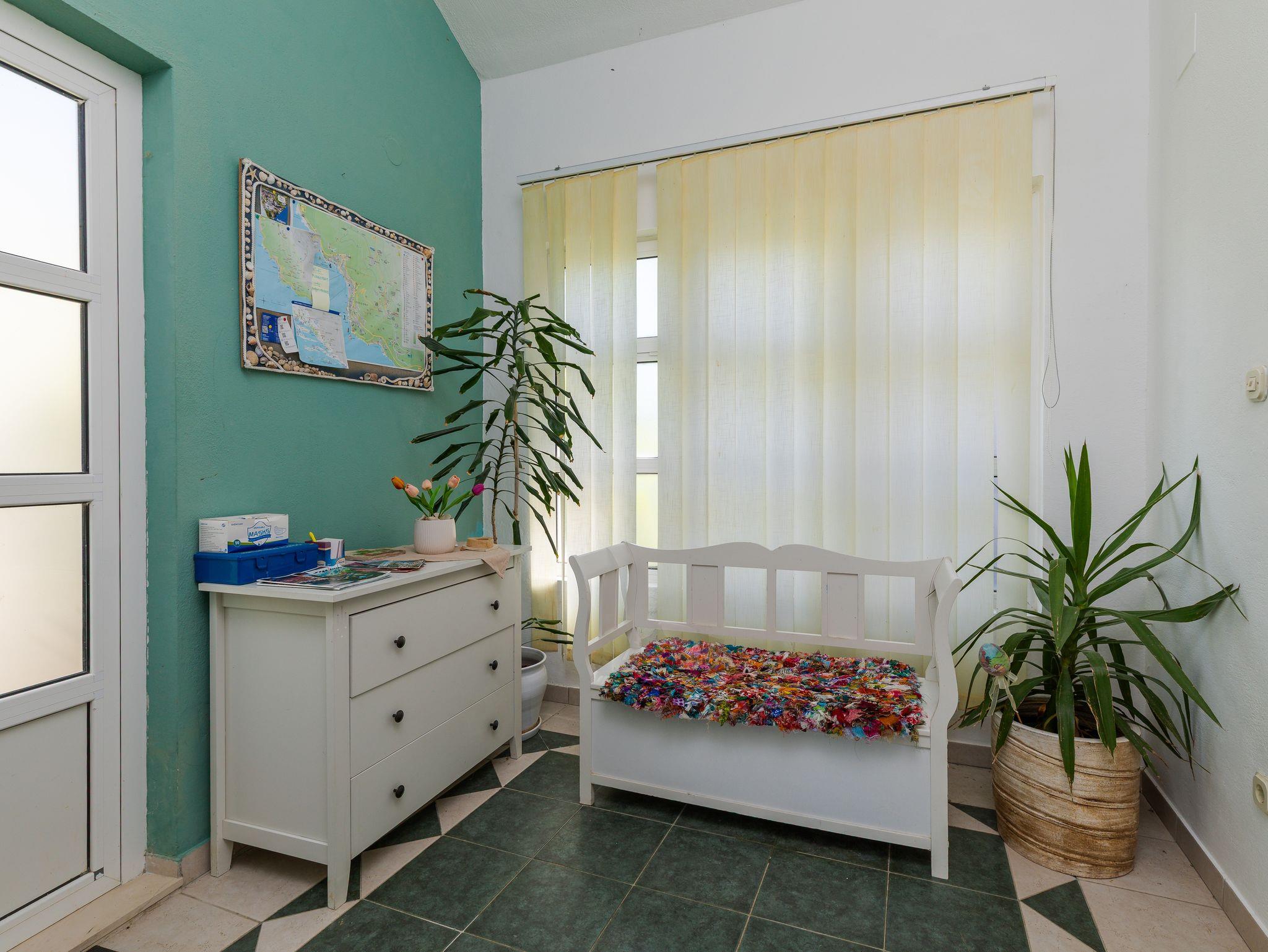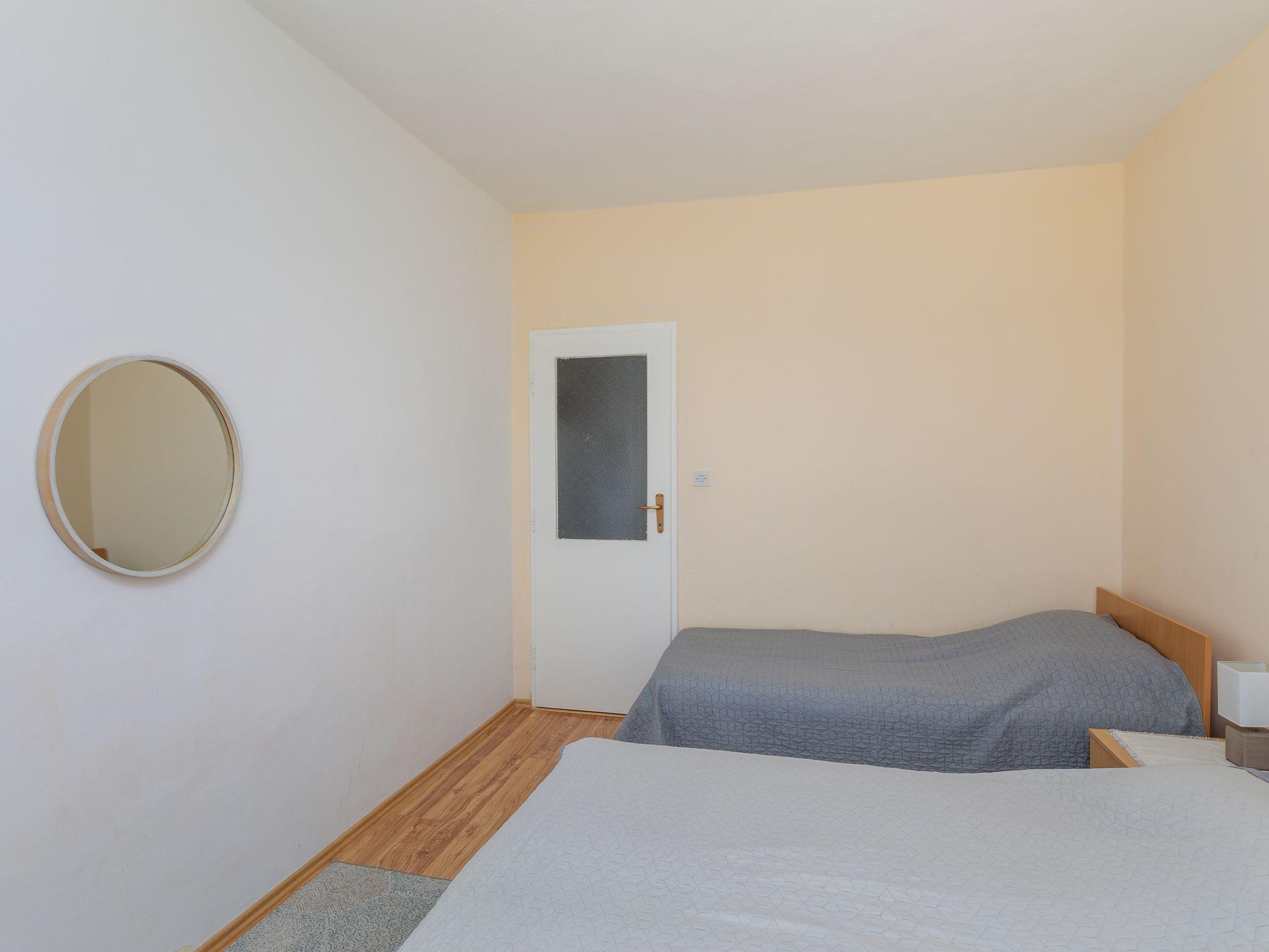 Ferienwohnung bietet Platz für 5 Gäste. Die Betten sind in Schlafzimmern, die es 2 gibt, innerhalb einer Gesamtfläche von 55m2, angeordnet. Die Gäste haben eine eigene Terrasse zur Verfügung, auf der sie in warmen Sommernächten genießen können. Das Apartment bietet Meerblick. Es ist erlaubt, Speisen auf dem Gemeinschafts-Grill vorzubereiten. IM PREIS INBEGRIFFEN: Kurtaxe, Endreinigung, Klimatisierung, Parkplatz, Internet, Kinderbett, Bügeleisen, Bügelbrett, Föhn. VERBINDLICHE ZUSÄTZLICHE KOSTEN: Aufzahlung für Kurzaufenthalte (prozentualer Zuschlag pro Nächtigungsanzahl: 30% - 1, 20% - 2, 10% - 3). Die Verfügbarkeit zusätzlicher Dienstleistungen in Ihrem reservierten Termin und die Preise derselben (falls nicht aufgeführt) müssen im Voraus überprüft werden. Zusätzliche Dienstleistungen die in der Zahlungsaufforderung nicht aufgeführt sind werden direkt beim Vermieter bezahlt, angenommen der Gast nutzt auch diese. Ermäßigung auf den Grundpreis: Gratistag 14=13 (bei einem Aufenthalt von 14 Tagen oder mehr erhalten Sie einen Gratistag für den Aufenthalt bis 31.12.26).