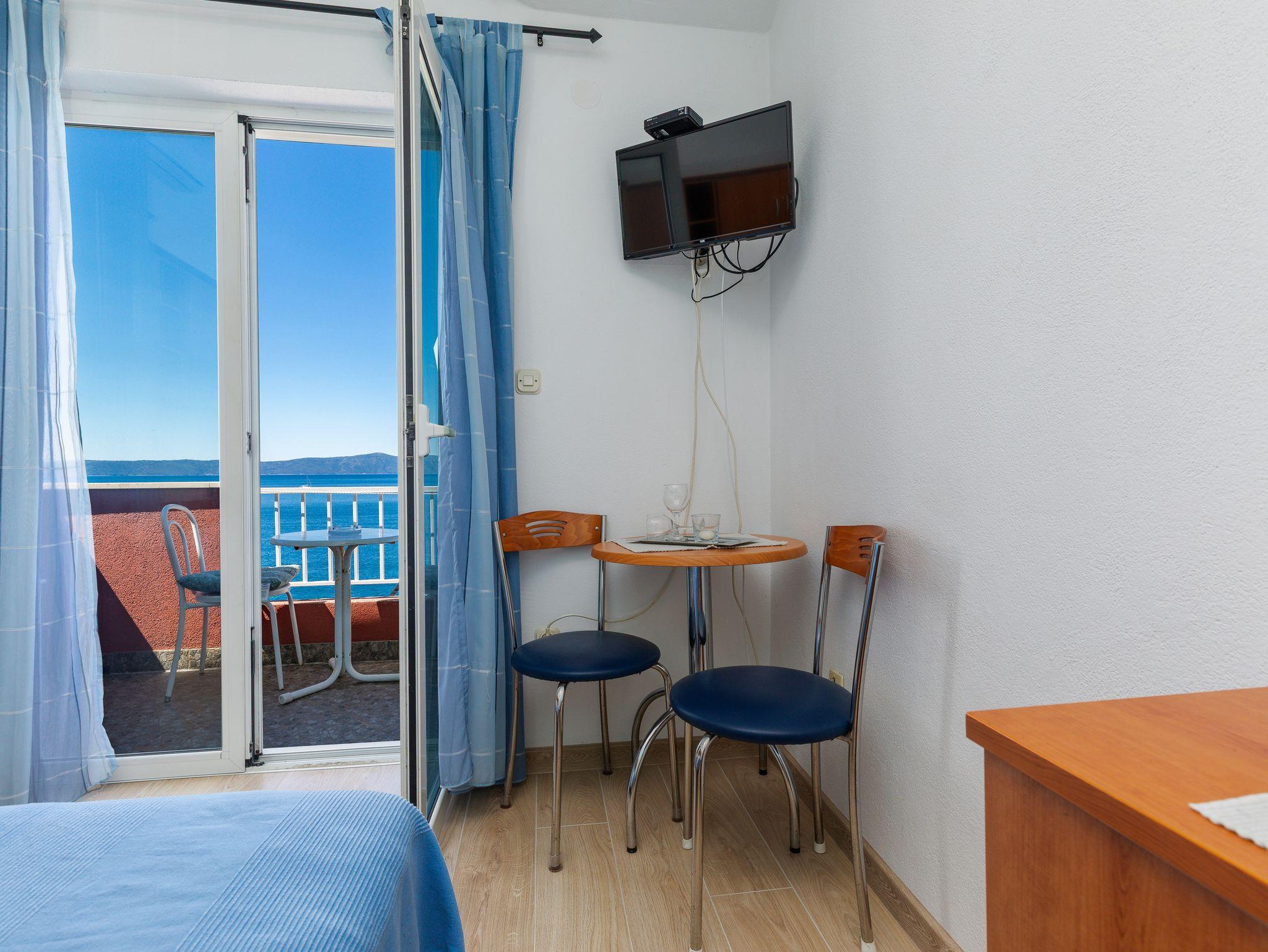 Zimmer bietet Platz für 2 Gäste. Die Betten sind in Schlafzimmern, die es 1 gibt, innerhalb einer Gesamtfläche von 13m2, angeordnet. Die Gäste haben einen eigenen Balkon zur Verfügung, auf der sie in warmen Sommernächten genießen können. Das Zimmer bietet Meerblick. Es ist erlaubt, Speisen auf dem Gemeinschafts-Grill vorzubereiten. Die reservierte Unterkunftseinheit ist ein Zimmer mit eigenem Badezimmer ohne die Möglichkeit der Nutzung einer Küche. IM PREIS INBEGRIFFEN: Kurtaxe, Endreinigung, Klimatisierung, Parkplatz, Internet, Kinderbett, Bügeleisen, Bügelbrett, Föhn. VERBINDLICHE ZUSÄTZLICHE KOSTEN: Aufzahlung für Kurzaufenthalte (prozentualer Zuschlag pro Nächtigungsanzahl: 30% - 1, 20% - 2, 10% - 3). Die Verfügbarkeit zusätzlicher Dienstleistungen in Ihrem reservierten Termin und die Preise derselben (falls nicht aufgeführt) müssen im Voraus überprüft werden. Zusätzliche Dienstleistungen die in der Zahlungsaufforderung nicht aufgeführt sind werden direkt beim Vermieter bezahlt, angenommen der Gast nutzt auch diese. Ermäßigung auf den Grundpreis: Gratistag 14=13 (bei einem Aufenthalt von 14 Tagen oder mehr erhalten Sie einen Gratistag für den Aufenthalt bis 31.12.26).