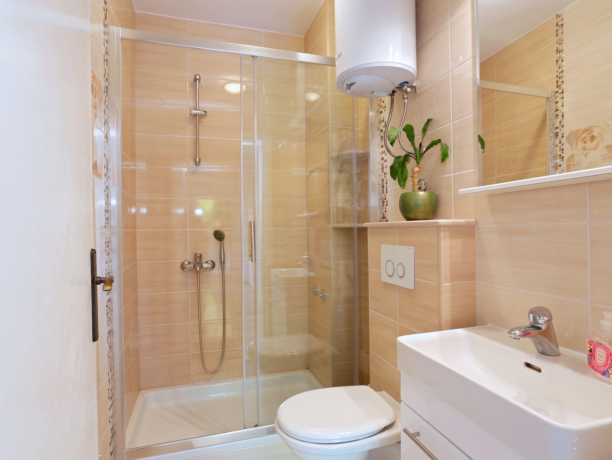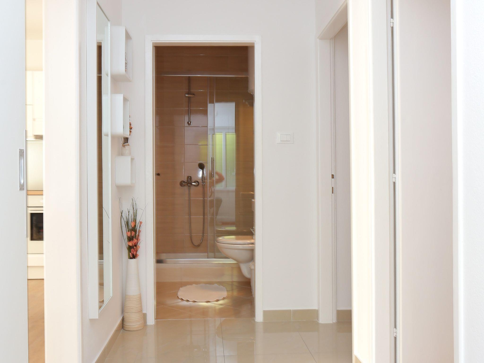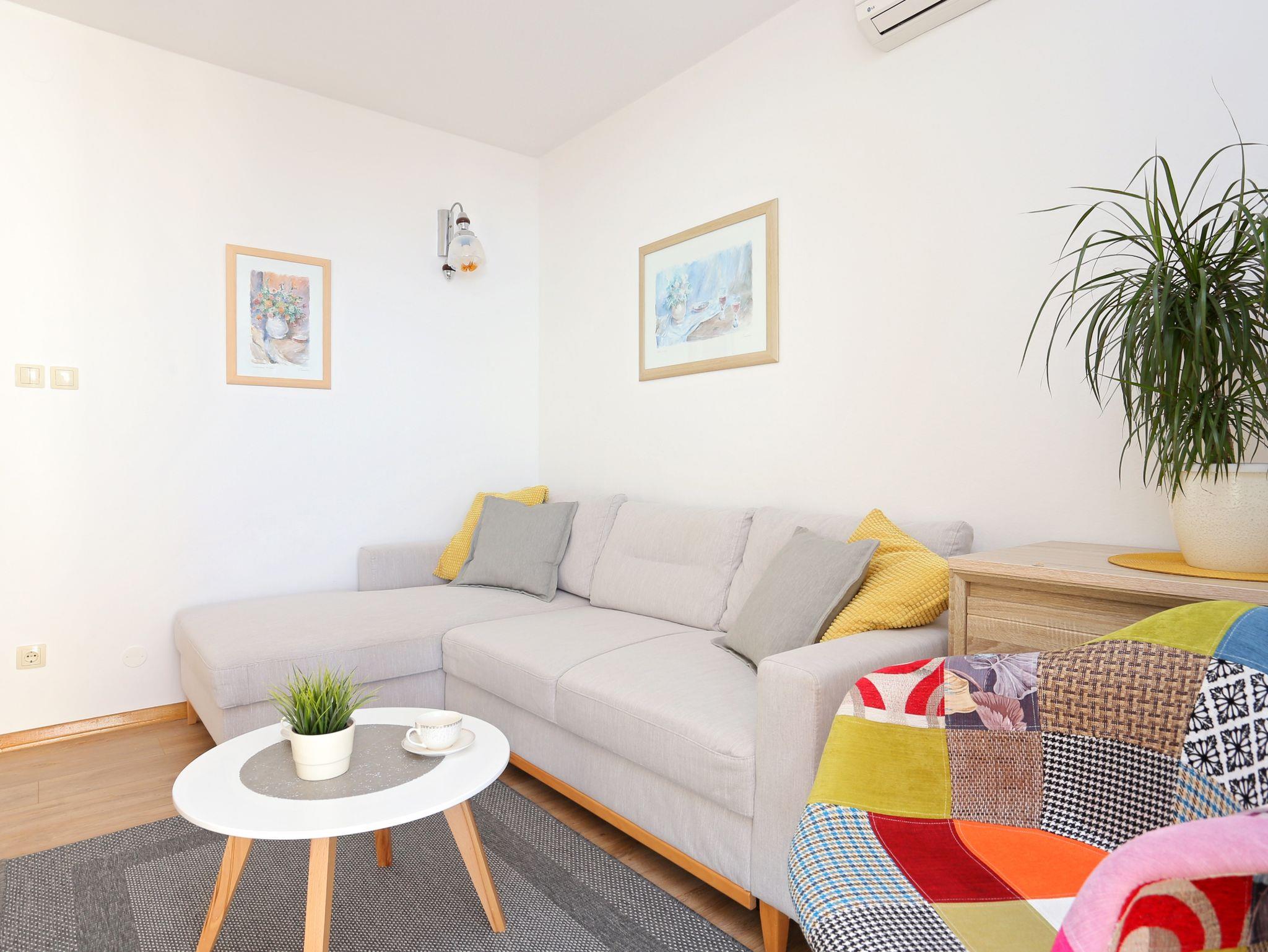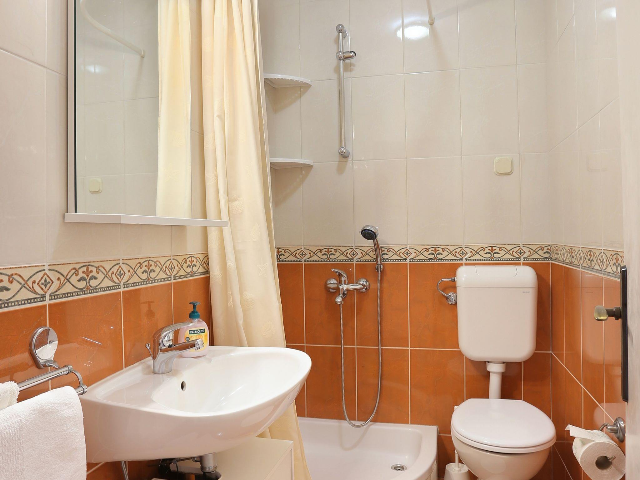 Ferienwohnung bietet Platz für 6 Gäste. Die Betten sind in Schlafzimmern, die es 2 gibt, und in Wohnzimmer, innerhalb einer Gesamtfläche von 59m2, angeordnet. Die Gäste haben eine eigene Terrasse zur Verfügung, auf der sie in warmen Sommernächten genießen können. Das Apartment bietet Meerblick. Es ist erlaubt, Speisen auf dem Gemeinschafts-Grill vorzubereiten. IM PREIS INBEGRIFFEN: Kurtaxe, Endreinigung, Klimatisierung, Parkplatz, Internet, Kinderbett, Bügeleisen, Föhn. VERBINDLICHE ZUSÄTZLICHE KOSTEN: Aufzahlung für Kurzaufenthalte (prozentualer Zuschlag pro Nächtigungsanzahl: 30% - 1, 20% - 2, 10% - 3). Die Verfügbarkeit zusätzlicher Dienstleistungen in Ihrem reservierten Termin und die Preise derselben (falls nicht aufgeführt) müssen im Voraus überprüft werden. Zusätzliche Dienstleistungen die in der Zahlungsaufforderung nicht aufgeführt sind werden direkt beim Vermieter bezahlt, angenommen der Gast nutzt auch diese.