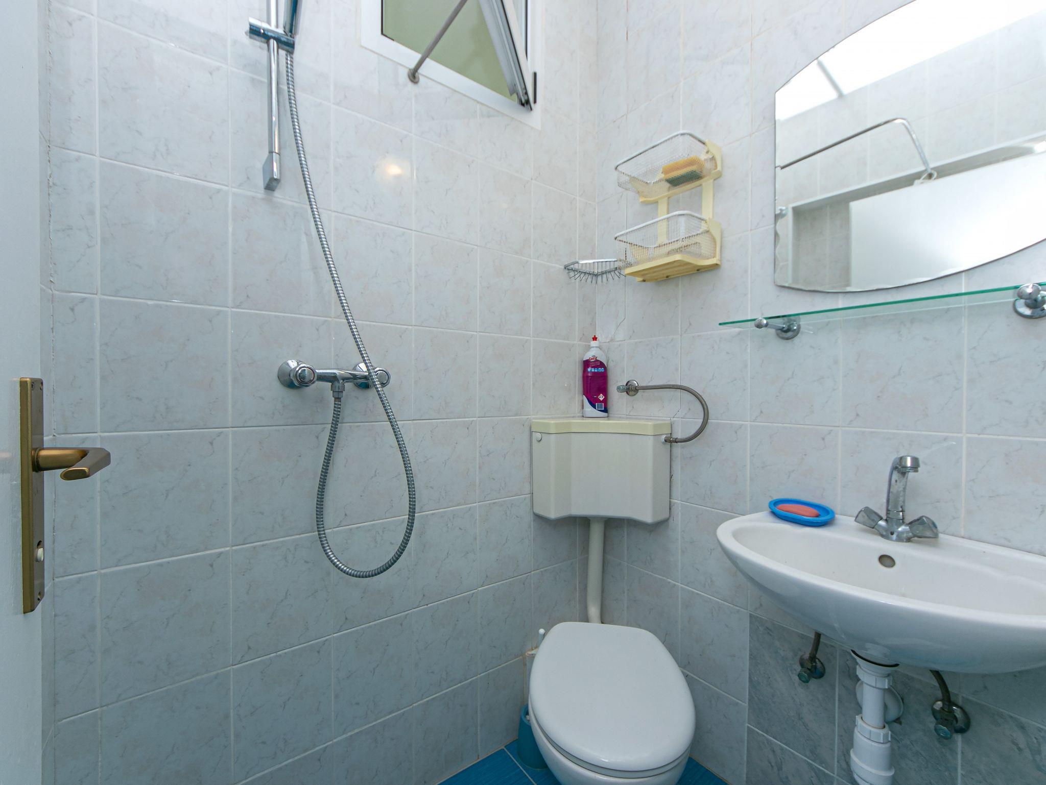 Studio bietet Platz für 3 Gäste. Die Betten sind in Schlafzimmern, die es 1 gibt, und in Wohnzimmer, innerhalb einer Gesamtfläche von 30m2, angeordnet. Die Gäste haben eine eigene Terrasse zur Verfügung, auf der sie in warmen Sommernächten genießen können. Das Studio-Apartment bietet Meerblick. Es ist erlaubt, Speisen auf dem Gemeinschafts-Grill vorzubereiten. IM PREIS INBEGRIFFEN: Kurtaxe, Endreinigung, Parkplatz, Internet, Bügeleisen, Bügelbrett, Föhn, tragbarer Grill. VERBINDLICHE ZUSÄTZLICHE KOSTEN: Aufzahlung für Kurzaufenthalte (prozentualer Zuschlag pro Nächtigungsanzahl: 30% - 1, 20% - 2, 10% - 3). UNVERBINDLICHE ZUSÄTZLICHE KOSTEN: Klimatisierung (5,00 € pro Nacht). Die Verfügbarkeit zusätzlicher Dienstleistungen in Ihrem reservierten Termin und die Preise derselben (falls nicht aufgeführt) müssen im Voraus überprüft werden. Zusätzliche Dienstleistungen die in der Zahlungsaufforderung nicht aufgeführt sind werden direkt beim Vermieter bezahlt, angenommen der Gast nutzt auch diese.