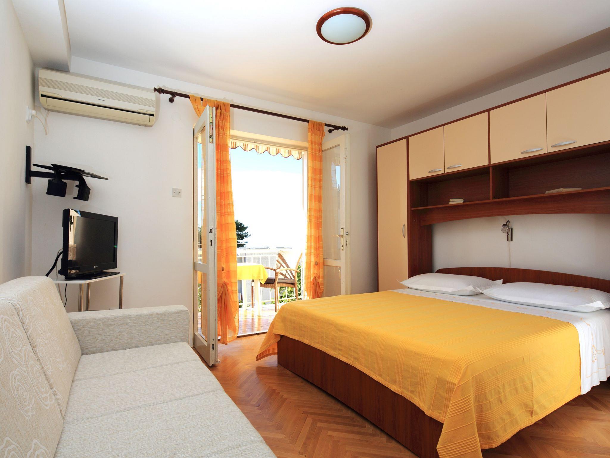 Studio bietet Platz für 3 Gäste. Die Betten sind in Schlafzimmern, die es 1 gibt, innerhalb einer Gesamtfläche von 19m2, angeordnet. Die Gäste haben einen eigenen Balkon zur Verfügung, auf der sie in warmen Sommernächten genießen können. Das Studio-Apartment bietet Meerblick. Unterkunftseinheit hat Räume, die von dem Rest der Einheit abgetrennt werden. IM PREIS INBEGRIFFEN: Kurtaxe, Endreinigung, Klimatisierung, Parkplatz, Internet. VERBINDLICHE ZUSÄTZLICHE KOSTEN: Aufzahlung für Kurzaufenthalte (prozentualer Zuschlag pro Nächtigungsanzahl: 30% - 1, 20% - 2, 10% - 3). Die Verfügbarkeit zusätzlicher Dienstleistungen in Ihrem reservierten Termin und die Preise derselben (falls nicht aufgeführt) müssen im Voraus überprüft werden. Zusätzliche Dienstleistungen die in der Zahlungsaufforderung nicht aufgeführt sind werden direkt beim Vermieter bezahlt, angenommen der Gast nutzt auch diese.