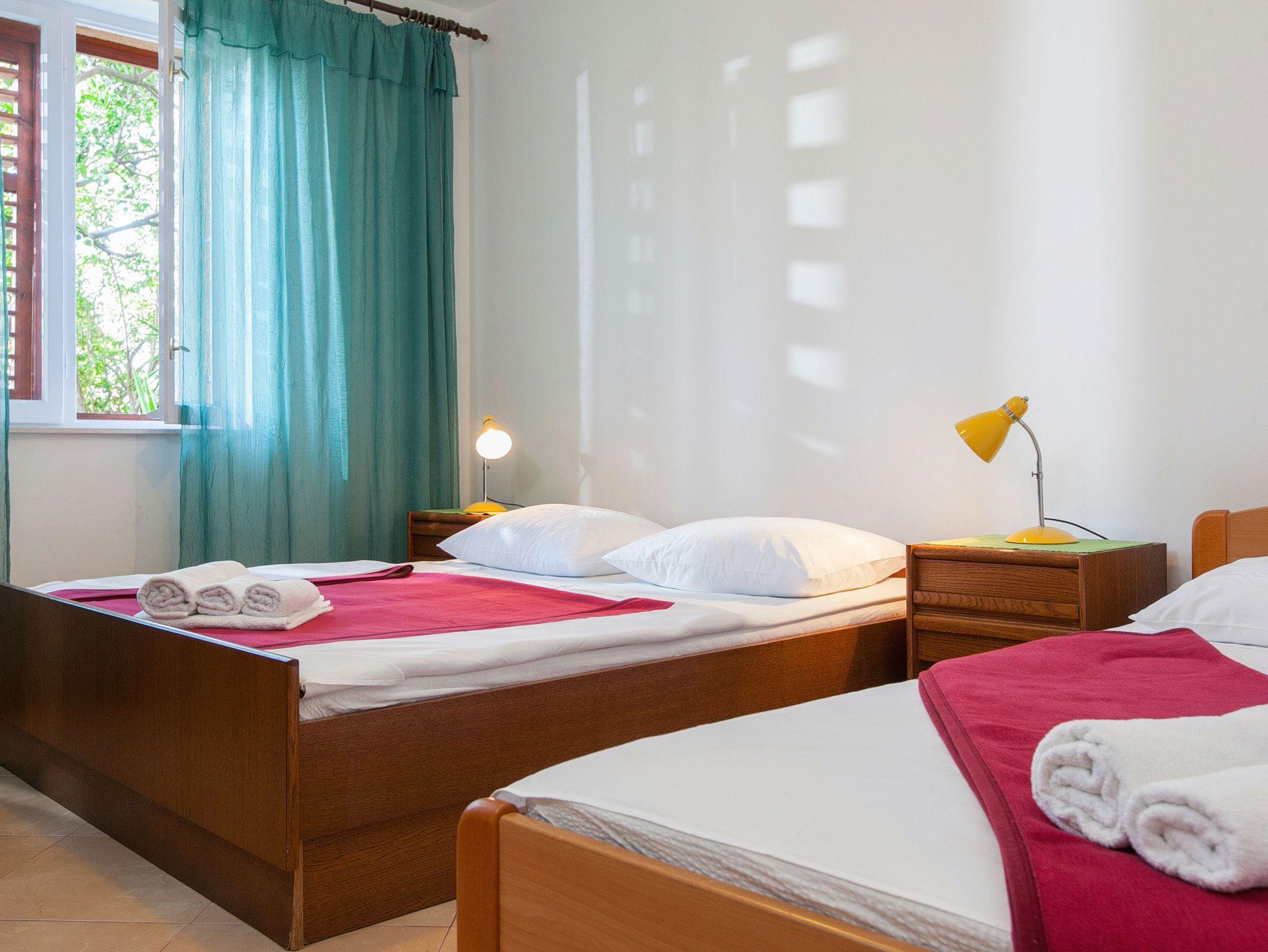 Ferienwohnung bietet Platz für 9 Gäste. Die Betten sind in Schlafzimmern, die es 4 gibt, innerhalb einer Gesamtfläche von 109m2, angeordnet. Die Gäste haben eine eigene Terrasse zur Verfügung, auf der sie in warmen Sommernächten genießen können. Für vollen Genuss und Entspannung gibt es einen privaten Grill für Gäste dieser Unterkunft. IM PREIS INBEGRIFFEN: Kurtaxe, Endreinigung, Klimatisierung, Parkplatz, Internet, Bügeleisen, Bügelbrett, Föhn. VERBINDLICHE ZUSÄTZLICHE KOSTEN: Aufzahlung für Kurzaufenthalte (prozentualer Zuschlag pro Nächtigungsanzahl: 30% - 1, 20% - 2, 10% - 3). Die Verfügbarkeit zusätzlicher Dienstleistungen in Ihrem reservierten Termin und die Preise derselben (falls nicht aufgeführt) müssen im Voraus überprüft werden. Zusätzliche Dienstleistungen die in der Zahlungsaufforderung nicht aufgeführt sind werden direkt beim Vermieter bezahlt, angenommen der Gast nutzt auch diese.