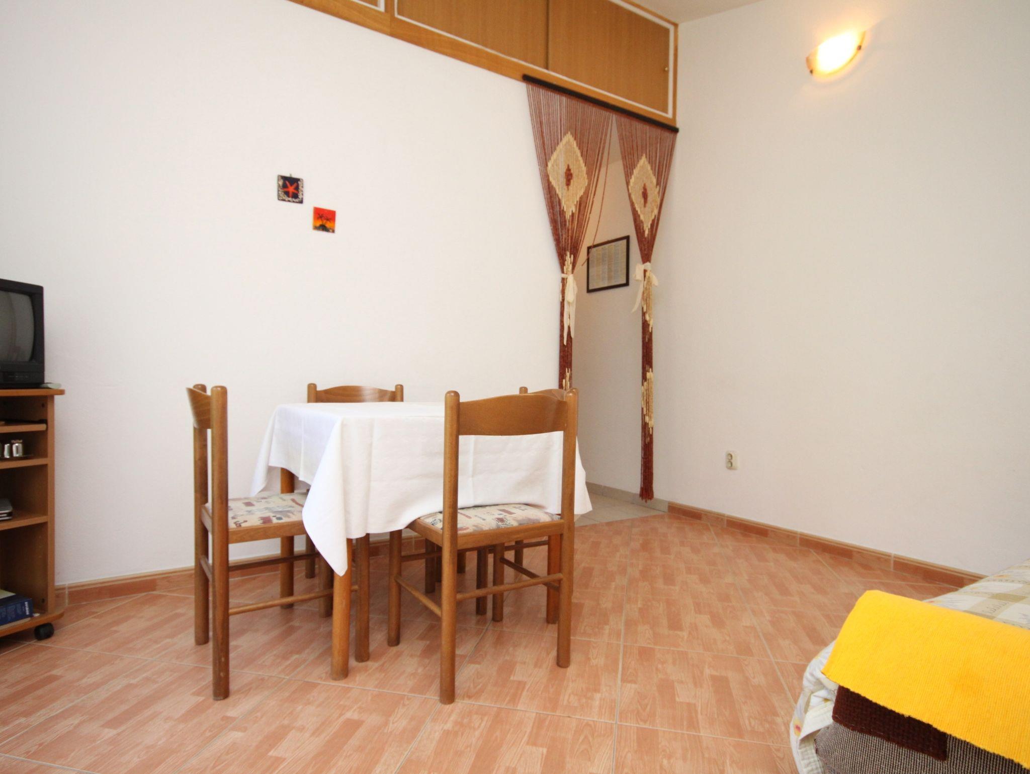 Ferienwohnung bietet Platz für 4 Gäste. Die Betten sind in Schlafzimmern, die es 1 gibt, und in Esszimmer, innerhalb einer Gesamtfläche von 31m2, angeordnet. Die Gäste haben einen eigenen Balkon zur Verfügung, auf der sie in warmen Sommernächten genießen können. Das Apartment bietet Meerblick. Es ist erlaubt, Speisen auf dem Gemeinschafts-Grill vorzubereiten. IM PREIS INBEGRIFFEN: Kurtaxe, Endreinigung, Klimatisierung, Parkplatz, Internet, Kinderbett, Bügeleisen, Bügelbrett, Föhn. VERBINDLICHE ZUSÄTZLICHE KOSTEN: Aufzahlung für Kurzaufenthalte (prozentualer Zuschlag pro Nächtigungsanzahl: 30% - 1, 20% - 2, 10% - 3). UNVERBINDLICHE ZUSÄTZLICHE KOSTEN: Wäschewaschen (5,00 € Waschen), Zusatzbett (10,00 € pro Nacht). Die Verfügbarkeit zusätzlicher Dienstleistungen in Ihrem reservierten Termin und die Preise derselben (falls nicht aufgeführt) müssen im Voraus überprüft werden. Zusätzliche Dienstleistungen die in der Zahlungsaufforderung nicht aufgeführt sind werden direkt beim Vermieter bezahlt, angenommen der Gast nutzt auch diese. Ermäßigung auf den Grundpreis: Gratistag 14=13 (bei einem Aufenthalt von 14 Tagen oder mehr erhalten Sie einen Gratistag für den Aufenthalt bis 31.12.26).