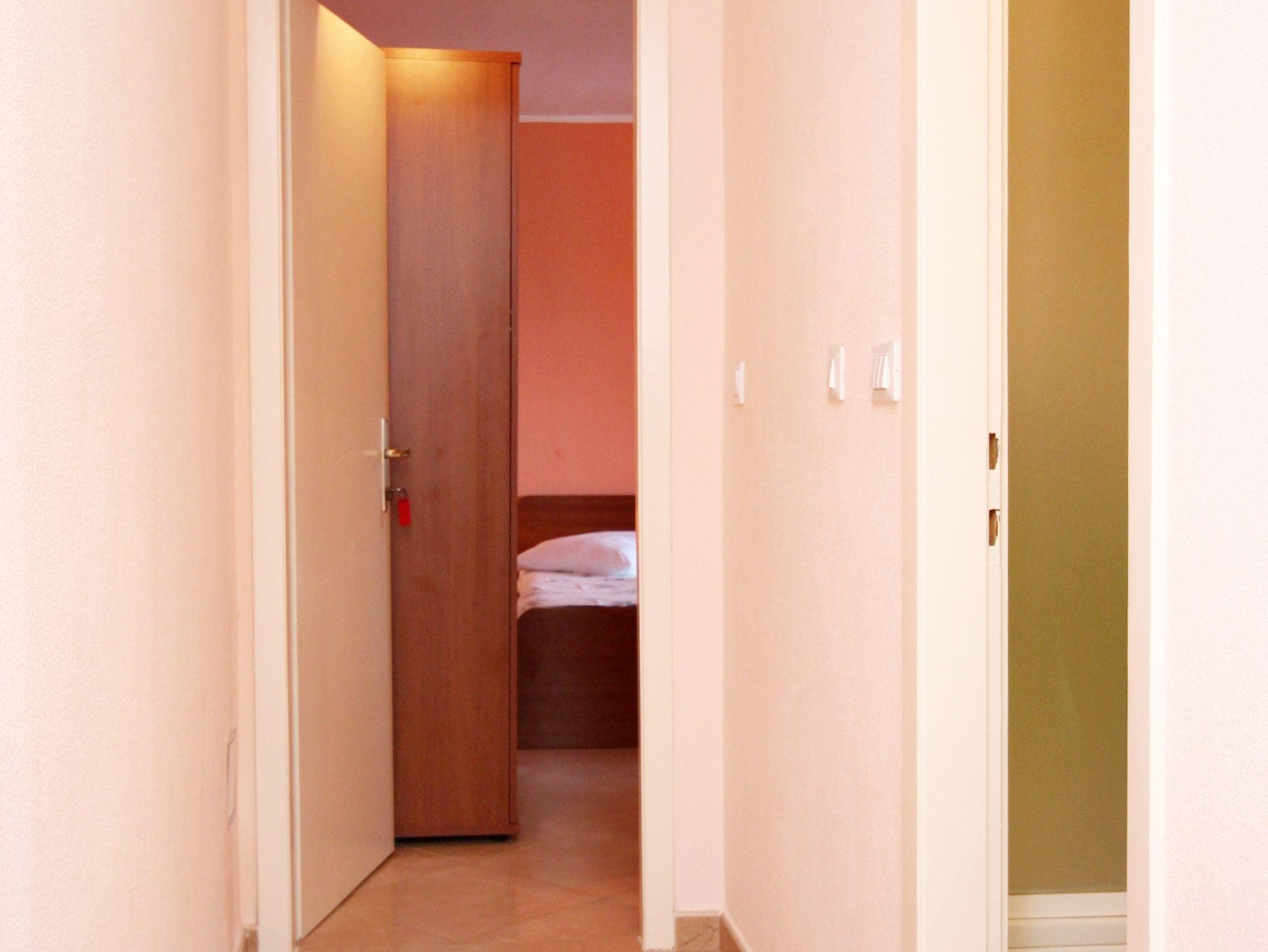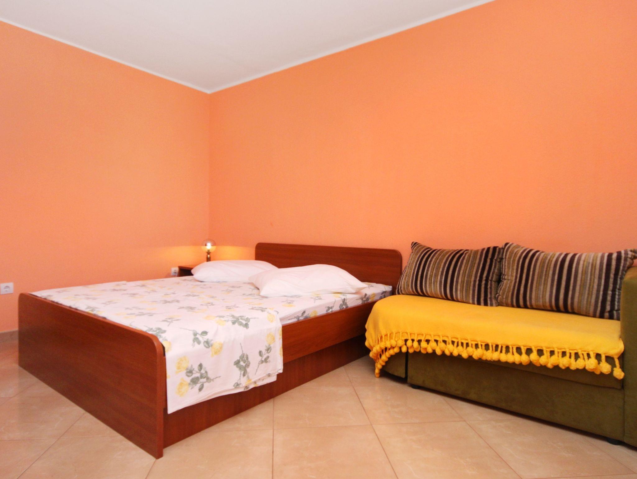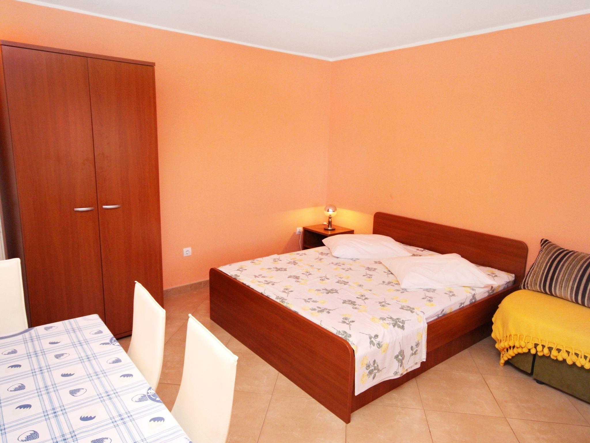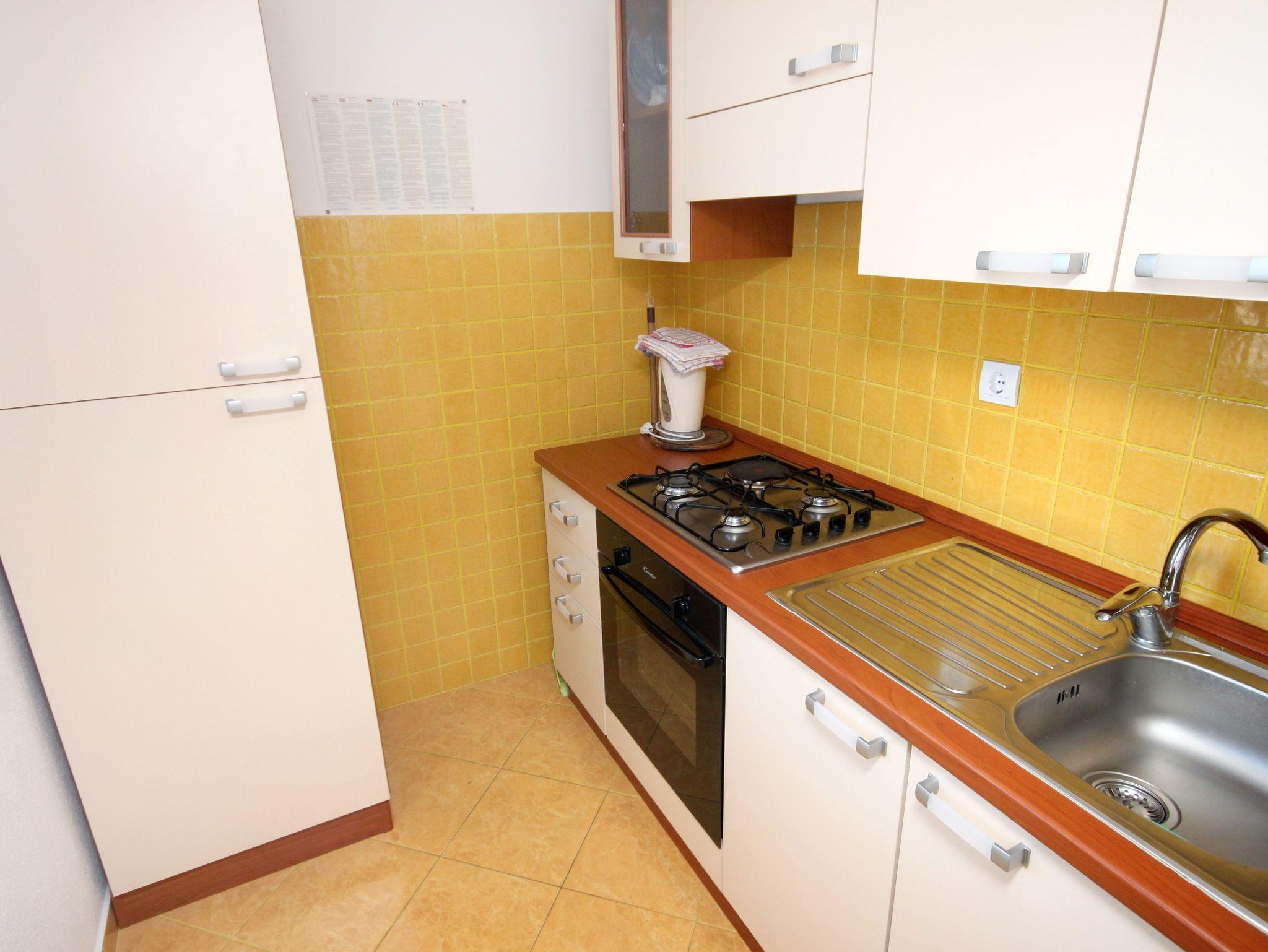 Ferienwohnung bietet Platz für 5 Gäste. Die Betten sind in Schlafzimmern, die es 1 gibt, und in Wohnzimmer, innerhalb einer Gesamtfläche von 39m2, angeordnet. Die Gäste haben eine eigene Terrasse zur Verfügung, auf der sie in warmen Sommernächten genießen können. Das Apartment bietet Meerblick. Es ist erlaubt, Speisen auf dem Gemeinschafts-Grill vorzubereiten. IM PREIS INBEGRIFFEN: Kurtaxe, Endreinigung, Klimatisierung, Parkplatz, Internet, Wäschewaschen, Fahrrad, Bügeleisen, Bügelbrett, Föhn, tragbarer Grill. VERBINDLICHE ZUSÄTZLICHE KOSTEN: Aufzahlung für Kurzaufenthalte (prozentualer Zuschlag pro Nächtigungsanzahl: 30% - 1, 20% - 2, 10% - 3). Die Verfügbarkeit zusätzlicher Dienstleistungen in Ihrem reservierten Termin und die Preise derselben (falls nicht aufgeführt) müssen im Voraus überprüft werden. Zusätzliche Dienstleistungen die in der Zahlungsaufforderung nicht aufgeführt sind werden direkt beim Vermieter bezahlt, angenommen der Gast nutzt auch diese.