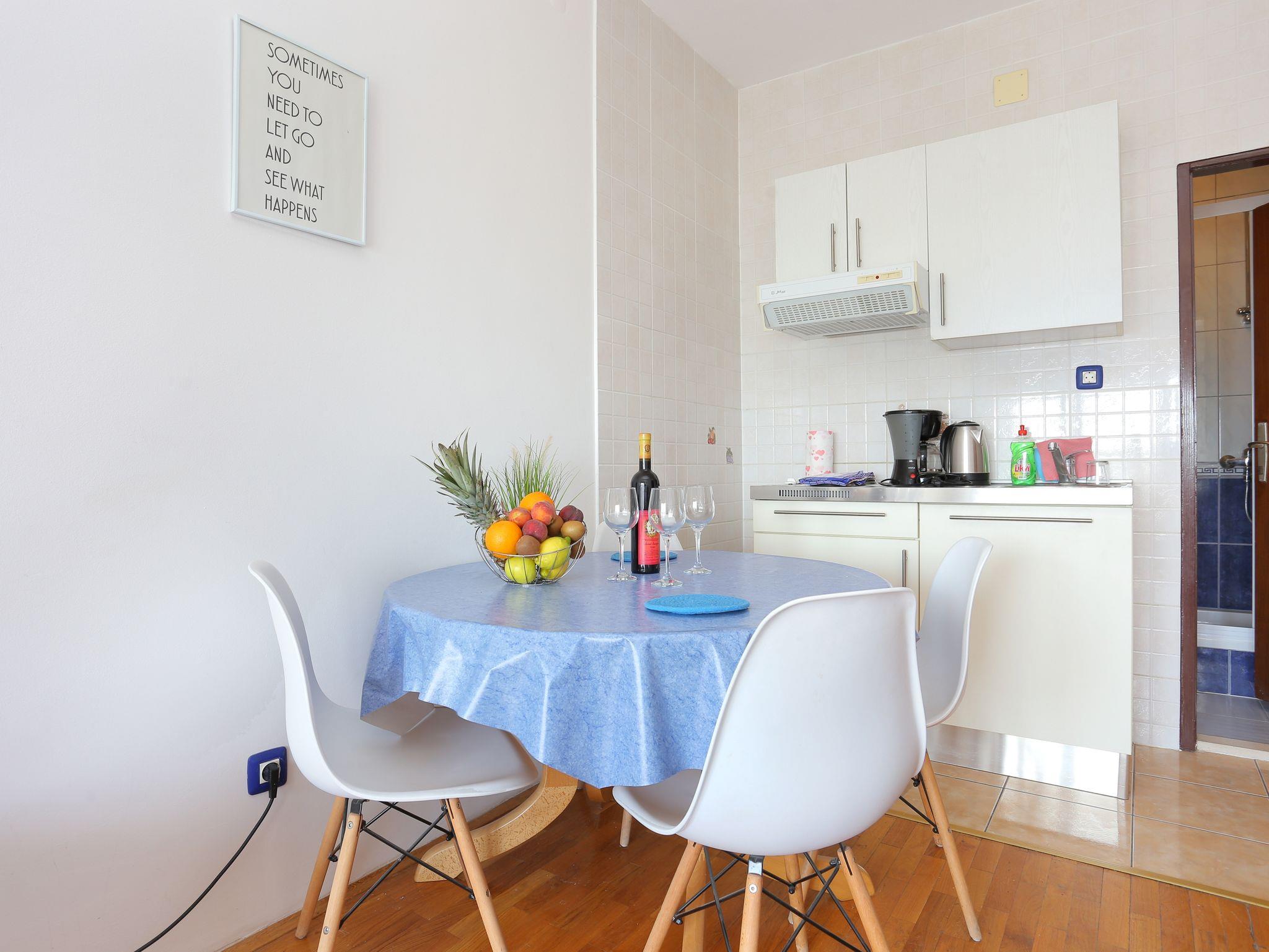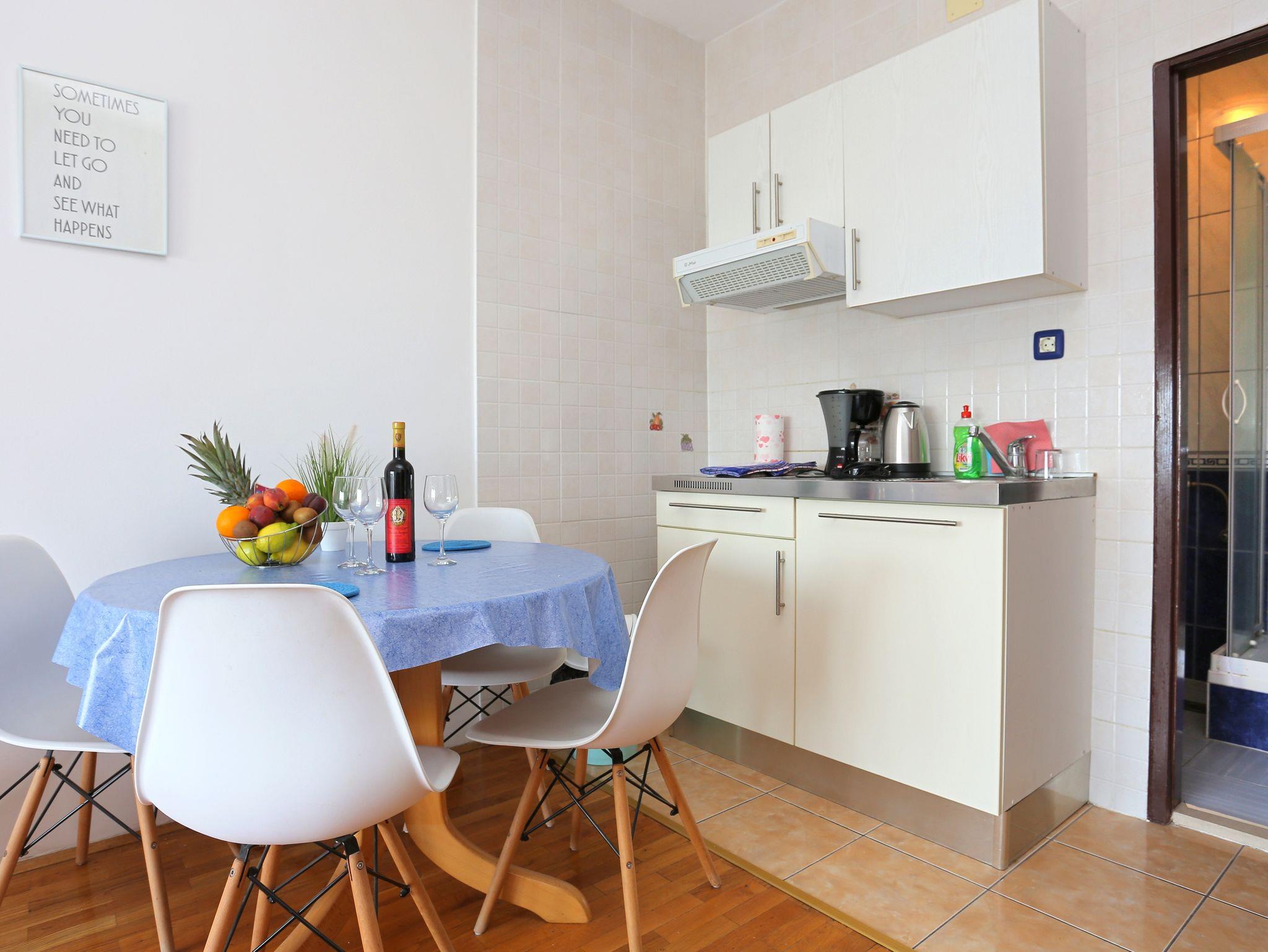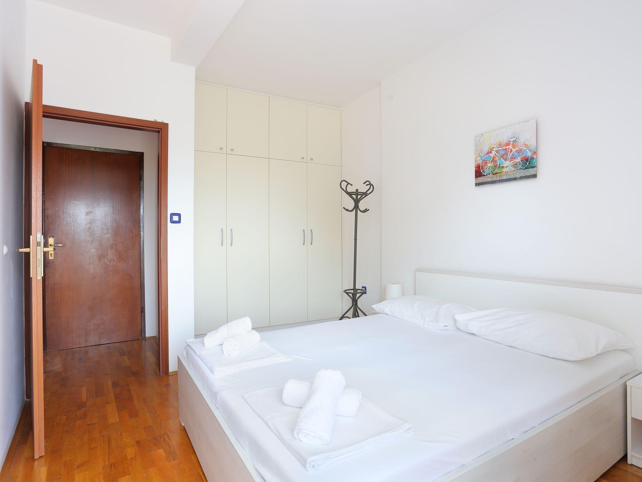 Ferienwohnung bietet Platz für 4 Gäste. Die Betten sind in Schlafzimmern, die es 1 gibt, und in Wohnzimmer, innerhalb einer Gesamtfläche von 30m2, angeordnet. Die Gäste haben einen eigenen Balkon zur Verfügung, auf der sie in warmen Sommernächten genießen können. Das Apartment bietet Meerblick. IM PREIS INBEGRIFFEN: Kurtaxe, Endreinigung, Klimatisierung, Parkplatz, Internet, Bügeleisen, Bügelbrett, Föhn. VERBINDLICHE ZUSÄTZLICHE KOSTEN: Aufzahlung für Kurzaufenthalte (prozentualer Zuschlag pro Nächtigungsanzahl: 30% - 1, 20% - 2, 10% - 3). UNVERBINDLICHE ZUSÄTZLICHE KOSTEN: Frühstück (7,00 €, 50% Nachlass für Kinder zwischen 4 und 12 Jahren, Kinder bis 4 Jahre sind frei.), Halbpension (15,00 €, 50% Nachlass für Kinder zwischen 4 und 12 Jahren, Kinder bis 4 Jahre sind frei.), Vollpension (23,00 €, 50% Nachlass für Kinder zwischen 4 und 12 Jahren, Kinder bis 4 Jahre sind frei.), Zusatzbett (10,00 € pro Nacht). Die Verfügbarkeit zusätzlicher Dienstleistungen in Ihrem reservierten Termin und die Preise derselben (falls nicht aufgeführt) müssen im Voraus überprüft werden. Zusätzliche Dienstleistungen die in der Zahlungsaufforderung nicht aufgeführt sind werden direkt beim Vermieter bezahlt, angenommen der Gast nutzt auch diese. Ermäßigung auf den Grundpreis: Gratistag 14=13 (bei einem Aufenthalt von 14 Tagen oder mehr erhalten Sie einen Gratistag für den Aufenthalt bis 31.12.26).