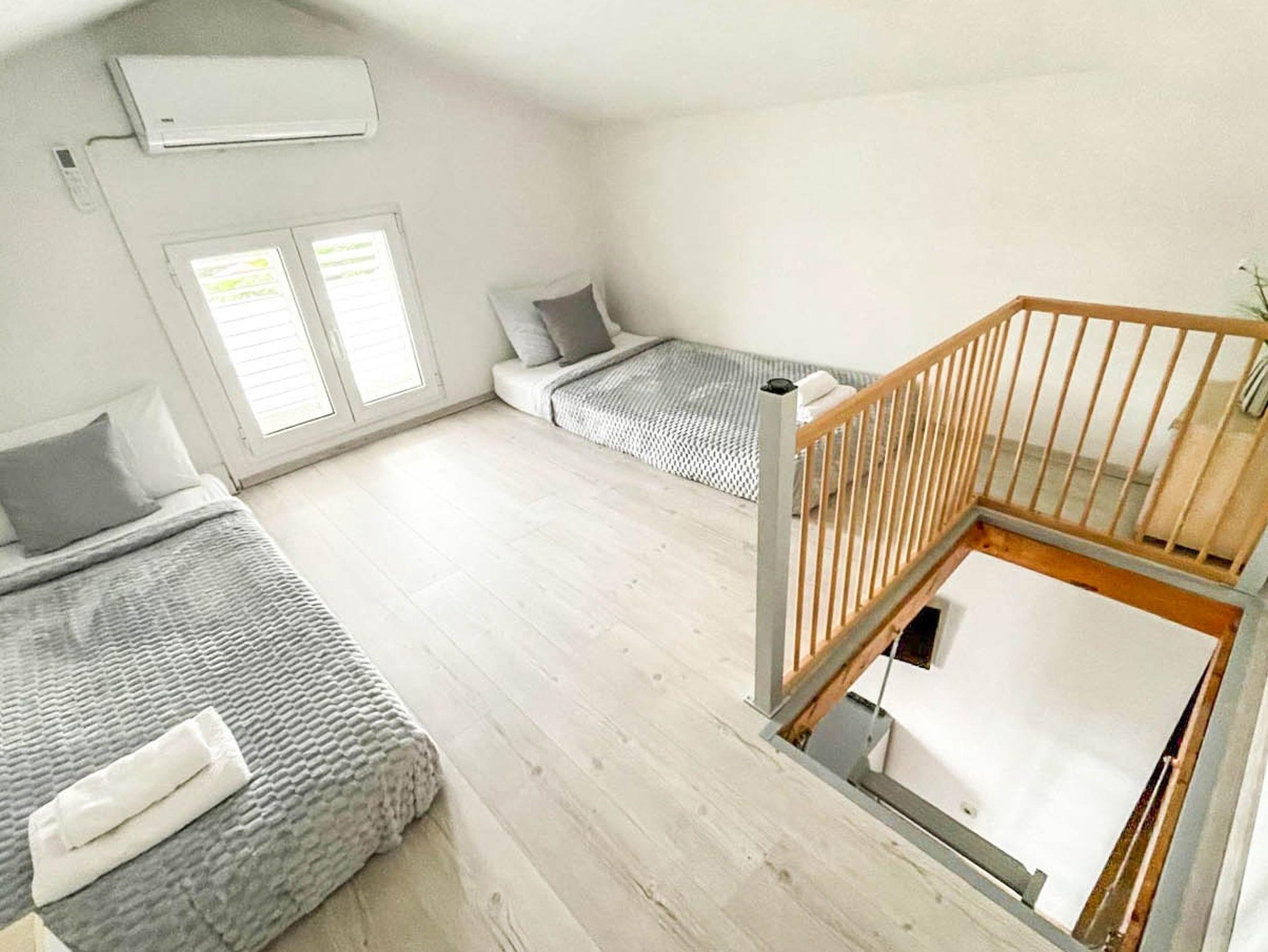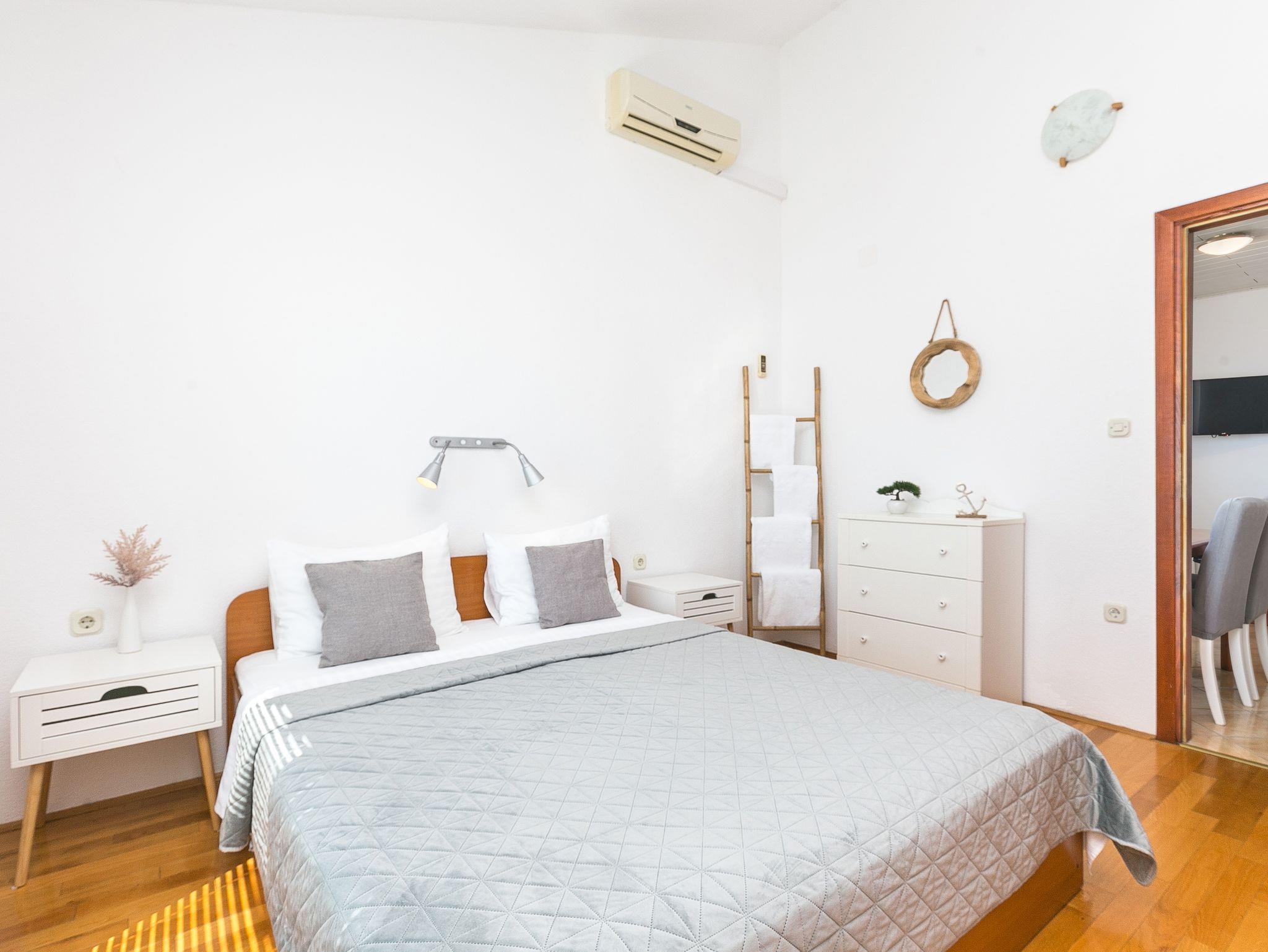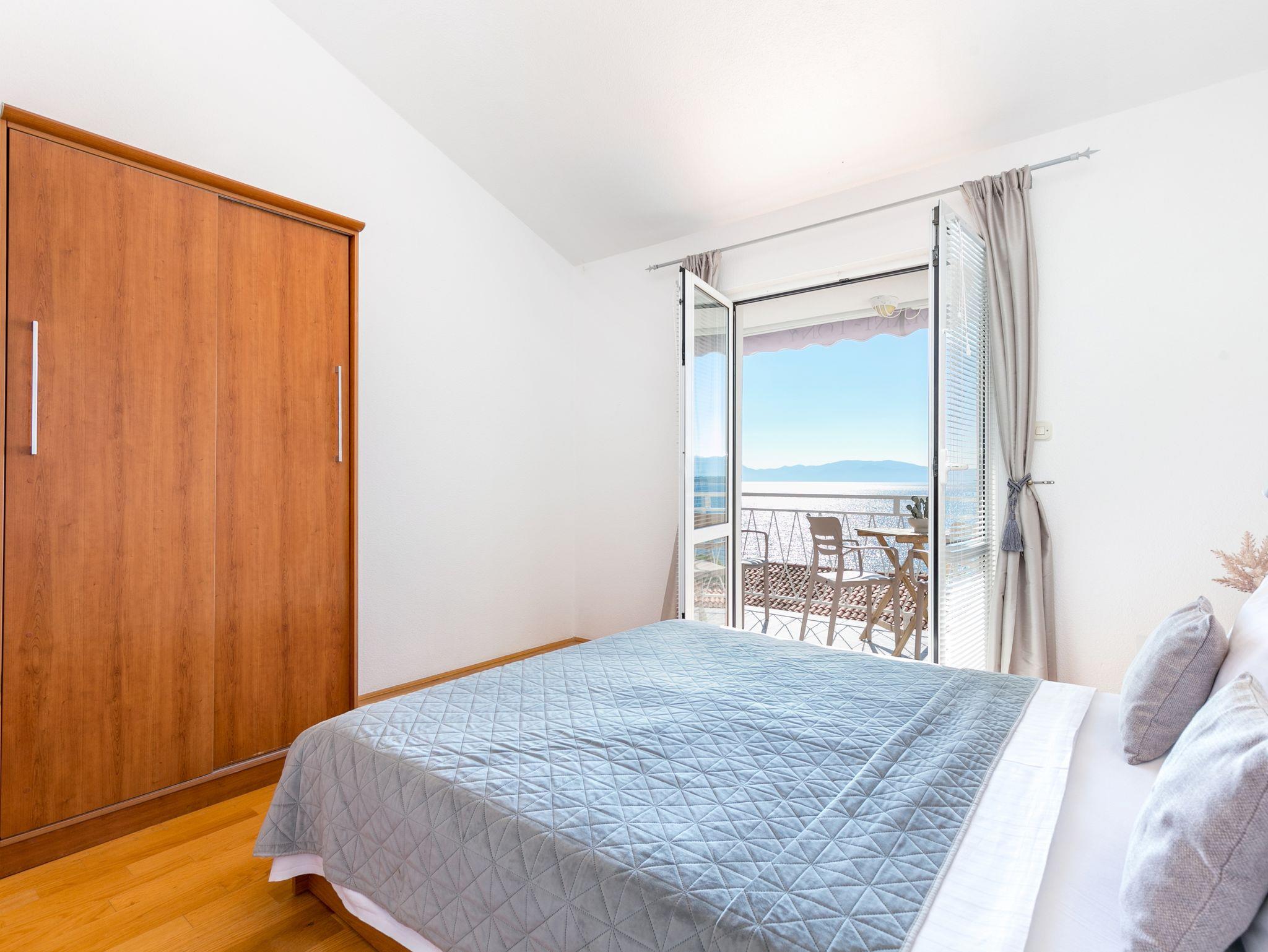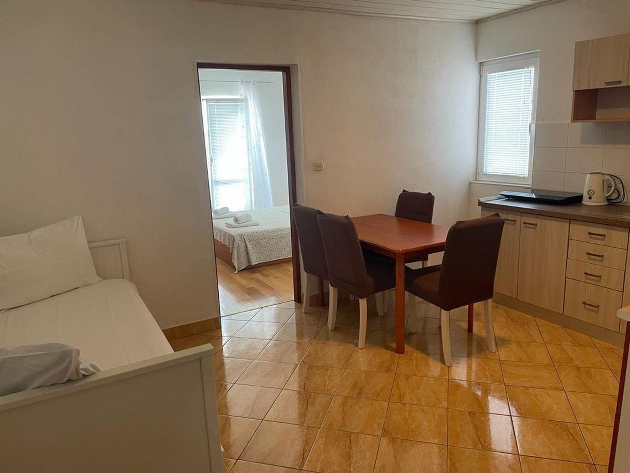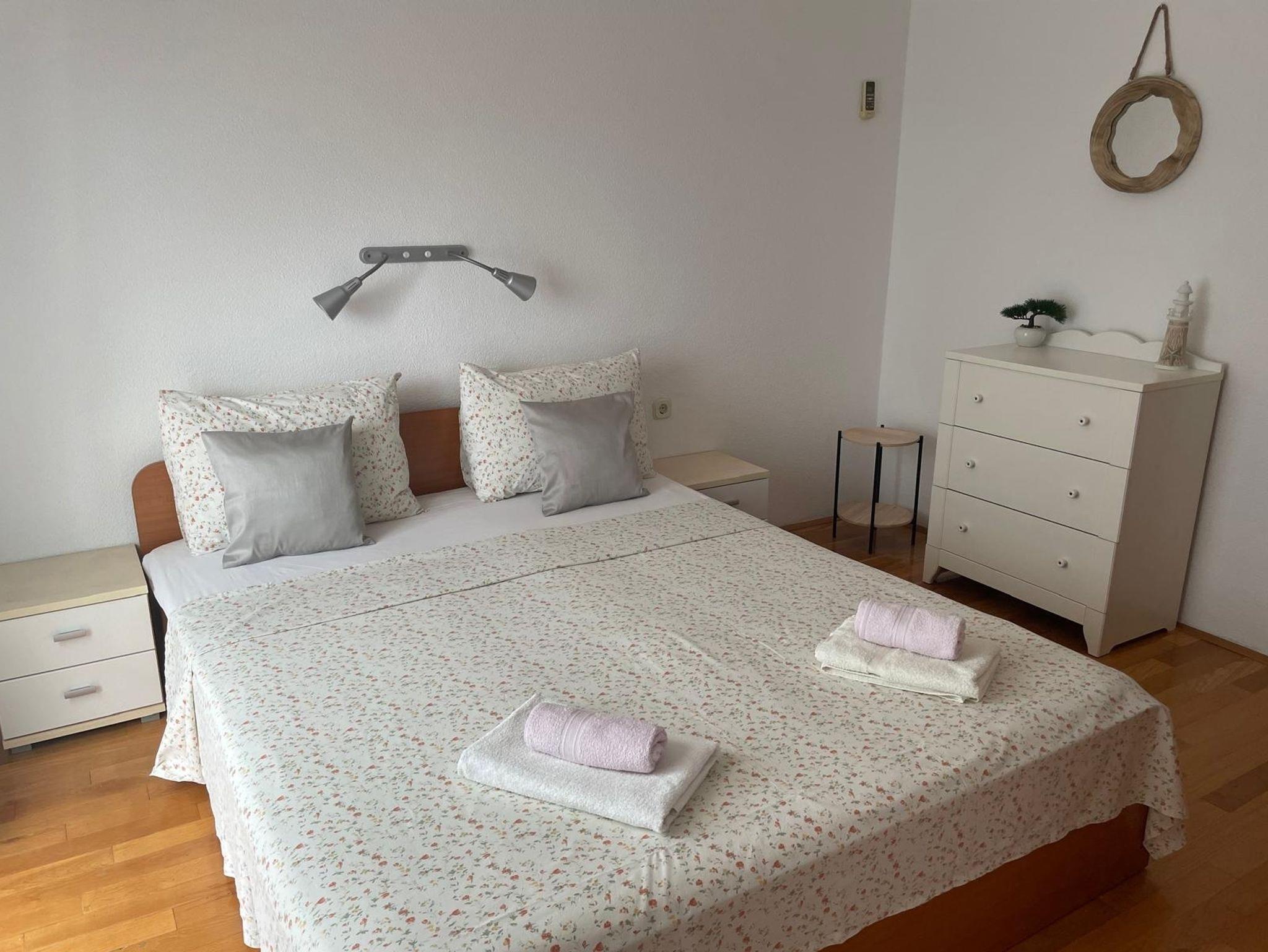 Ferienwohnung bietet Platz für 4 Gäste. Die Betten sind in Schlafzimmern, die es 2 gibt, innerhalb einer Gesamtfläche von 42m2, angeordnet. Die Gäste haben einen eigenen Balkon zur Verfügung, auf der sie in warmen Sommernächten genießen können. Das Apartment bietet Meerblick. Es ist erlaubt, Speisen auf dem Gemeinschafts-Grill vorzubereiten. IM PREIS INBEGRIFFEN: Kurtaxe, Endreinigung, Klimatisierung, Parkplatz, Internet, Wäschewaschen, Kinderbett, Bügeleisen, Bügelbrett. VERBINDLICHE ZUSÄTZLICHE KOSTEN: Aufzahlung für Kurzaufenthalte (prozentualer Zuschlag pro Nächtigungsanzahl: 30% - 1, 20% - 2, 10% - 3). Die Verfügbarkeit zusätzlicher Dienstleistungen in Ihrem reservierten Termin und die Preise derselben (falls nicht aufgeführt) müssen im Voraus überprüft werden. Zusätzliche Dienstleistungen die in der Zahlungsaufforderung nicht aufgeführt sind werden direkt beim Vermieter bezahlt, angenommen der Gast nutzt auch diese. Ermäßigung auf den Grundpreis: Gratistag 14=13 (bei einem Aufenthalt von 14 Tagen oder mehr erhalten Sie einen Gratistag für den Aufenthalt bis 31.12.26).