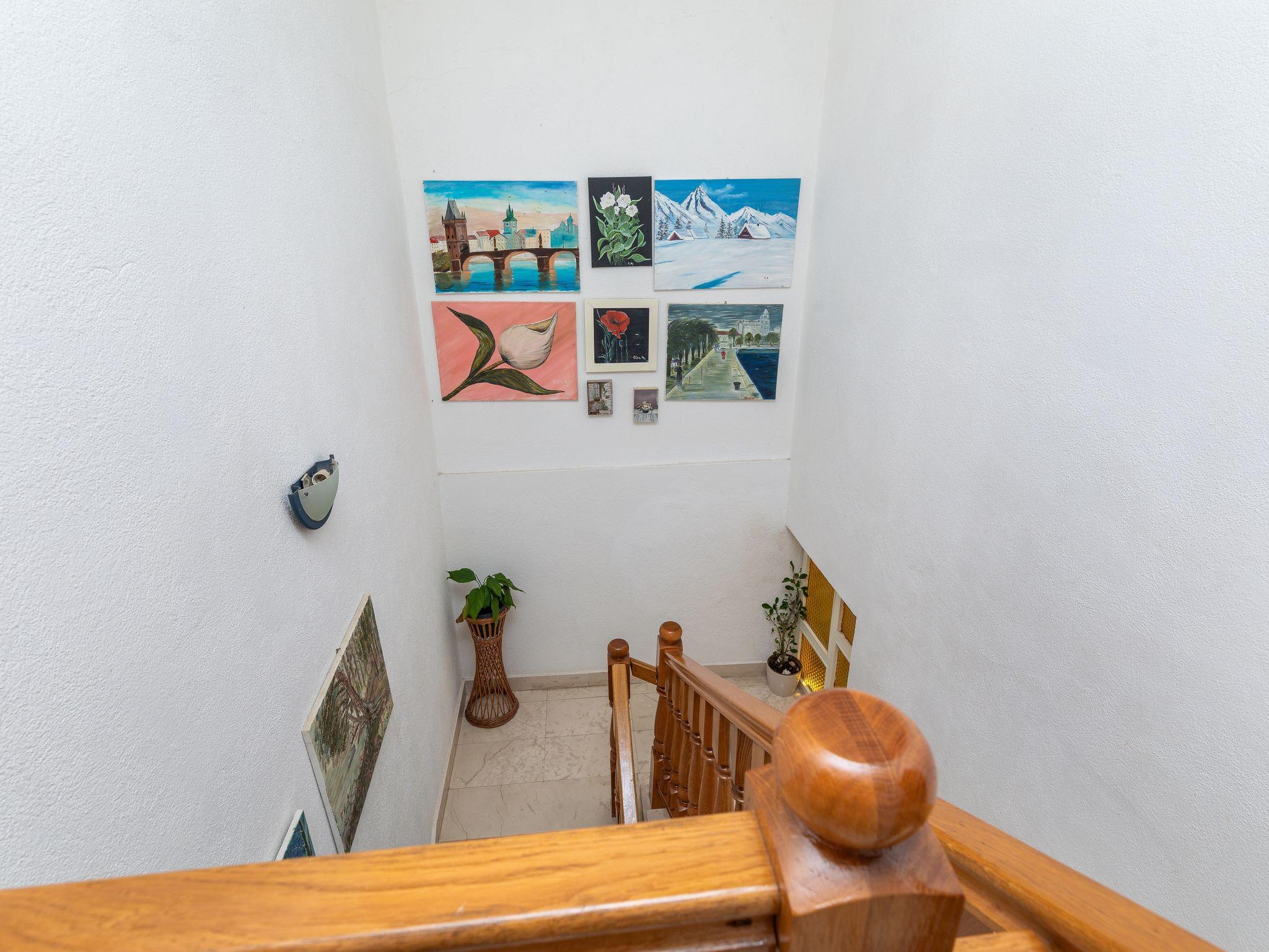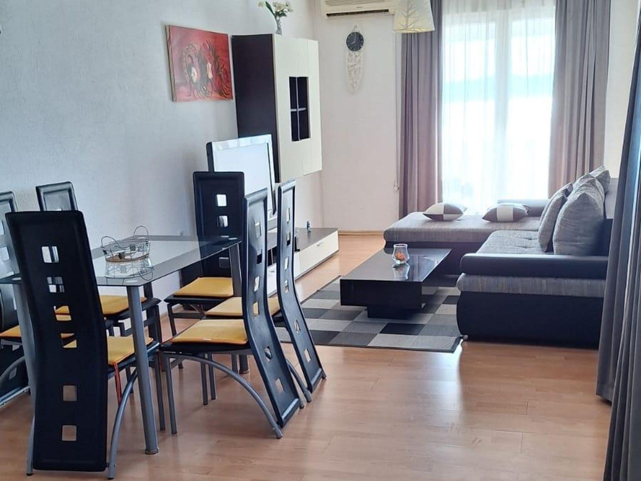 Ferienwohnung bietet Platz für 7 Gäste. Die Betten sind in Schlafzimmern, die es 3 gibt, und in Wohnzimmer, innerhalb einer Gesamtfläche von 70m2, angeordnet. Die Gäste haben einen eigenen Balkon zur Verfügung, auf der sie in warmen Sommernächten genießen können. Das Apartment bietet Meerblick. Es ist erlaubt, Speisen auf dem Gemeinschafts-Grill vorzubereiten. IM PREIS INBEGRIFFEN: Kurtaxe, Endreinigung, Klimatisierung, Parkplatz, Internet, Bügeleisen, Bügelbrett, Föhn. VERBINDLICHE ZUSÄTZLICHE KOSTEN: Aufzahlung für Kurzaufenthalte (prozentualer Zuschlag pro Nächtigungsanzahl: 30% - 1, 20% - 2, 10% - 3). Die Verfügbarkeit zusätzlicher Dienstleistungen in Ihrem reservierten Termin und die Preise derselben (falls nicht aufgeführt) müssen im Voraus überprüft werden. Zusätzliche Dienstleistungen die in der Zahlungsaufforderung nicht aufgeführt sind werden direkt beim Vermieter bezahlt, angenommen der Gast nutzt auch diese. Ermäßigung auf den Grundpreis: Gratistag 14=13 (bei einem Aufenthalt von 14 Tagen oder mehr erhalten Sie einen Gratistag für den Aufenthalt bis 31.12.26).