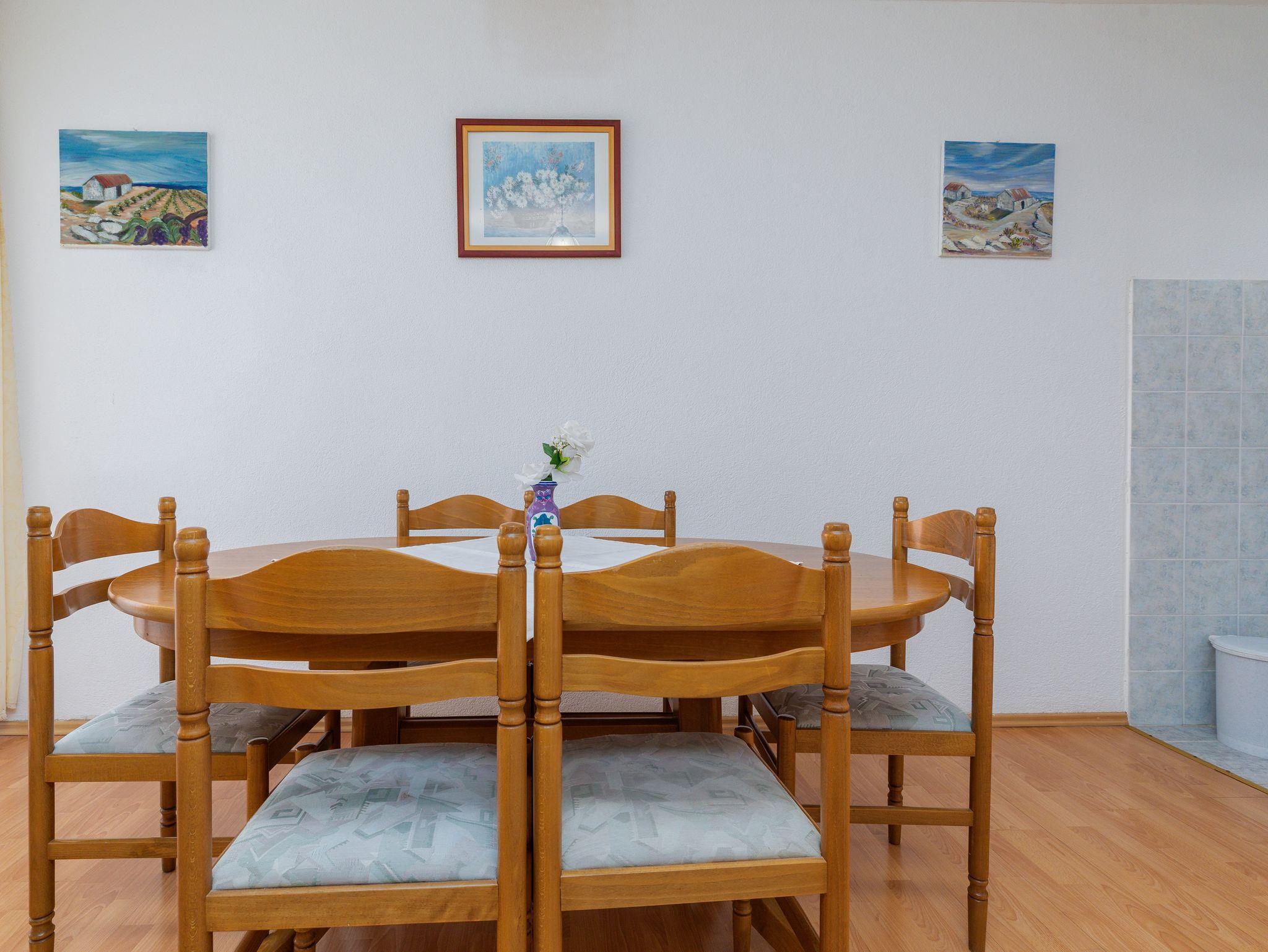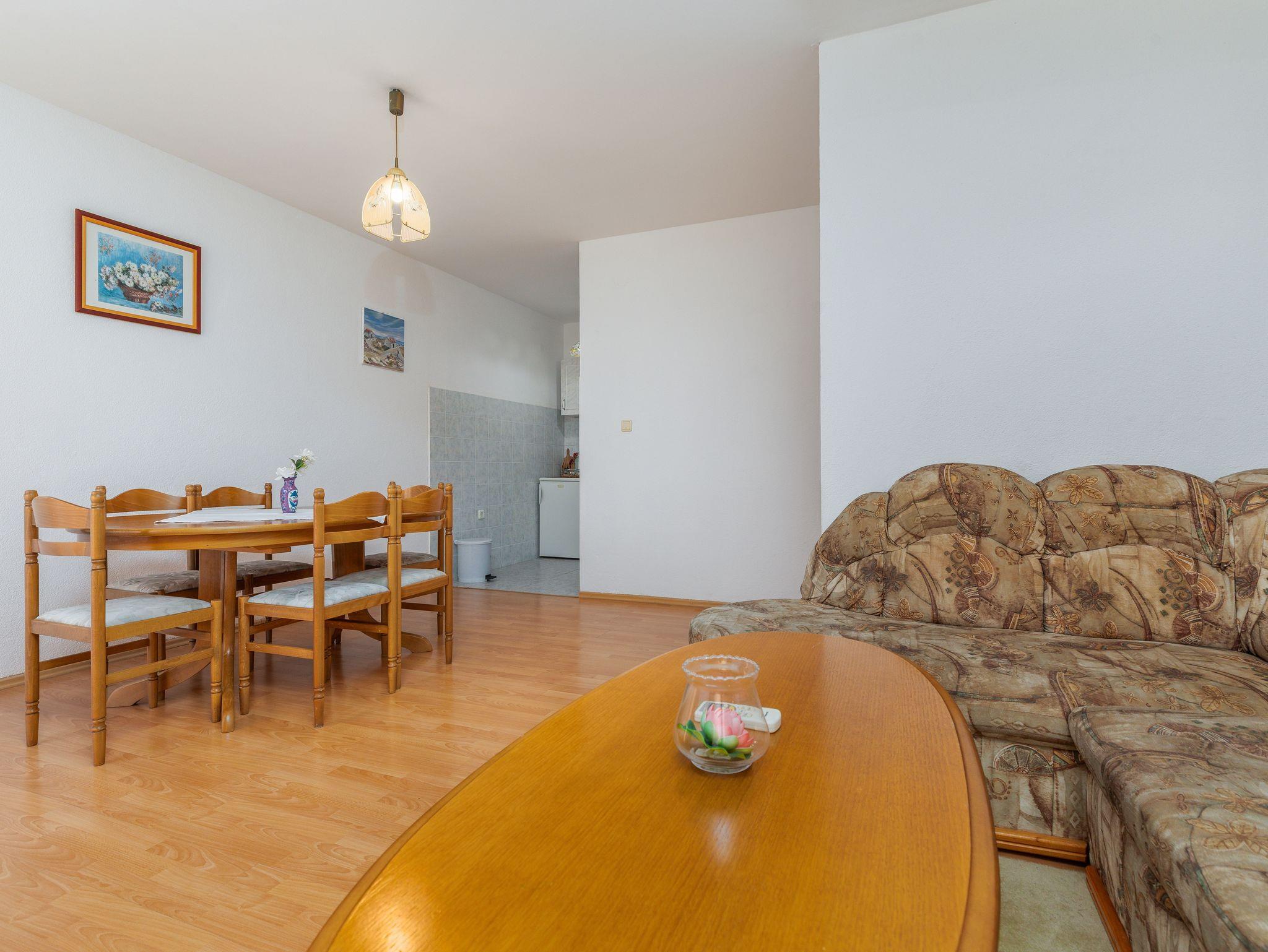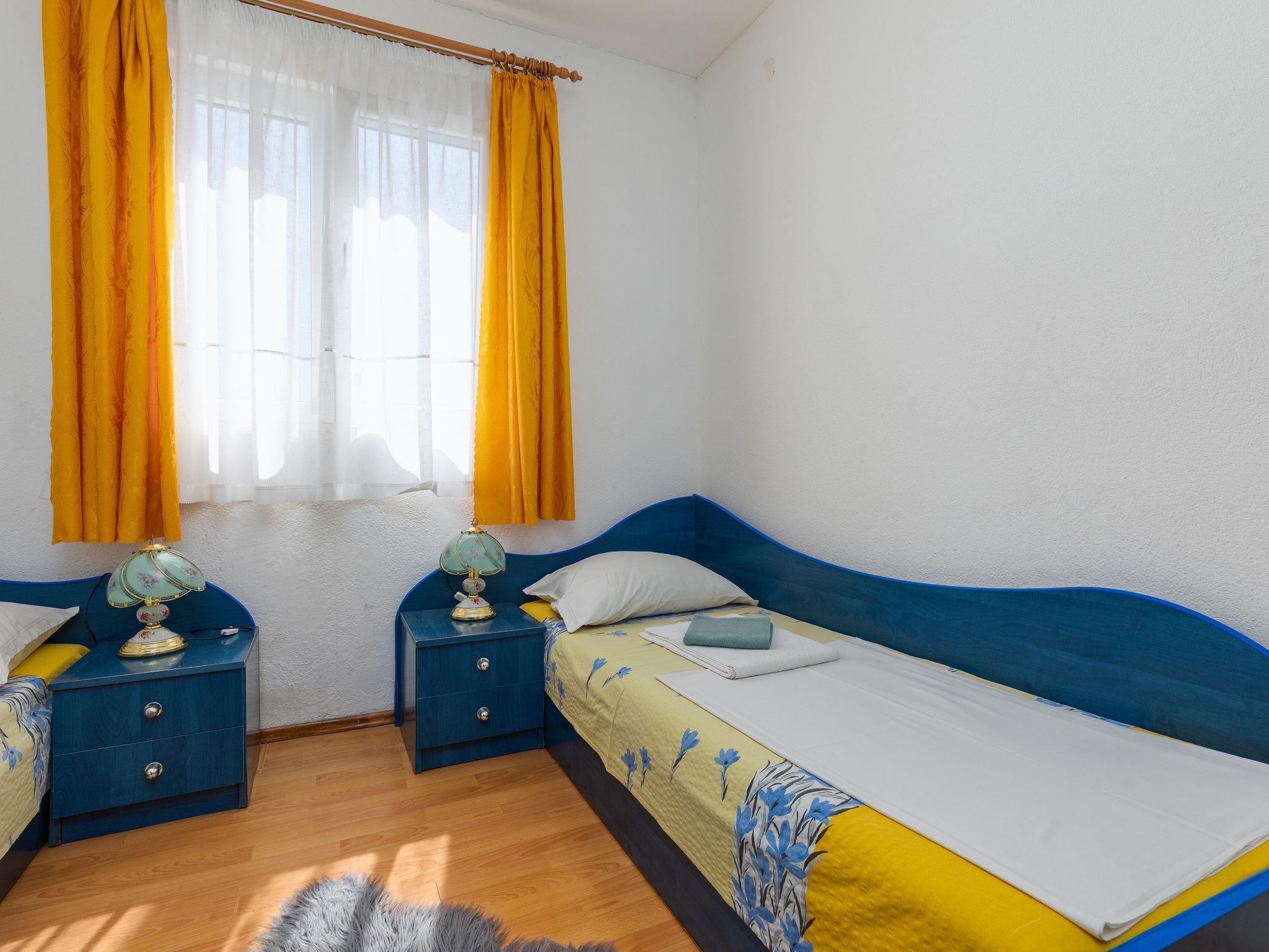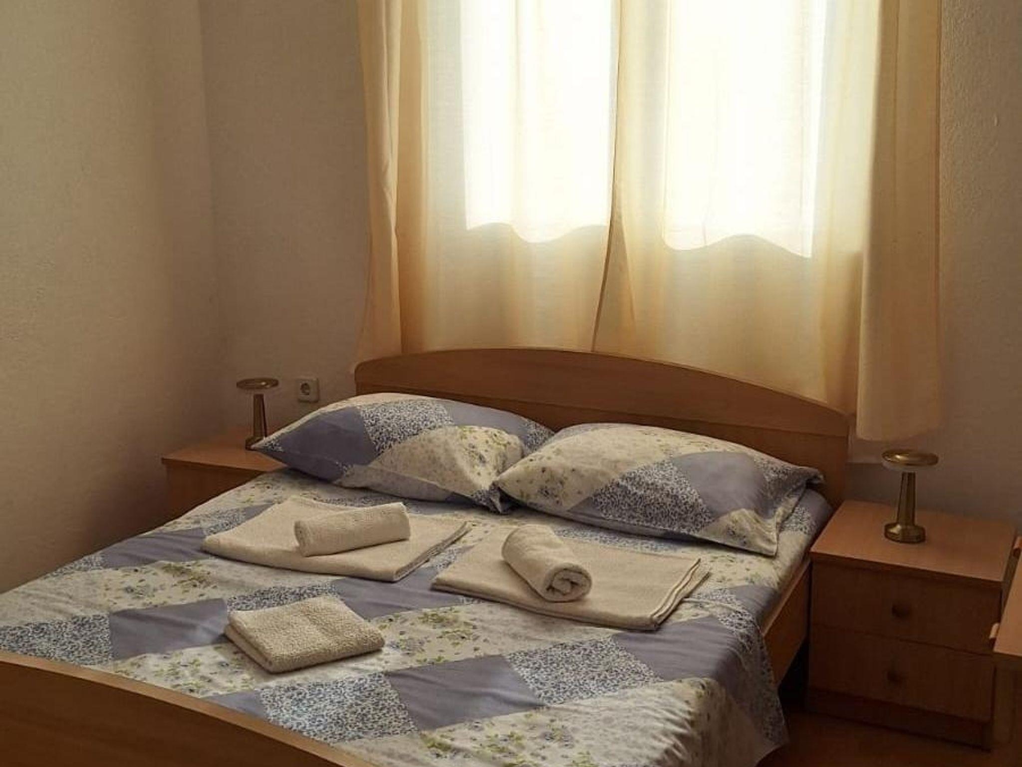 Ferienwohnung bietet Platz für 5 Gäste. Die Betten sind in Schlafzimmern, die es 2 gibt, und in Wohnzimmer, innerhalb einer Gesamtfläche von 62m2, angeordnet. Die Gäste haben einen eigenen Balkon zur Verfügung, auf der sie in warmen Sommernächten genießen können. Das Apartment bietet Meerblick. Es ist erlaubt, Speisen auf dem Gemeinschafts-Grill vorzubereiten. IM PREIS INBEGRIFFEN: Kurtaxe, Endreinigung, Klimatisierung, Parkplatz, Internet, Bügeleisen, Bügelbrett, Föhn. VERBINDLICHE ZUSÄTZLICHE KOSTEN: Aufzahlung für Kurzaufenthalte (prozentualer Zuschlag pro Nächtigungsanzahl: 30% - 1, 20% - 2, 10% - 3). Die Verfügbarkeit zusätzlicher Dienstleistungen in Ihrem reservierten Termin und die Preise derselben (falls nicht aufgeführt) müssen im Voraus überprüft werden. Zusätzliche Dienstleistungen die in der Zahlungsaufforderung nicht aufgeführt sind werden direkt beim Vermieter bezahlt, angenommen der Gast nutzt auch diese. Ermäßigung auf den Grundpreis: Gratistag 14=13 (bei einem Aufenthalt von 14 Tagen oder mehr erhalten Sie einen Gratistag für den Aufenthalt bis 31.12.26).
