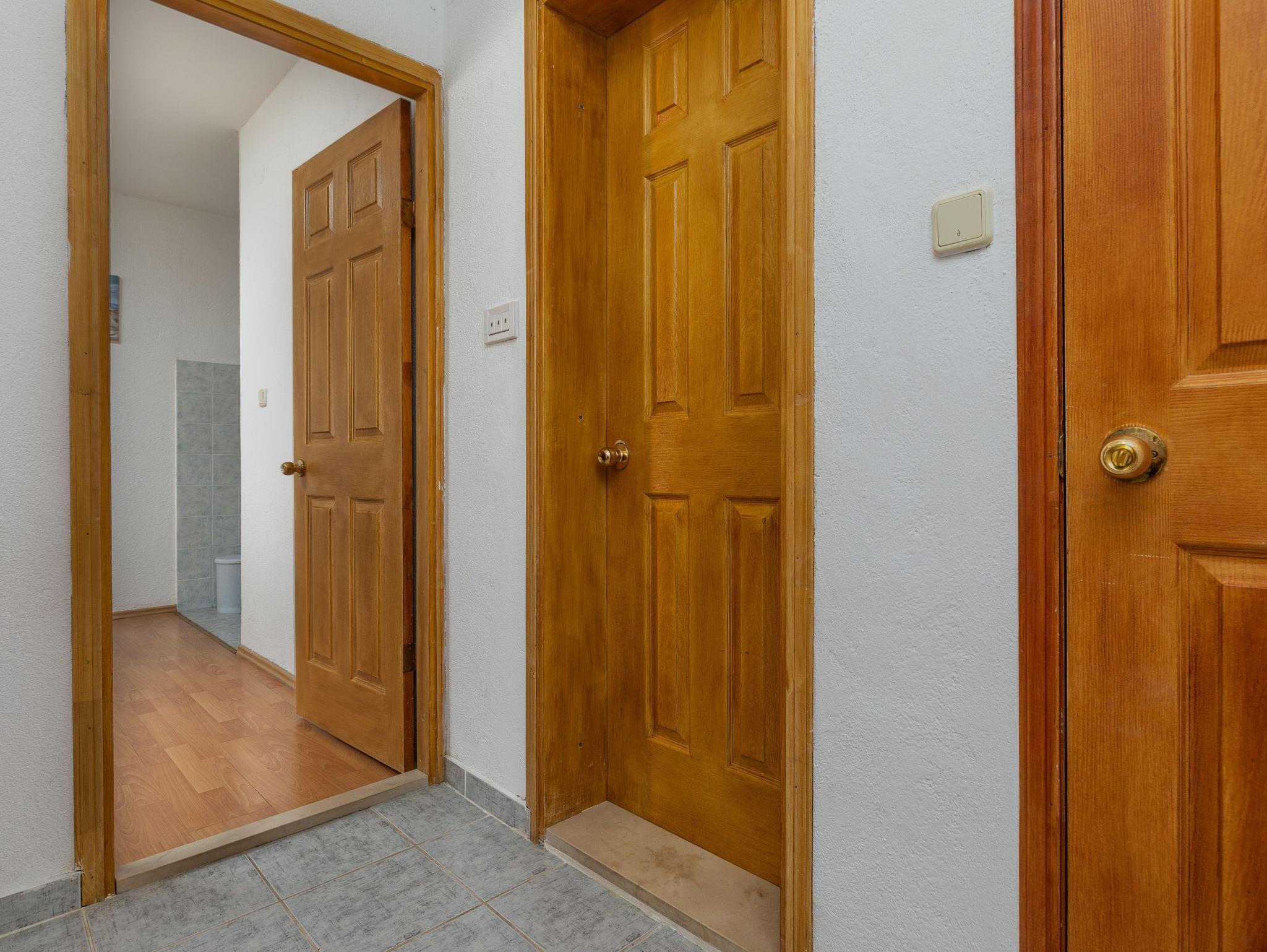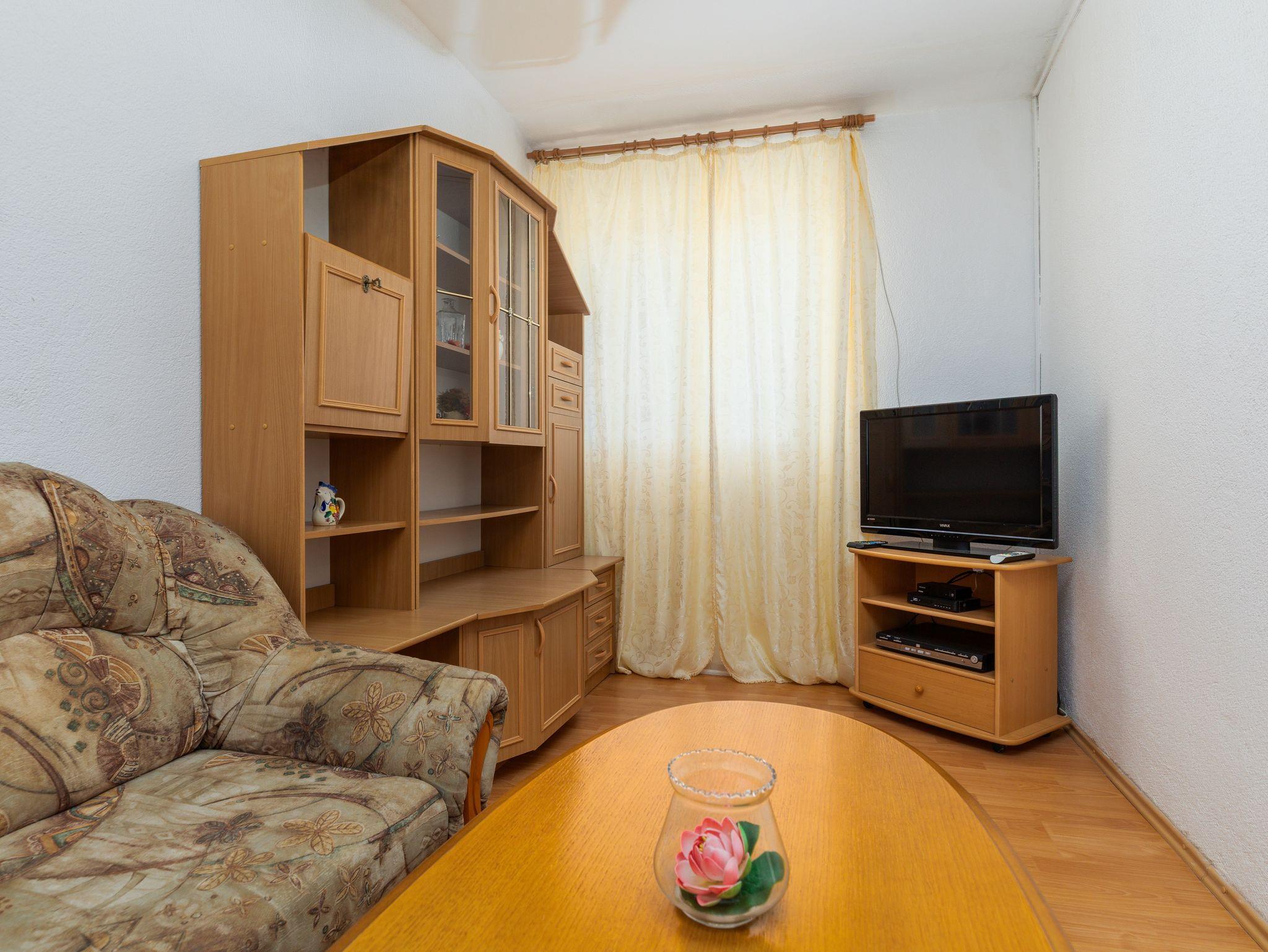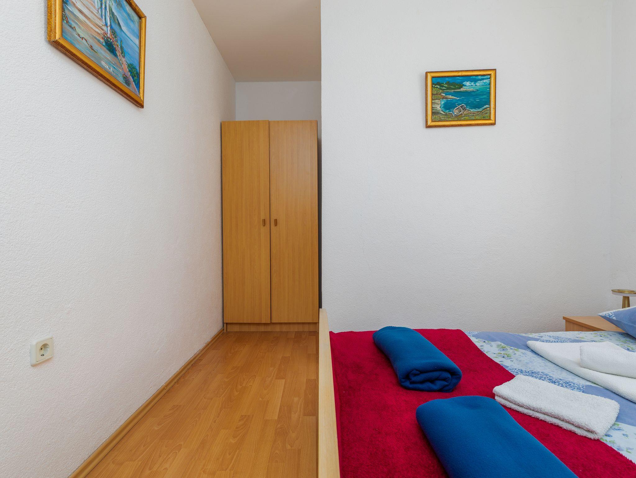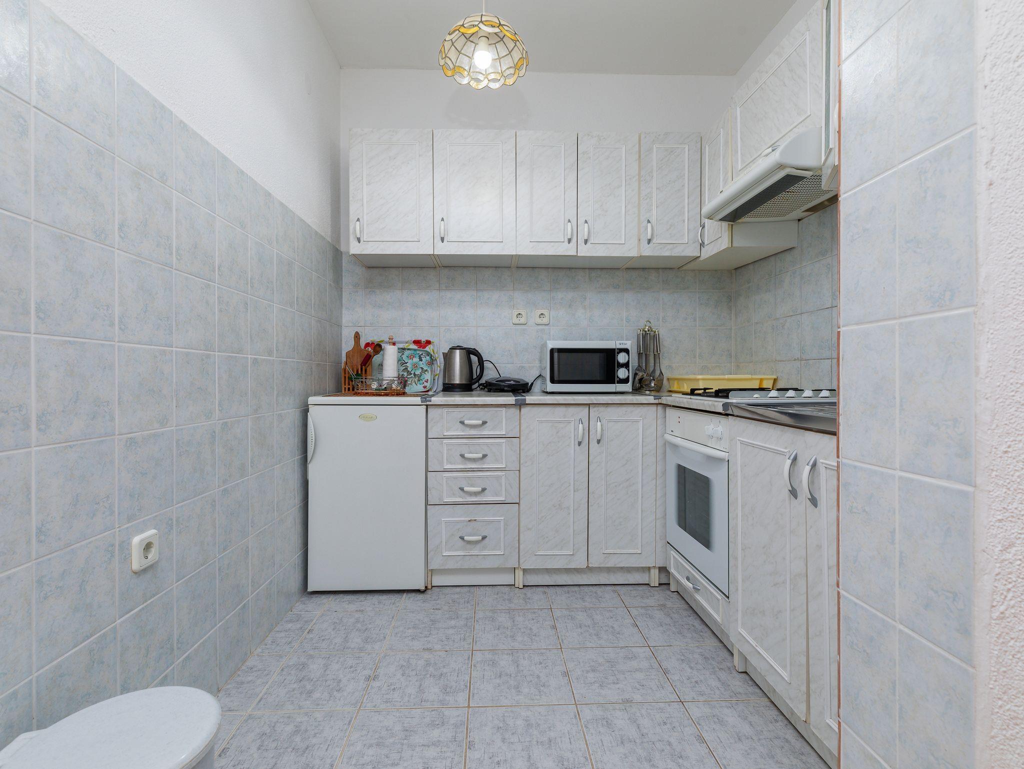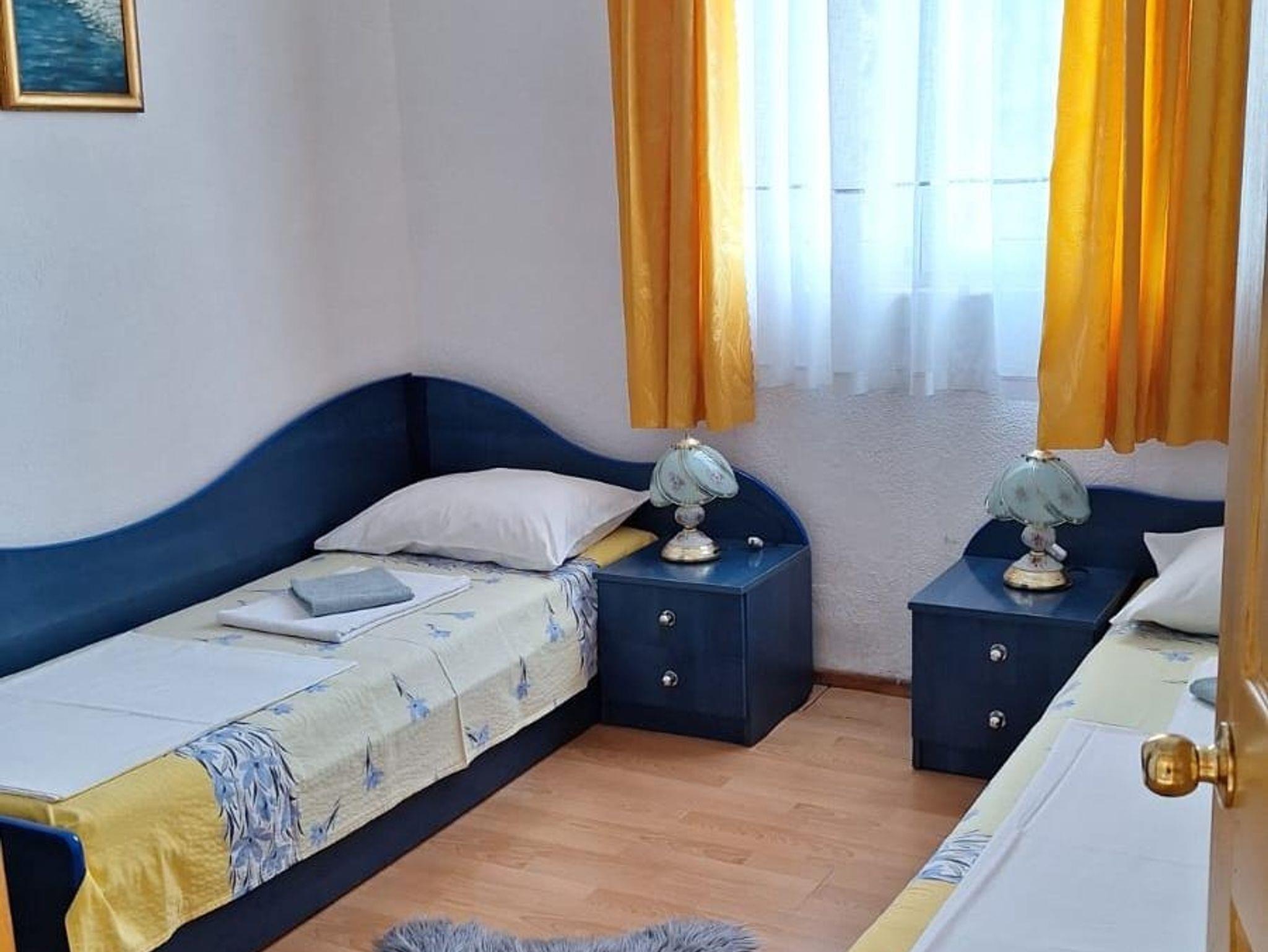 Ferienwohnung bietet Platz für 5 Gäste. Die Betten sind in Schlafzimmern, die es 2 gibt, und in Wohnzimmer, innerhalb einer Gesamtfläche von 62m2, angeordnet. Die Gäste haben einen eigenen Balkon zur Verfügung, auf der sie in warmen Sommernächten genießen können. Das Apartment bietet Meerblick. Es ist erlaubt, Speisen auf dem Gemeinschafts-Grill vorzubereiten. IM PREIS INBEGRIFFEN: Kurtaxe, Endreinigung, Klimatisierung, Parkplatz, Internet, Bügeleisen, Bügelbrett, Föhn. VERBINDLICHE ZUSÄTZLICHE KOSTEN: Aufzahlung für Kurzaufenthalte (prozentualer Zuschlag pro Nächtigungsanzahl: 30% - 1, 20% - 2, 10% - 3). Die Verfügbarkeit zusätzlicher Dienstleistungen in Ihrem reservierten Termin und die Preise derselben (falls nicht aufgeführt) müssen im Voraus überprüft werden. Zusätzliche Dienstleistungen die in der Zahlungsaufforderung nicht aufgeführt sind werden direkt beim Vermieter bezahlt, angenommen der Gast nutzt auch diese. Ermäßigung auf den Grundpreis: Gratistag 14=13 (bei einem Aufenthalt von 14 Tagen oder mehr erhalten Sie einen Gratistag für den Aufenthalt bis 31.12.26).