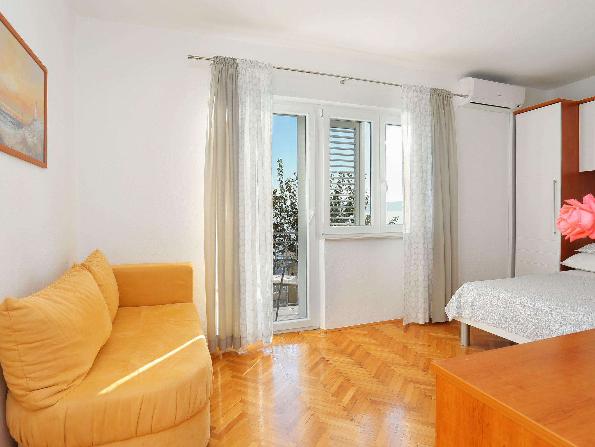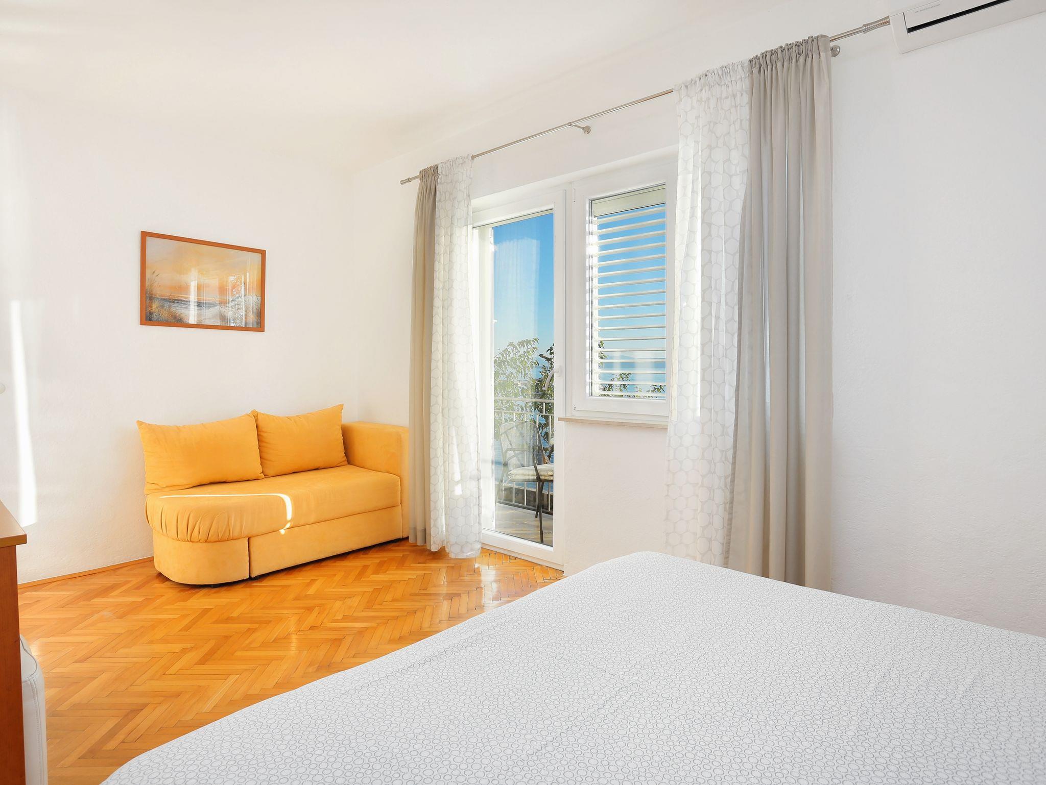 Ferienwohnung bietet Platz für 6 Gäste. Die Betten sind in Schlafzimmern, die es 2 gibt, und in Wohnzimmer, innerhalb einer Gesamtfläche von 55m2, angeordnet. Die Gäste haben einen eigenen Balkon zur Verfügung, auf der sie in warmen Sommernächten genießen können. Das Apartment bietet Meerblick. IM PREIS INBEGRIFFEN: Kurtaxe, Endreinigung, Klimatisierung, Parkplatz, Internet, Kinderbett, Bügeleisen, Föhn. Die Verfügbarkeit zusätzlicher Dienstleistungen in Ihrem reservierten Termin und die Preise derselben (falls nicht aufgeführt) müssen im Voraus überprüft werden. Zusätzliche Dienstleistungen die in der Zahlungsaufforderung nicht aufgeführt sind werden direkt beim Vermieter bezahlt, angenommen der Gast nutzt auch diese.