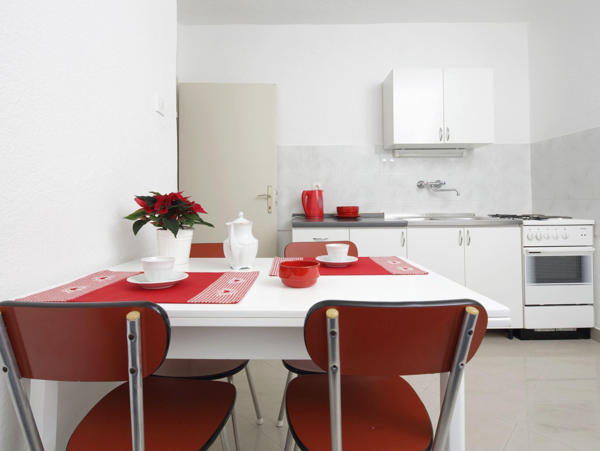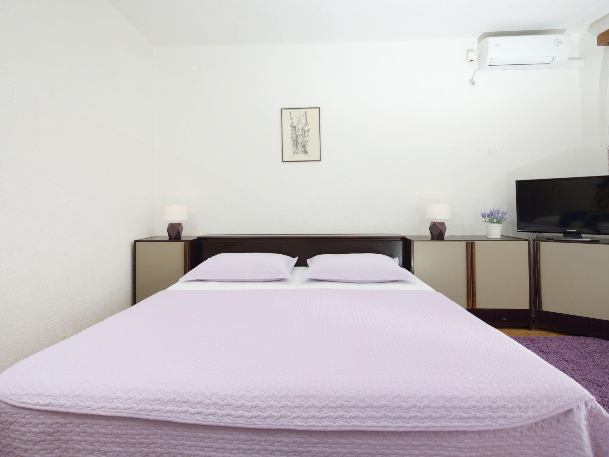 Ferienwohnung bietet Platz für 4 Gäste. Die Betten sind in Schlafzimmern, die es 1 gibt, und in Esszimmer, innerhalb einer Gesamtfläche von 32m2, angeordnet. Die Gäste haben einen eigenen Balkon zur Verfügung, auf der sie in warmen Sommernächten genießen können. Das Apartment bietet Meerblick. IM PREIS INBEGRIFFEN: Kurtaxe, Endreinigung, Klimatisierung, Parkplatz, Internet. VERBINDLICHE ZUSÄTZLICHE KOSTEN: Aufzahlung für Kurzaufenthalte (prozentualer Zuschlag pro Nächtigungsanzahl: 30% - 1, 20% - 2, 10% - 3). Die Verfügbarkeit zusätzlicher Dienstleistungen in Ihrem reservierten Termin und die Preise derselben (falls nicht aufgeführt) müssen im Voraus überprüft werden. Zusätzliche Dienstleistungen die in der Zahlungsaufforderung nicht aufgeführt sind werden direkt beim Vermieter bezahlt, angenommen der Gast nutzt auch diese.