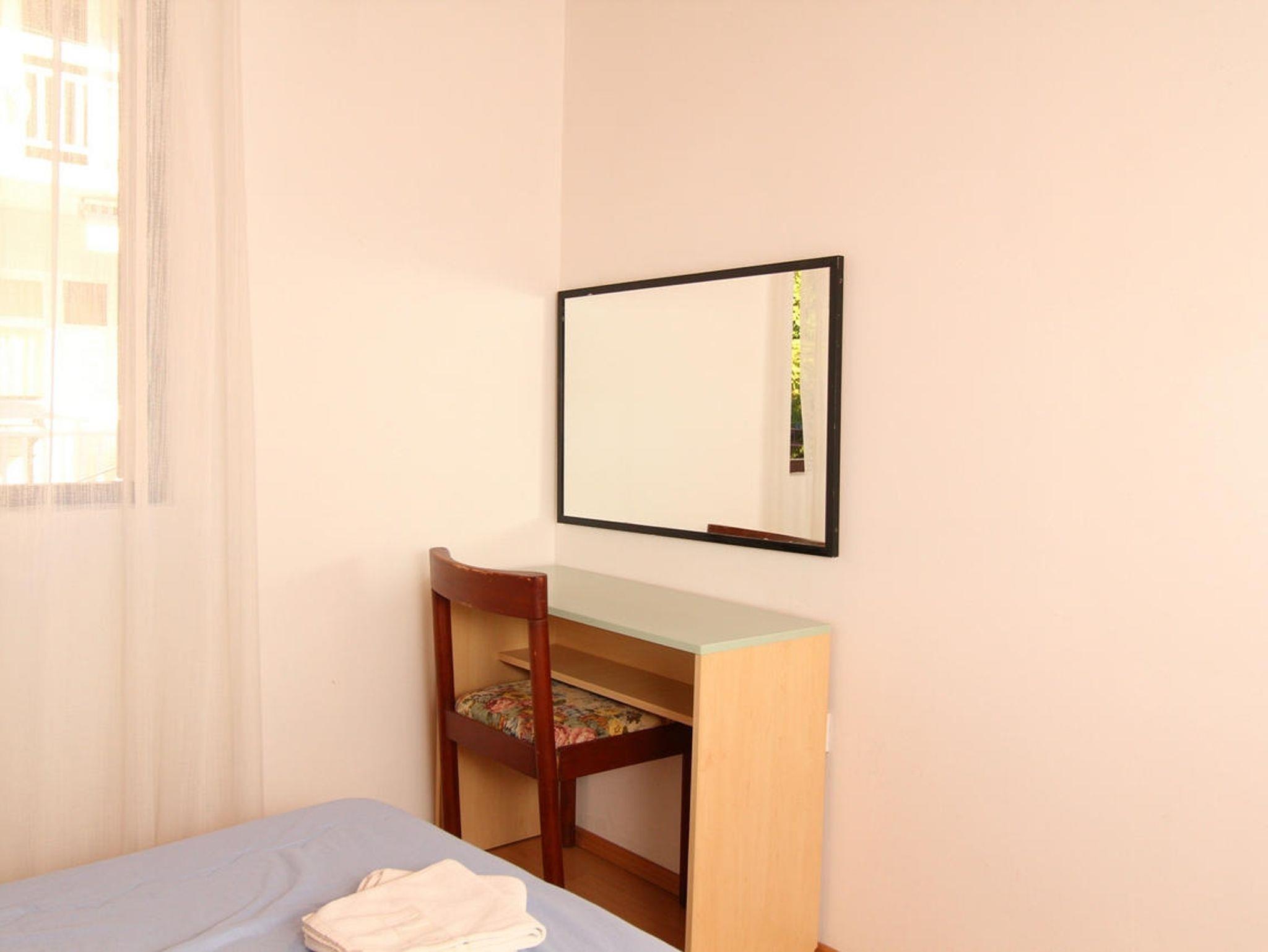 Ferienwohnung bietet Platz für 4 Gäste. Die Betten sind in Schlafzimmern, die es 1 gibt, und in Wohnzimmer, innerhalb einer Gesamtfläche von 29m2, angeordnet. Die Gäste haben eine eigene Terrasse zur Verfügung, auf der sie in warmen Sommernächten genießen können. Das Apartment bietet Meerblick. Es ist erlaubt, Speisen auf dem Gemeinschafts-Grill vorzubereiten. IM PREIS INBEGRIFFEN: Kurtaxe, Endreinigung, Klimatisierung, Parkplatz, Internet, Kinderbett, Bügeleisen, Bügelbrett, Föhn. UNVERBINDLICHE ZUSÄTZLICHE KOSTEN: Zusatzbett (10,00 € pro Nacht). Die Verfügbarkeit zusätzlicher Dienstleistungen in Ihrem reservierten Termin und die Preise derselben (falls nicht aufgeführt) müssen im Voraus überprüft werden. Zusätzliche Dienstleistungen die in der Zahlungsaufforderung nicht aufgeführt sind werden direkt beim Vermieter bezahlt, angenommen der Gast nutzt auch diese.