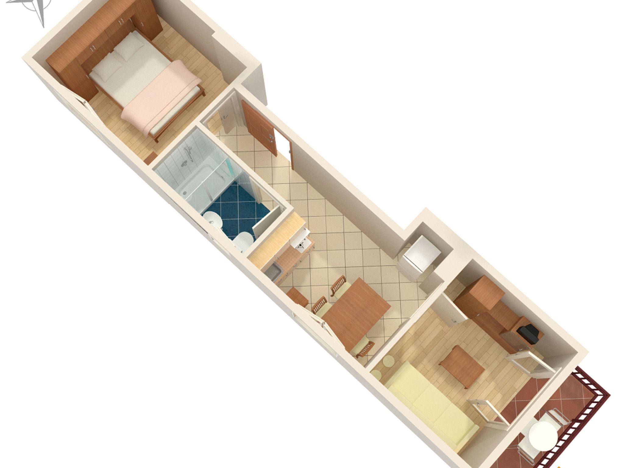 Ferienwohnung bietet Platz für 3 Gäste. Die Betten sind in Schlafzimmern, die es 1 gibt, und in Wohnzimmer, innerhalb einer Gesamtfläche von 34m2, angeordnet. Die Gäste haben einen eigenen Balkon zur Verfügung, auf der sie in warmen Sommernächten genießen können. Das Apartment bietet Meerblick. Es ist erlaubt, Speisen auf dem Gemeinschafts-Grill vorzubereiten. IM PREIS INBEGRIFFEN: Kurtaxe, Endreinigung, Klimatisierung, Parkplatz, Internet. VERBINDLICHE ZUSÄTZLICHE KOSTEN: Aufzahlung für Kurzaufenthalte (prozentualer Zuschlag pro Nächtigungsanzahl: 30% - 1, 20% - 2, 10% - 3). UNVERBINDLICHE ZUSÄTZLICHE KOSTEN: Wäschewaschen (5,00 € Waschen). Die Verfügbarkeit zusätzlicher Dienstleistungen in Ihrem reservierten Termin und die Preise derselben (falls nicht aufgeführt) müssen im Voraus überprüft werden. Zusätzliche Dienstleistungen die in der Zahlungsaufforderung nicht aufgeführt sind werden direkt beim Vermieter bezahlt, angenommen der Gast nutzt auch diese. Ermäßigung auf den Grundpreis: Gratistag 14=13 (bei einem Aufenthalt von 14 Tagen oder mehr erhalten Sie einen Gratistag für den Aufenthalt bis 31.12.26).