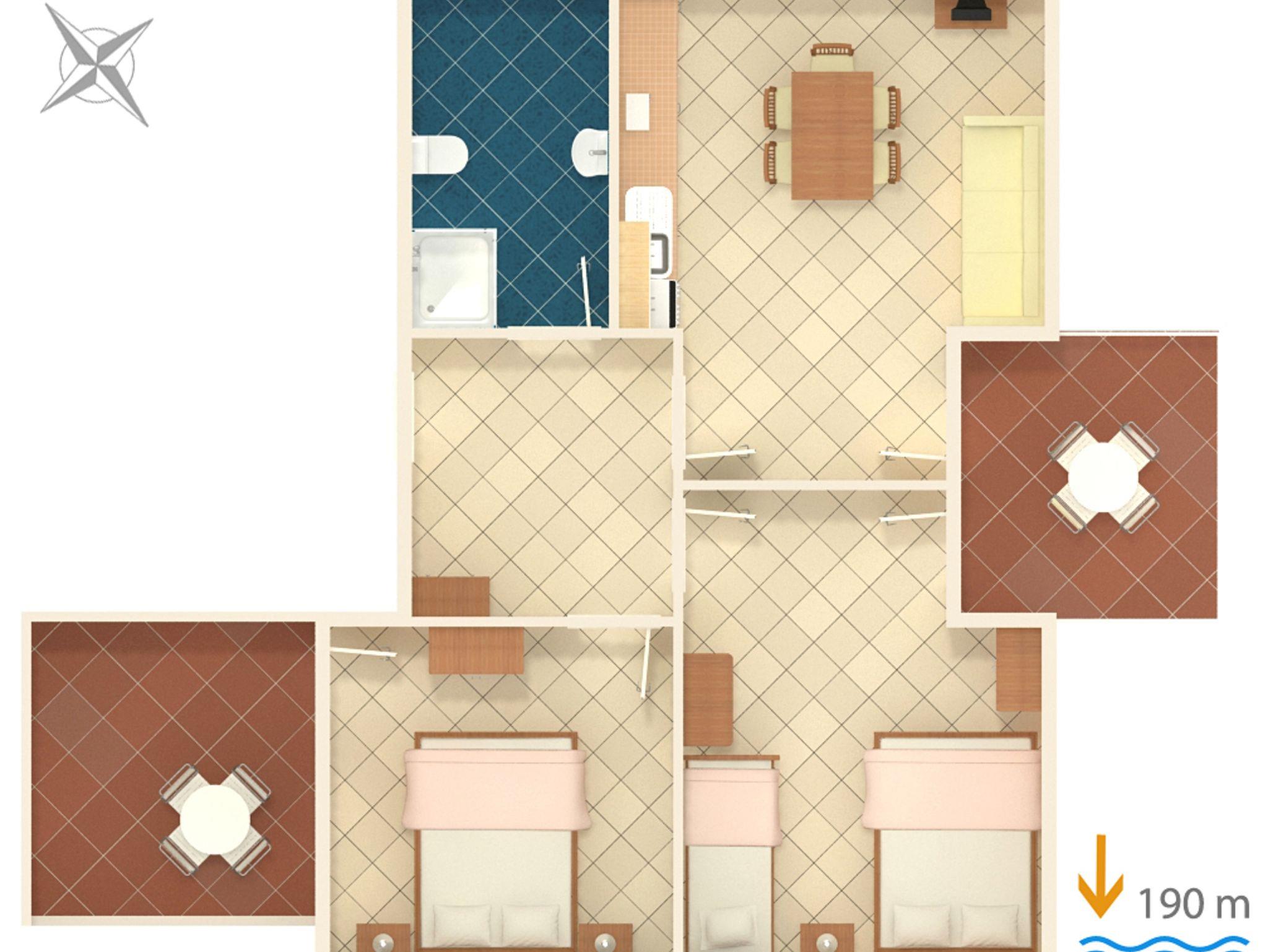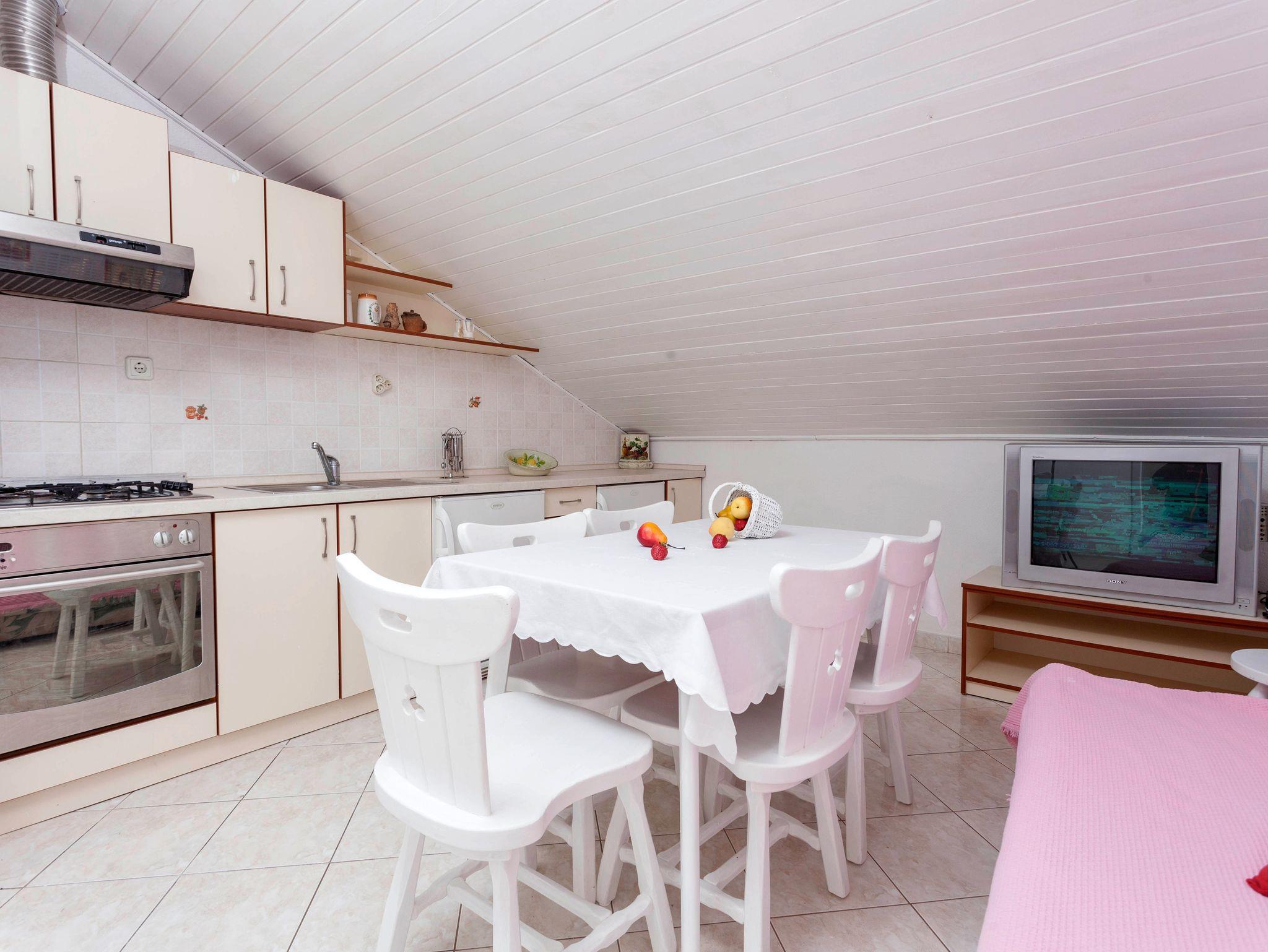 Ferienwohnung bietet Platz für 5 Gäste. Die Betten sind in Schlafzimmern, die es 2 gibt, innerhalb einer Gesamtfläche von 54m2, angeordnet. Die Gäste haben eine eigene Terrasse zur Verfügung, auf der sie in warmen Sommernächten genießen können. Das Apartment bietet Meerblick. IM PREIS INBEGRIFFEN: Kurtaxe, Endreinigung, Klimatisierung, Parkplatz, Internet, Wäschewaschen, Kinderbett, Bügeleisen, Bügelbrett, Föhn. VERBINDLICHE ZUSÄTZLICHE KOSTEN: Aufzahlung für Kurzaufenthalte (prozentualer Zuschlag pro Nächtigungsanzahl: 30% - 1, 20% - 2, 10% - 3). Die Verfügbarkeit zusätzlicher Dienstleistungen in Ihrem reservierten Termin und die Preise derselben (falls nicht aufgeführt) müssen im Voraus überprüft werden. Zusätzliche Dienstleistungen die in der Zahlungsaufforderung nicht aufgeführt sind werden direkt beim Vermieter bezahlt, angenommen der Gast nutzt auch diese.