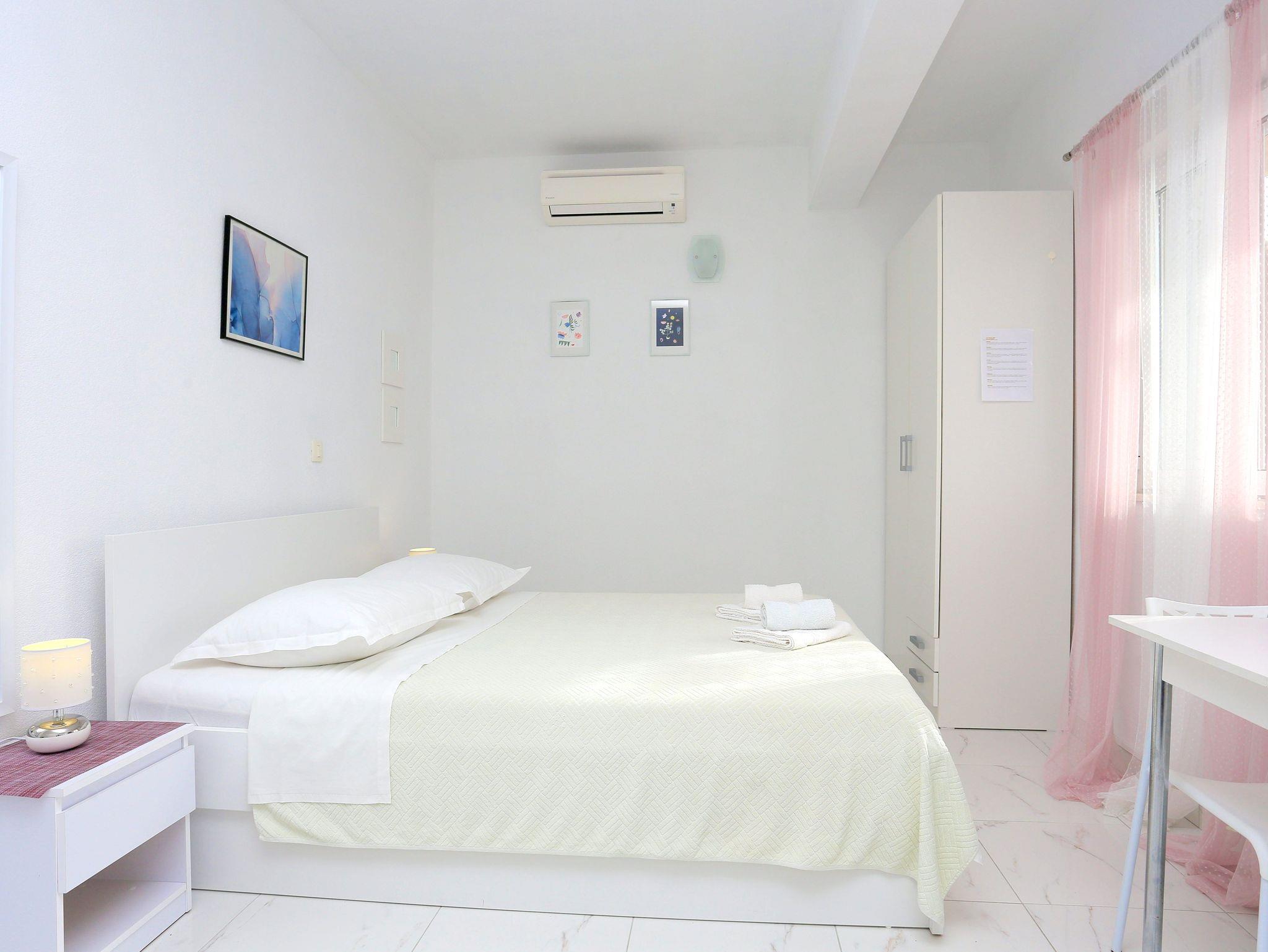 Studio bietet Platz für 3 Gäste. Die Betten sind in Schlafzimmern, die es 1 gibt, und in Wohnzimmer, innerhalb einer Gesamtfläche von 25m2, angeordnet. Die Gäste haben eine eigene Terrasse zur Verfügung, auf der sie in warmen Sommernächten genießen können. Das Studio-Apartment bietet Meerblick. Es ist erlaubt, Speisen auf dem Gemeinschafts-Grill vorzubereiten. In der Unterkunftseinheit besteht die Möglichkeit des Mitbringens von Haustieren gegen Aufpreis. IM PREIS INBEGRIFFEN: Kurtaxe, Endreinigung, Klimatisierung, Parkplatz, Internet, Wäschewaschen, Föhn. UNVERBINDLICHE ZUSÄTZLICHE KOSTEN: Haustiere (10,00 € pro Nacht). Die Verfügbarkeit zusätzlicher Dienstleistungen in Ihrem reservierten Termin und die Preise derselben (falls nicht aufgeführt) müssen im Voraus überprüft werden. Zusätzliche Dienstleistungen die in der Zahlungsaufforderung nicht aufgeführt sind werden direkt beim Vermieter bezahlt, angenommen der Gast nutzt auch diese.