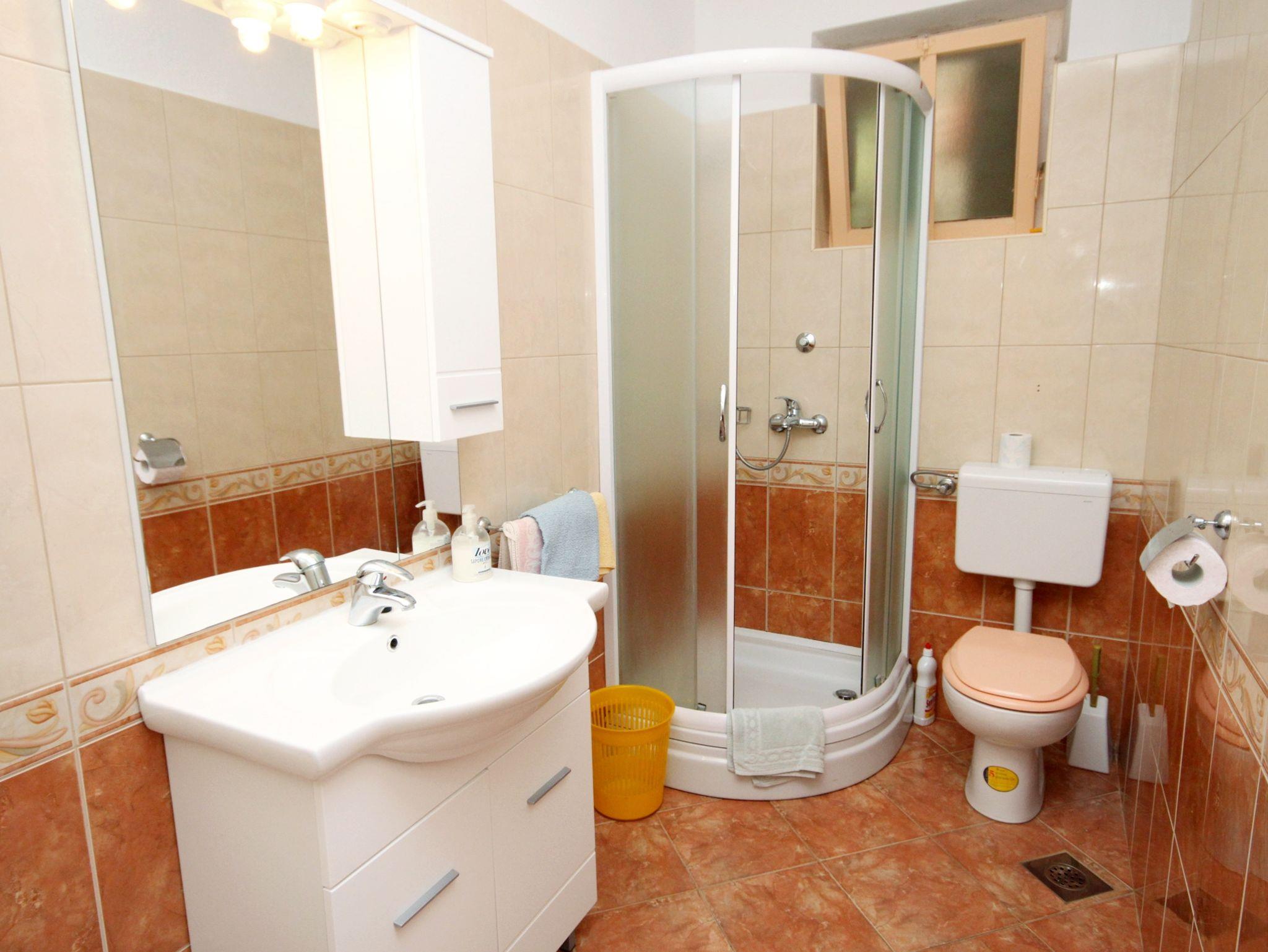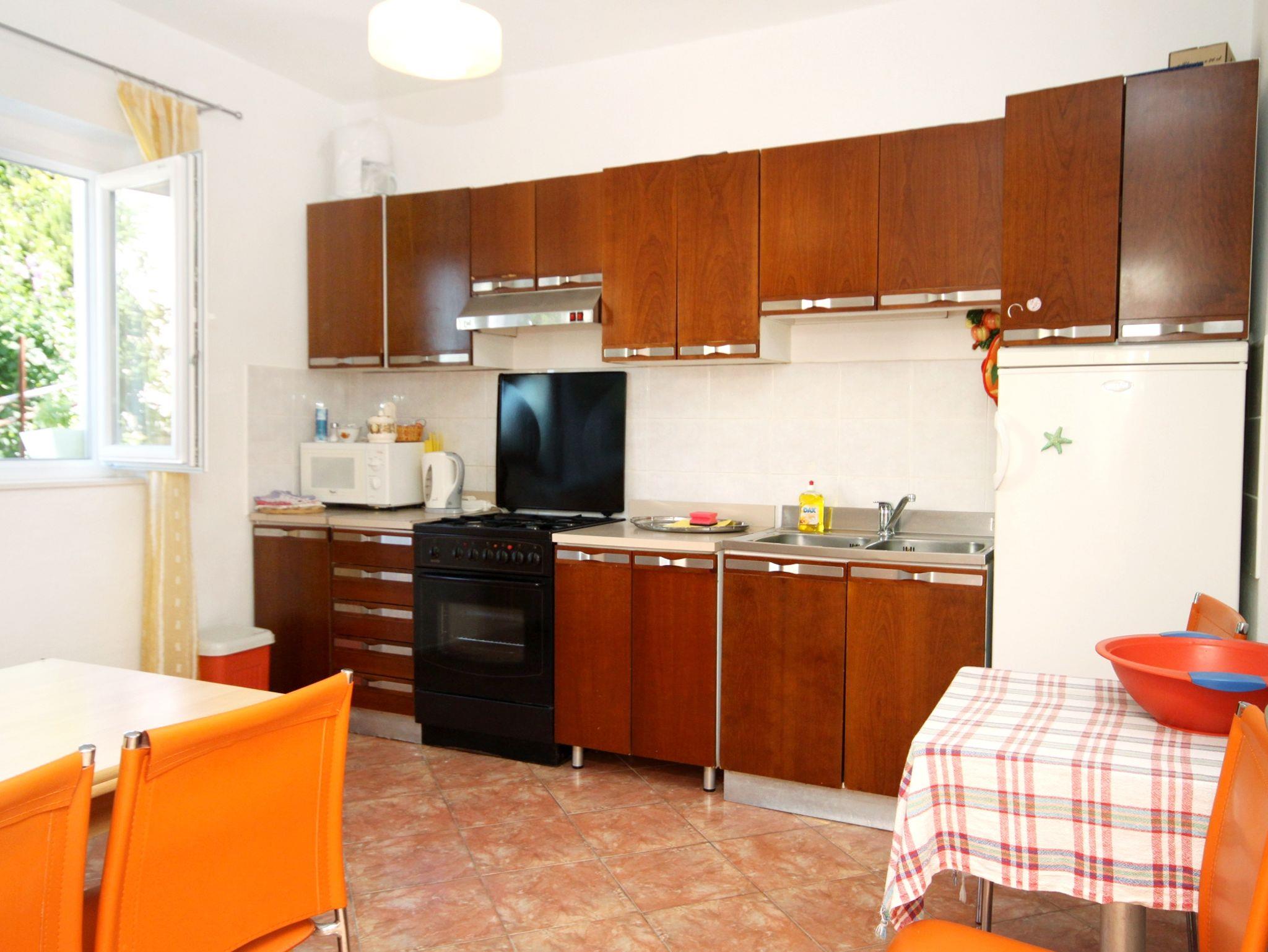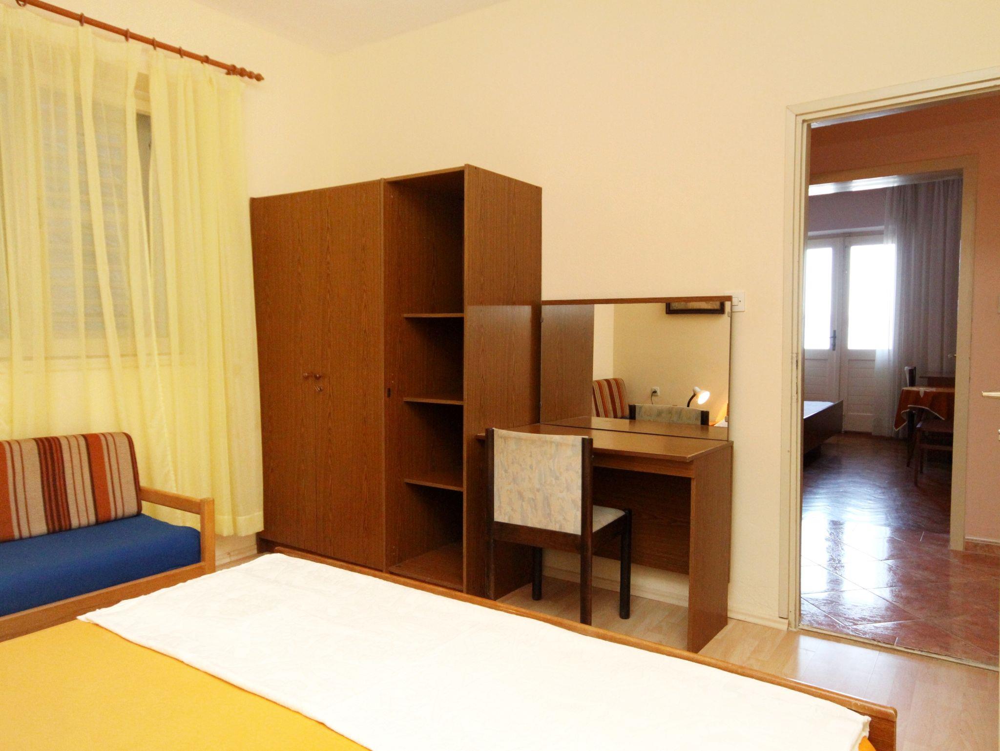 Ferienwohnung bietet Platz für 9 Gäste. Die Betten sind in Schlafzimmern, die es 4 gibt, innerhalb einer Gesamtfläche von 75m2, angeordnet. Die Gäste haben einen eigenen Balkon zur Verfügung, auf der sie in warmen Sommernächten genießen können. Das Apartment bietet Meerblick. Es ist erlaubt, Speisen auf dem Gemeinschafts-Grill vorzubereiten. IM PREIS INBEGRIFFEN: Kurtaxe, Endreinigung, Klimatisierung, Parkplatz, Internet, Wäschewaschen, Fahrrad, Bügeleisen, Bügelbrett, Föhn, tragbarer Grill. VERBINDLICHE ZUSÄTZLICHE KOSTEN: Aufzahlung für Kurzaufenthalte (prozentualer Zuschlag pro Nächtigungsanzahl: 30% - 1, 20% - 2, 10% - 3). Die Verfügbarkeit zusätzlicher Dienstleistungen in Ihrem reservierten Termin und die Preise derselben (falls nicht aufgeführt) müssen im Voraus überprüft werden. Zusätzliche Dienstleistungen die in der Zahlungsaufforderung nicht aufgeführt sind werden direkt beim Vermieter bezahlt, angenommen der Gast nutzt auch diese.