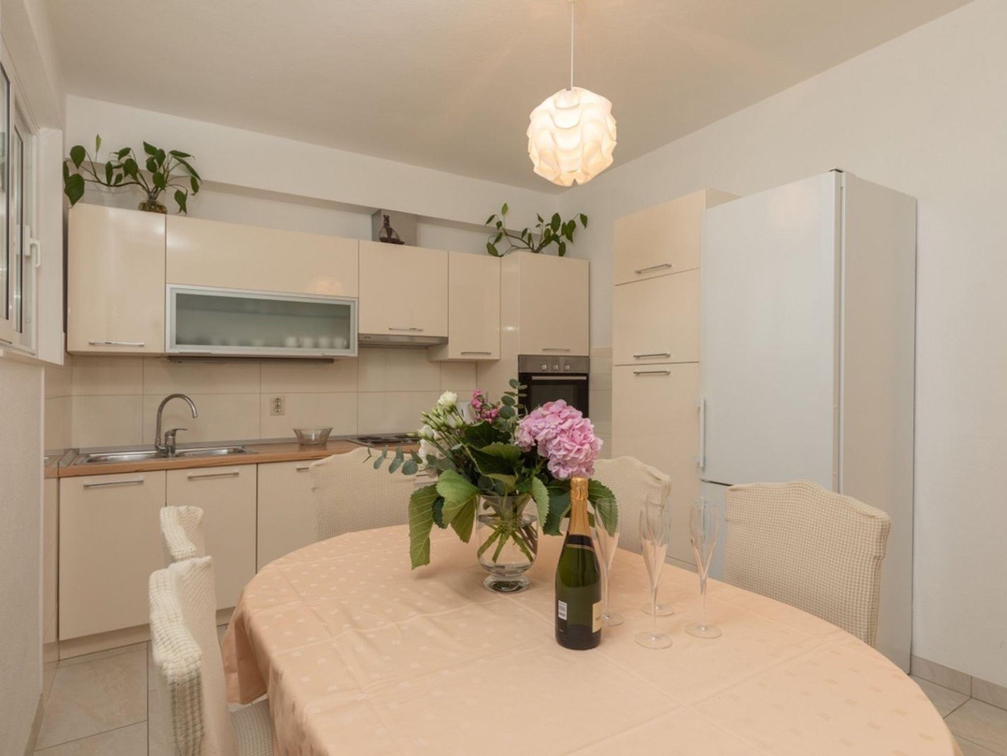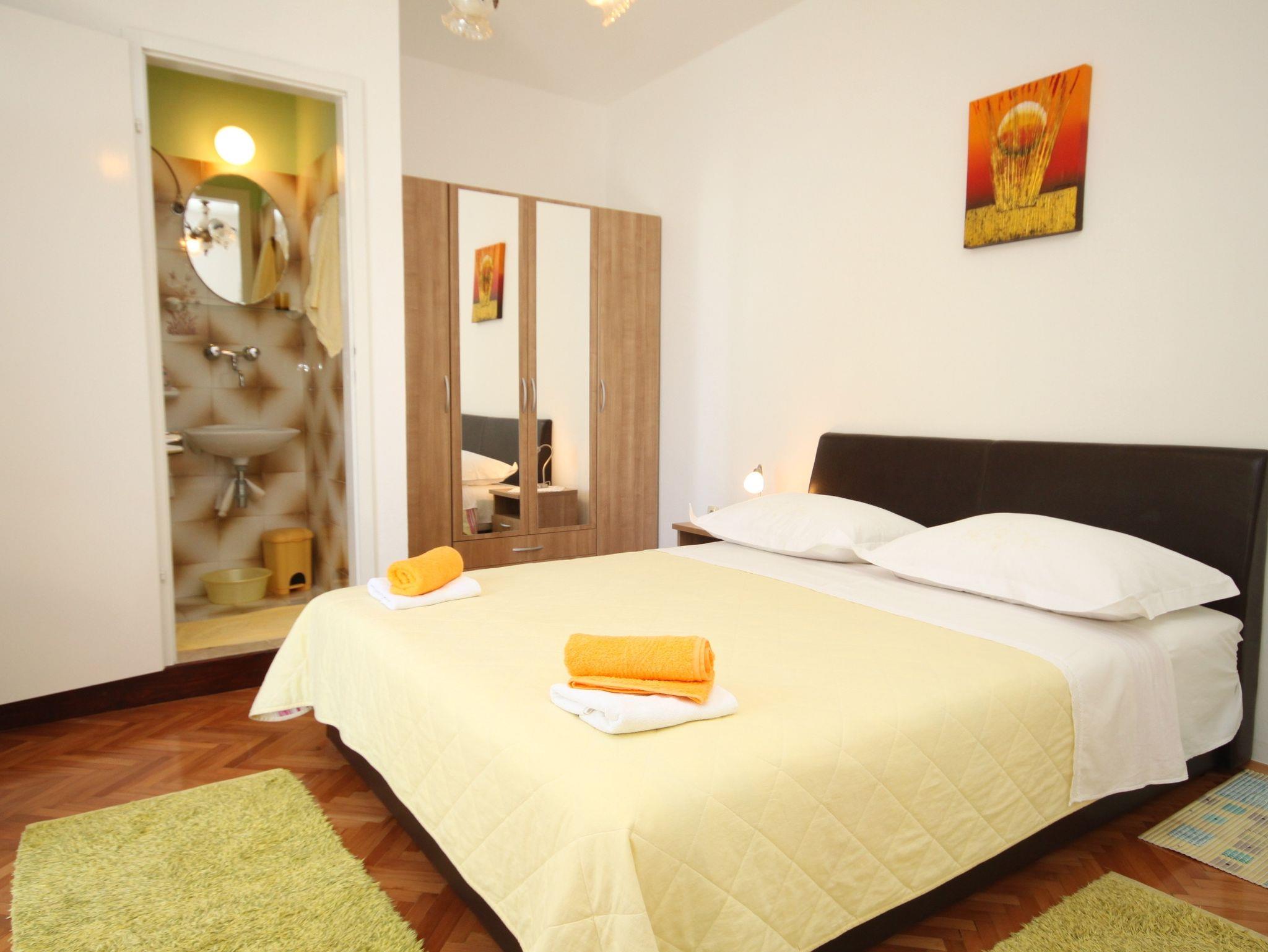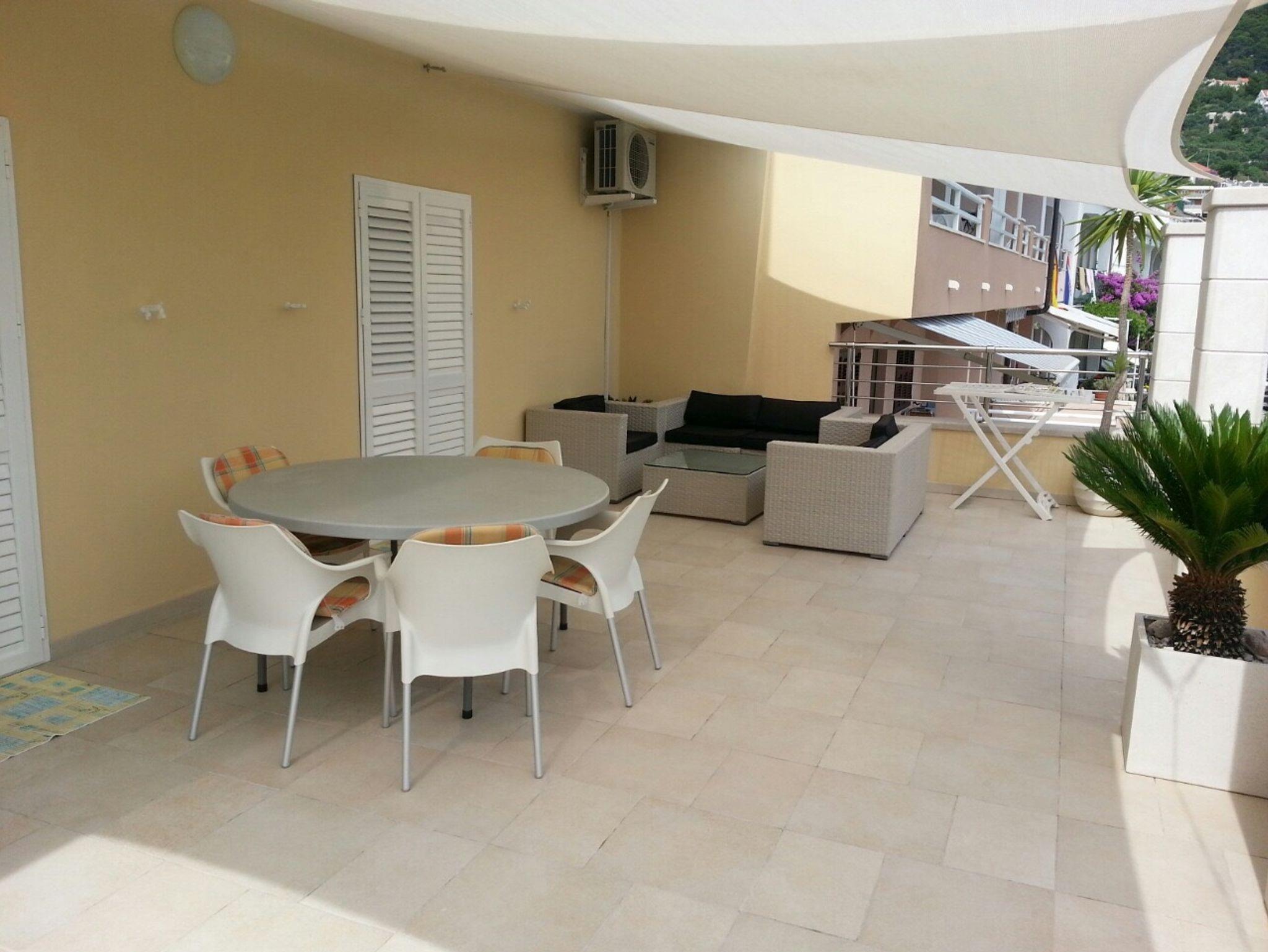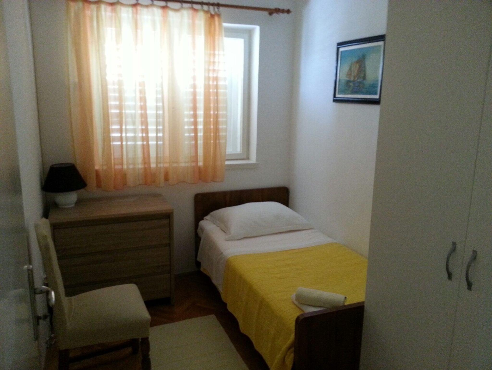 Ferienwohnung bietet Platz für 7 Gäste. Die Betten sind in Schlafzimmern, die es 4 gibt, innerhalb einer Gesamtfläche von 84m2, angeordnet. Die Gäste haben eine eigene Terrasse zur Verfügung, auf der sie in warmen Sommernächten genießen können. Das Apartment bietet Meerblick. IM PREIS INBEGRIFFEN: Kurtaxe, Endreinigung, Klimatisierung, Parkplatz, Internet, Bügeleisen, Bügelbrett. VERBINDLICHE ZUSÄTZLICHE KOSTEN: Aufzahlung für Kurzaufenthalte (prozentualer Zuschlag pro Nächtigungsanzahl: 30% - 1, 20% - 2, 10% - 3). Die Verfügbarkeit zusätzlicher Dienstleistungen in Ihrem reservierten Termin und die Preise derselben (falls nicht aufgeführt) müssen im Voraus überprüft werden. Zusätzliche Dienstleistungen die in der Zahlungsaufforderung nicht aufgeführt sind werden direkt beim Vermieter bezahlt, angenommen der Gast nutzt auch diese.