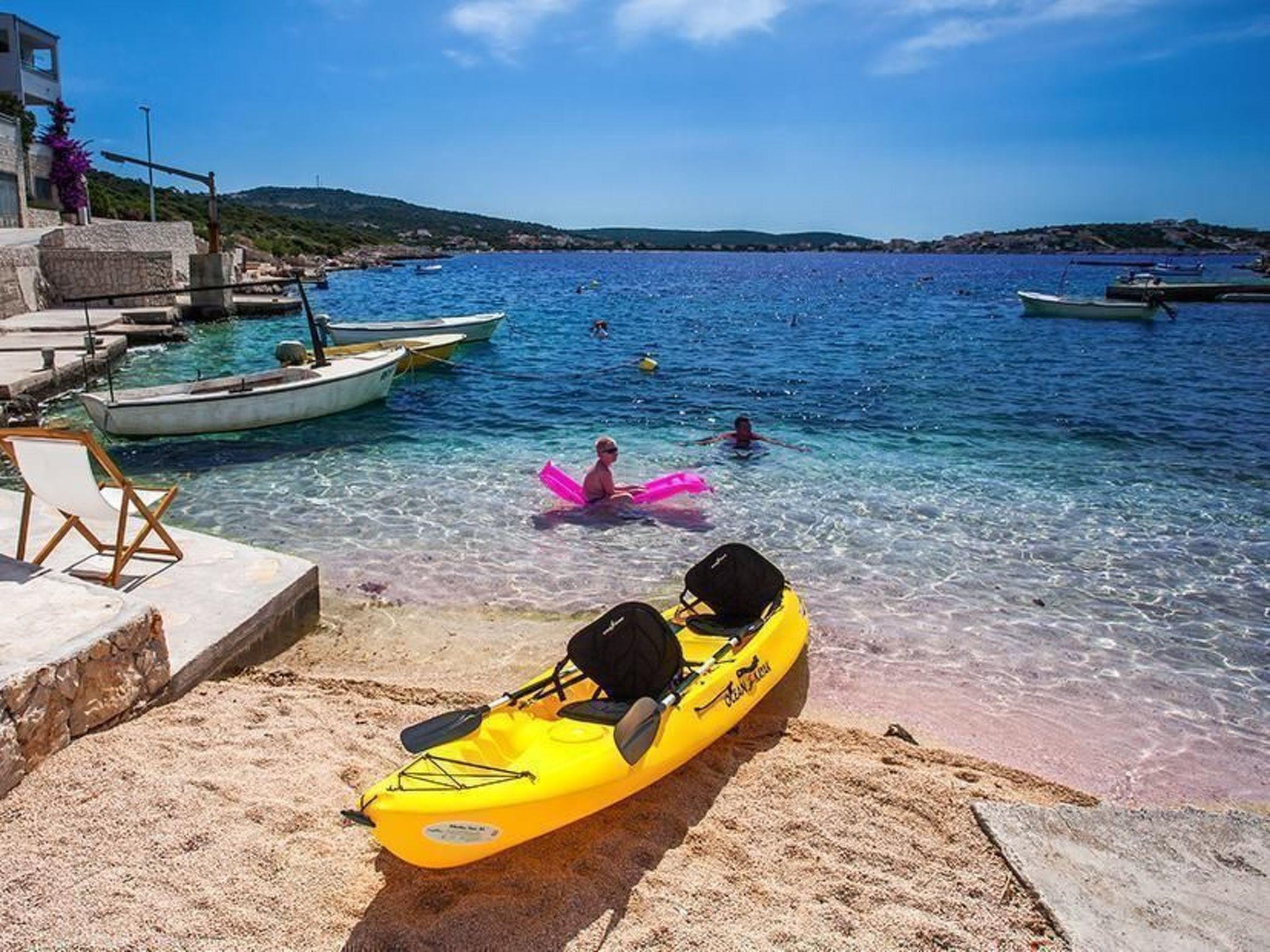 The pebbled beach is right opposite the house. The house is 12km from Rogoznica, 18km from Primošten, 20km from Trogir and 25km from Split airport. There is a café just 300 metres away. There are shops and restaurants in the vicinity. You can enjoy sports activities such as diving, windsurfing, waterskiing, paragliding and cycling on waymarked cycle paths. You can hire boats 6km away.