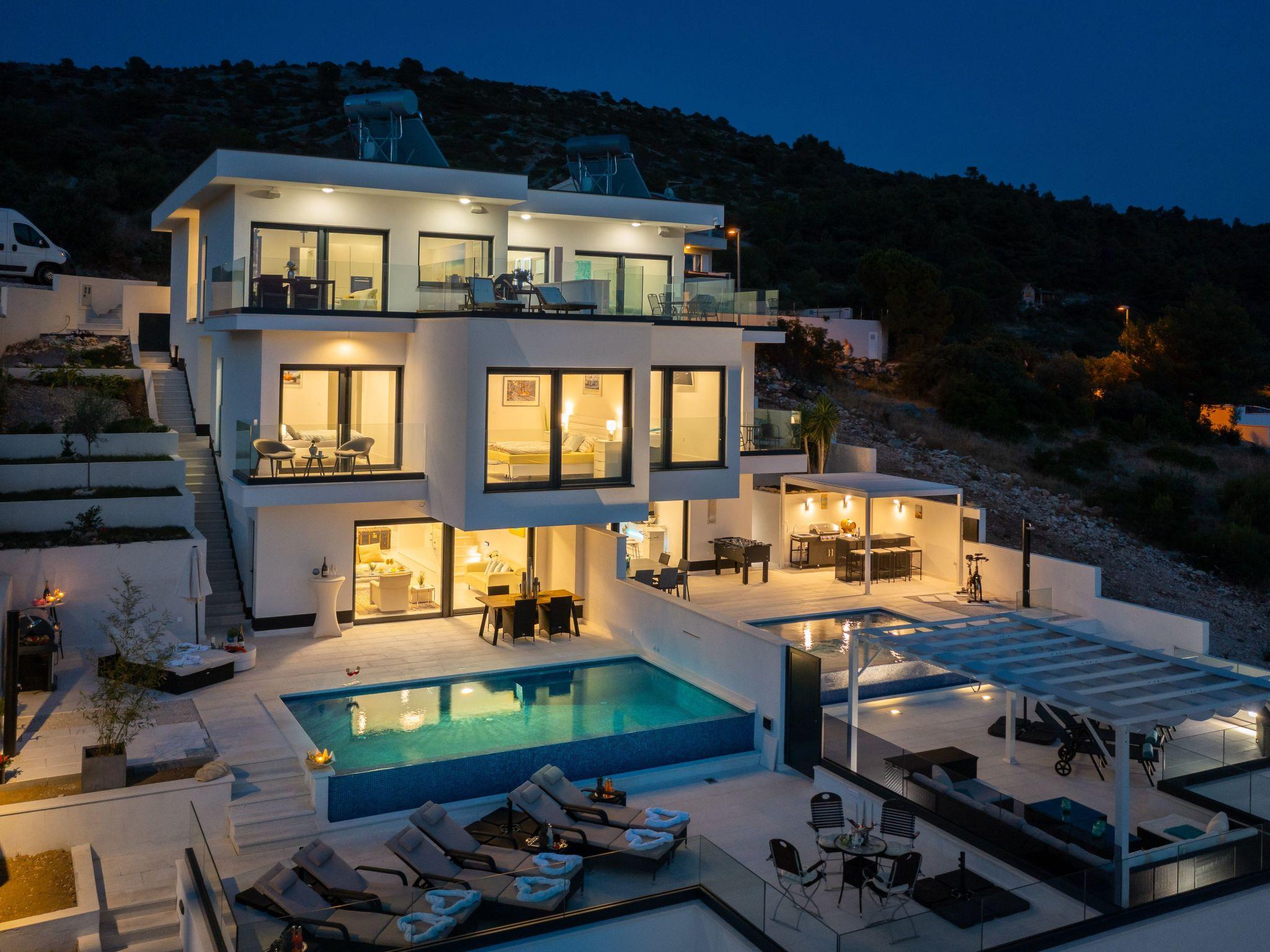 Rogoznica, about 3 km away, is one of the most beautiful marinas in Croatia. There are bathing facilities everywhere, gravel, concrete, some even with sand. The Dragon eye is one of the attractions in Rogoznica. Primosten about 10 km away is a popular excursion destination with a unique backdrop, this island town is a must for every holidaymaker. Trogir is about 20 minutes away and is highly recommended with its cosy old town. The rest of the fortress can be admired, but there is also a beautiful waterfront promenade with moorings for luxury yachts. The largest city in the region, Split, is about 45 minutes away. Nightlife, culture, shopping malls, the airport, everything is available here