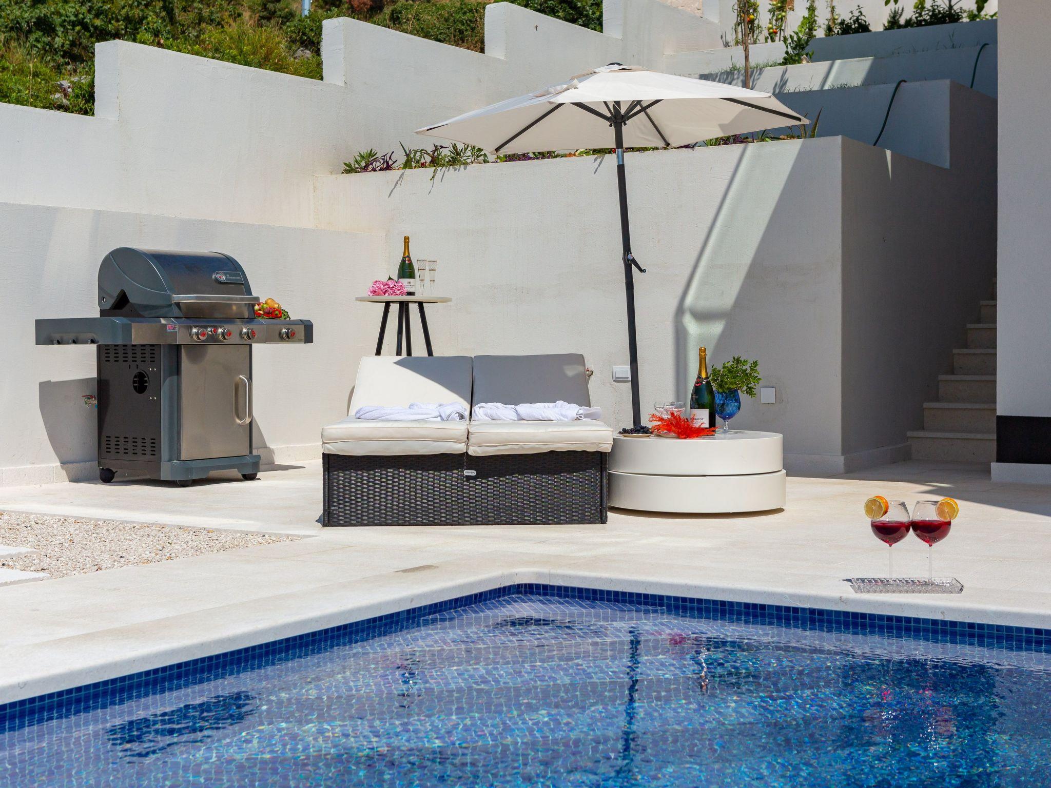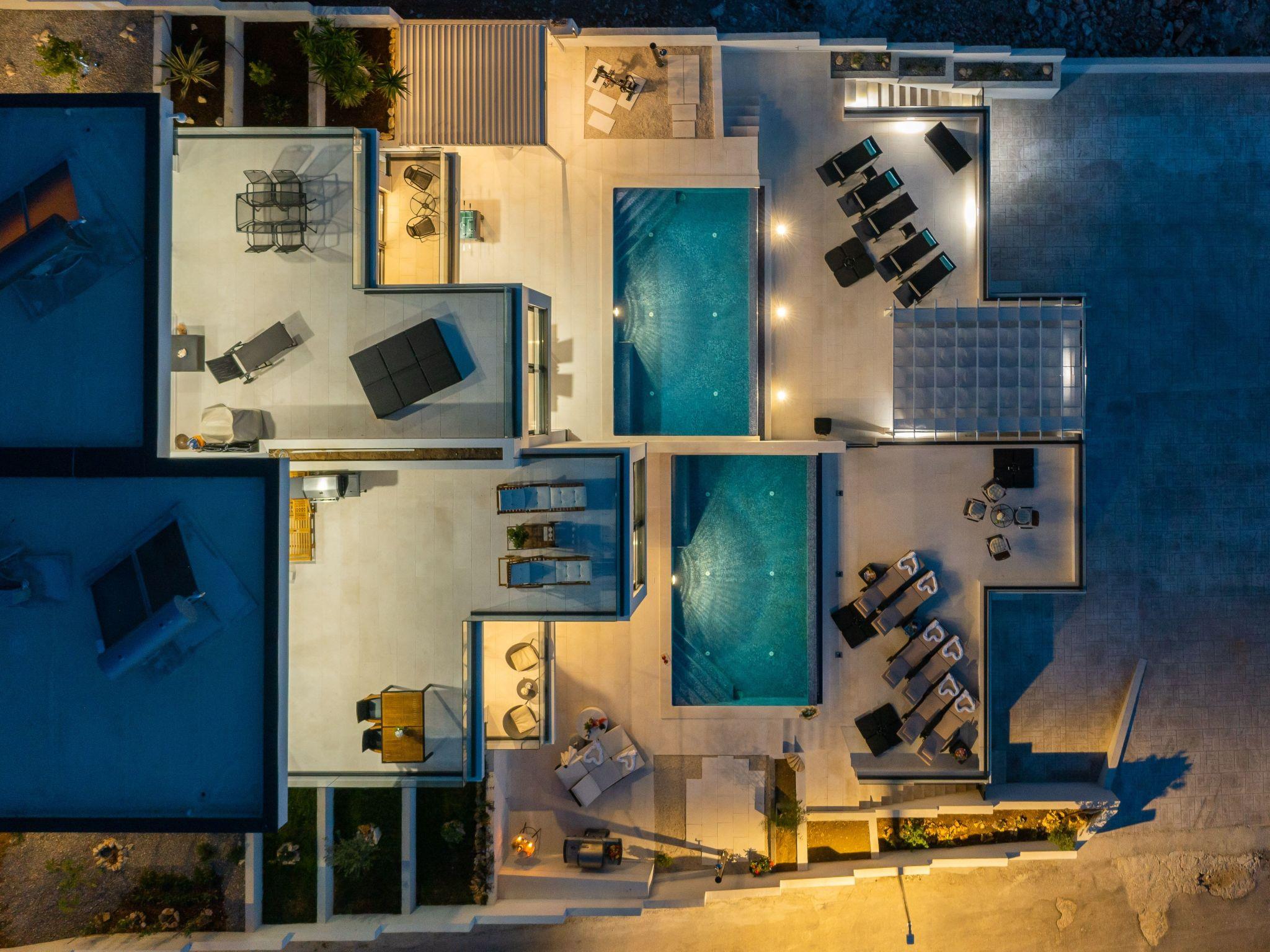 On the beach, which is about 80 metres from the house, there is always a place to sunbathe, even in the high season. Zatoglav is an absolutely quiet place, the road that leads to Zatoglav also ends here. So there is no through traffic. Rogoznica is just a few minutes away. There are several supermarkets, banks, doctors and of course many restaurants offering fresh fish. For those who like to prepare their own fish, there is also a fish market offering the catch of the day. Several bakeries offer fresh bread every day and there is also a delivery service to the villas. The Marina Frappa harbour guarantees sophisticated boats and maritime flair. In addition to live music during the season, there are also culinary delights right on the harbour. The jetties are open and the boats can be used for souvenir photos.