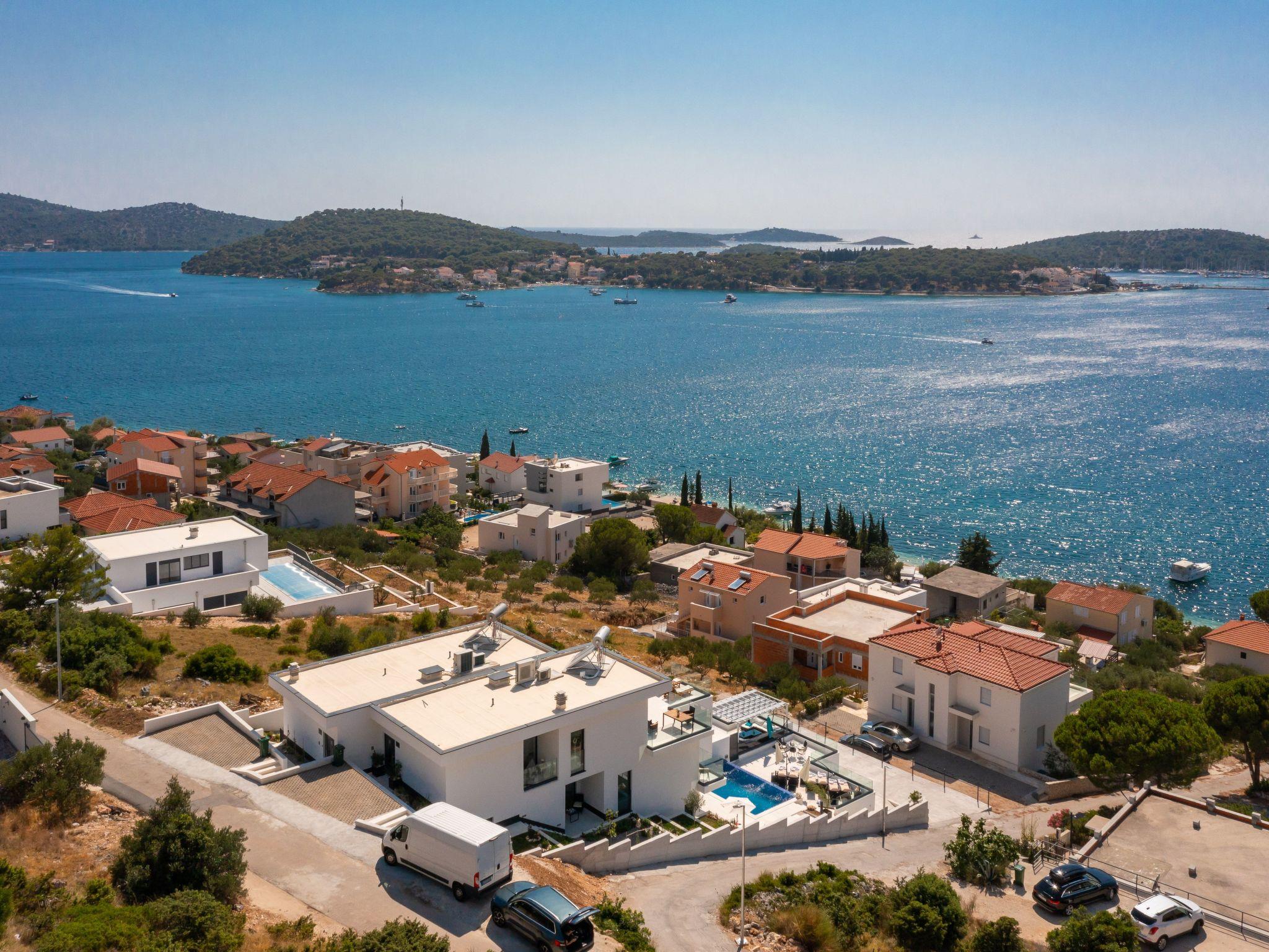 The west-facing villa guarantees unforgettable sunsets. The pictures with the unique panorama are ideal for posting. All rooms are with sea view, balcony, terrace and smart TV. The towns of Primosten & Marina Frappa can be reached in a few minutes. In Rogoznica you will find many nice bars & restaurants on the new promenade. It is only about 80 metres from the villa to the beach & sea.