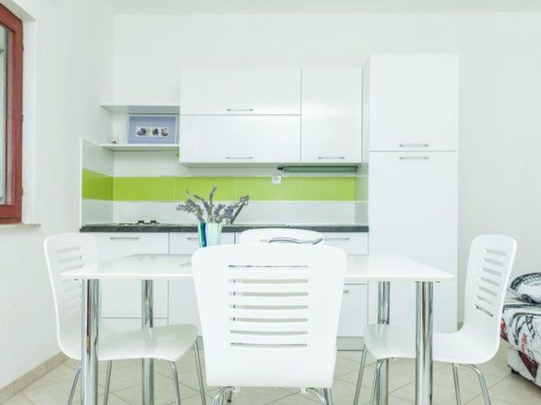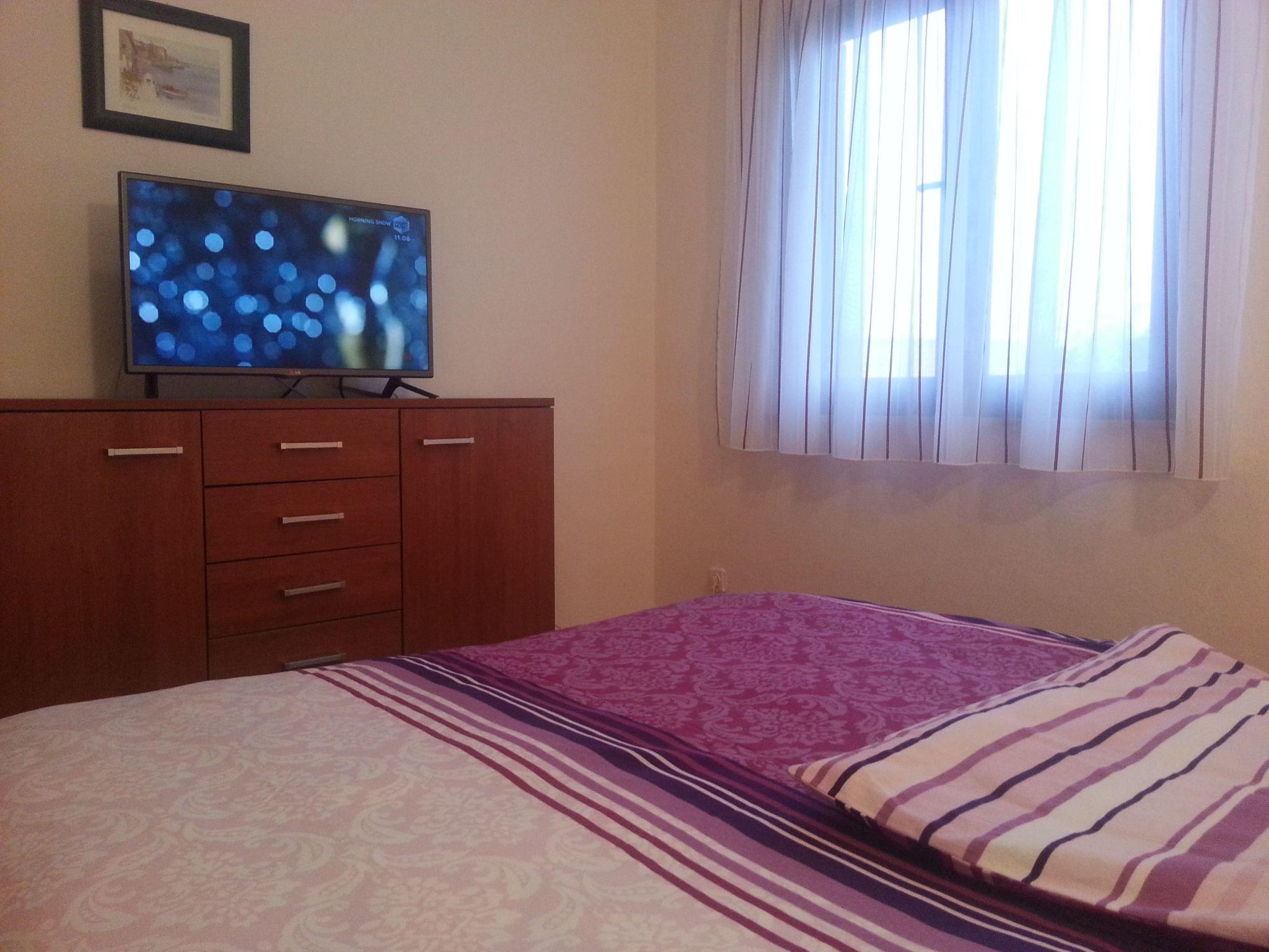 This apartment with a separate entrance is on the first floor and can accommodate up to four people. The bedroom has a big double bed, a wardrobe and a flatscreen TV with a satellite receiver. The bathroom consists of a shower, washbasin and toilet. The open living and dining room with a kitchen provides a sofa bed for two children and a dining table with four chairs. The kitchen unit is equipped with a two-ring hob, a fridge-freezer, a microwave and a coffee machine.