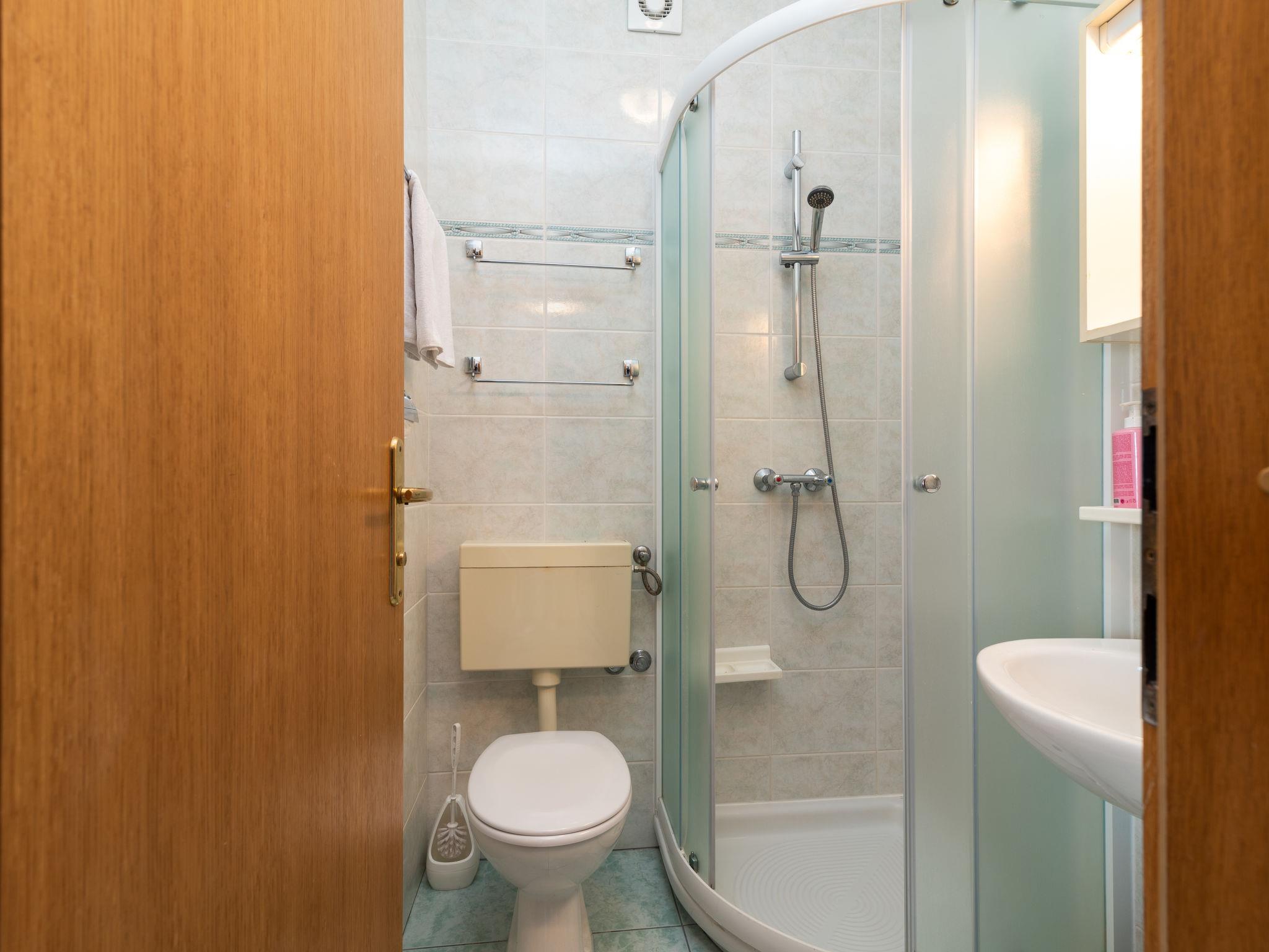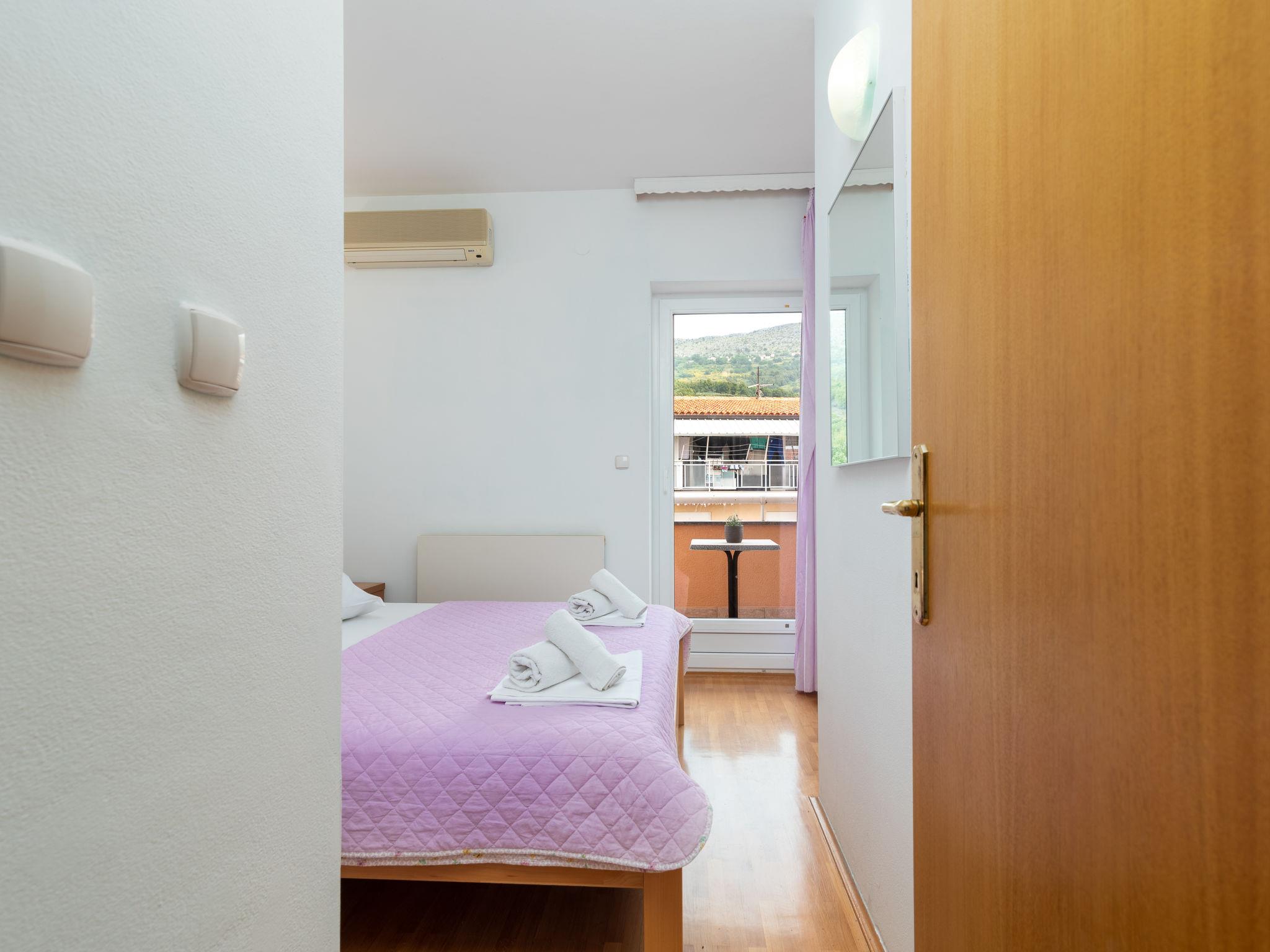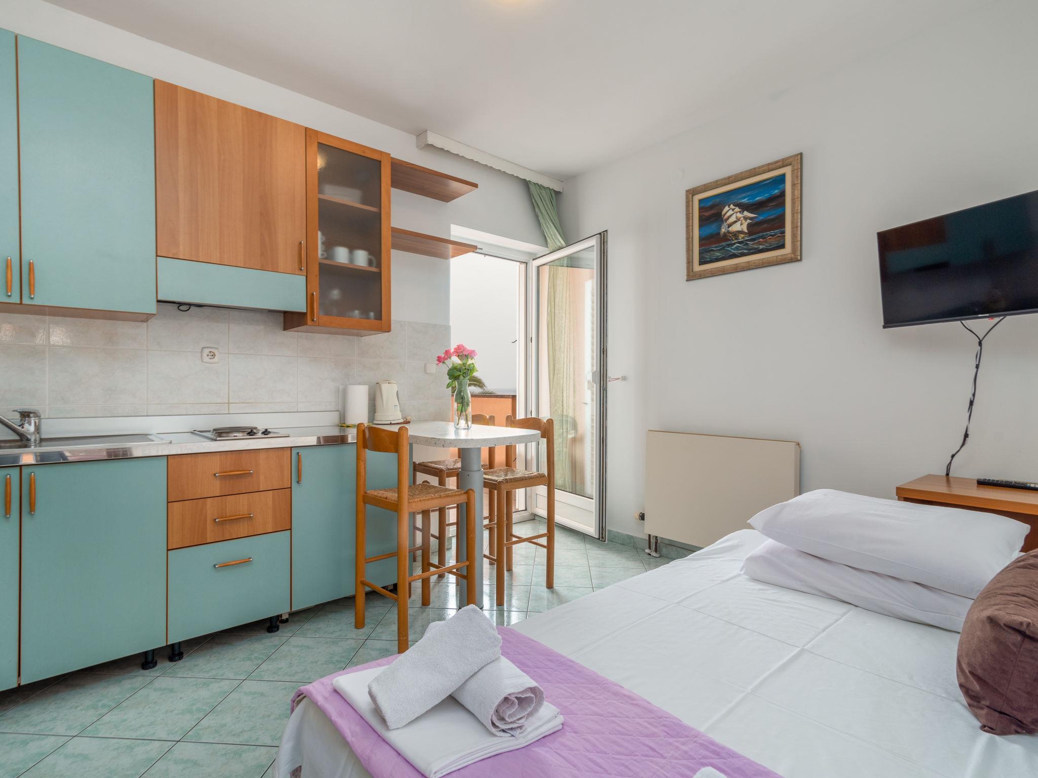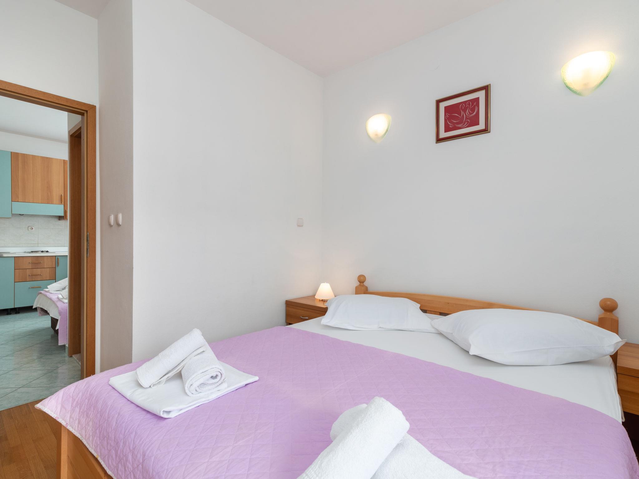 "Jerkan 15", 2-room apartment 22 m2 on 2nd floor, south facing position. Living/dining room with 1 double sofabed (160 cm, length 2 cm), satellite TV (flat screen), air conditioning. Exit to the balcony. 1 room with 1 french bed (180 cm, length 200 cm), air conditioning. Exit to the balcony. Open kitchen (2 hot plates, kettle, freezer). Shower/WC. 2 balconies 4 m2. Balcony furniture. Very beautiful panoramic view of the sea. Facilities: hair dryer. Internet (WiFi, free).
