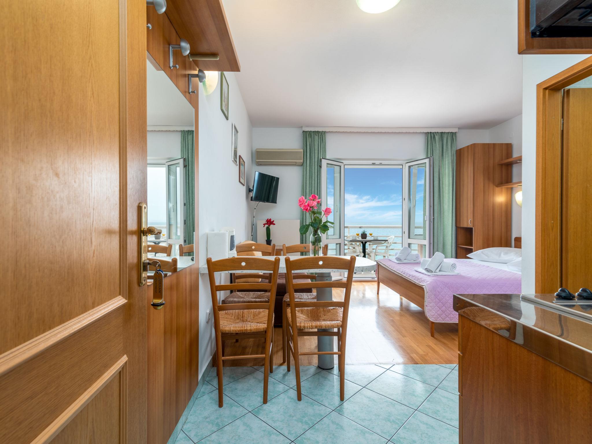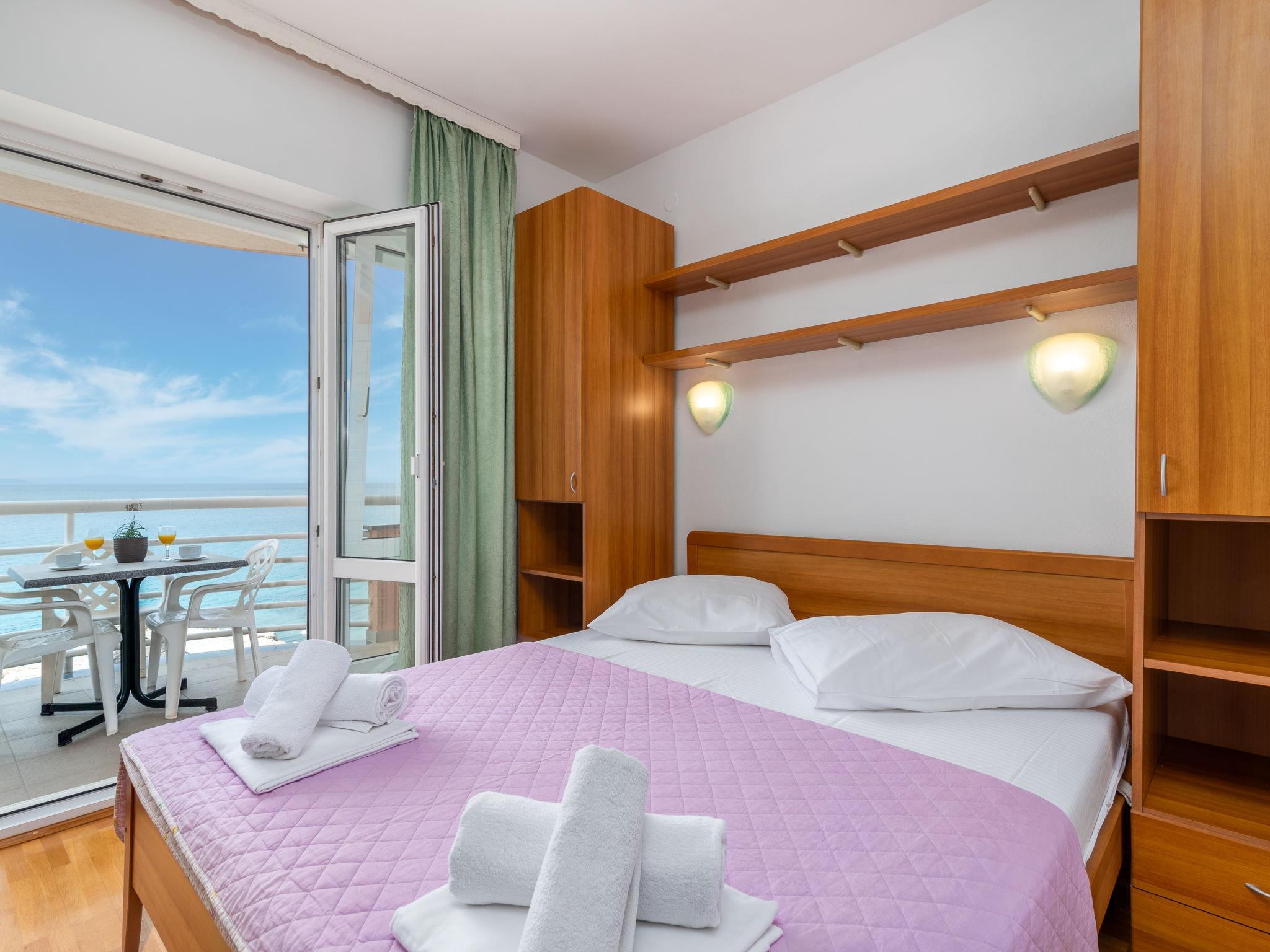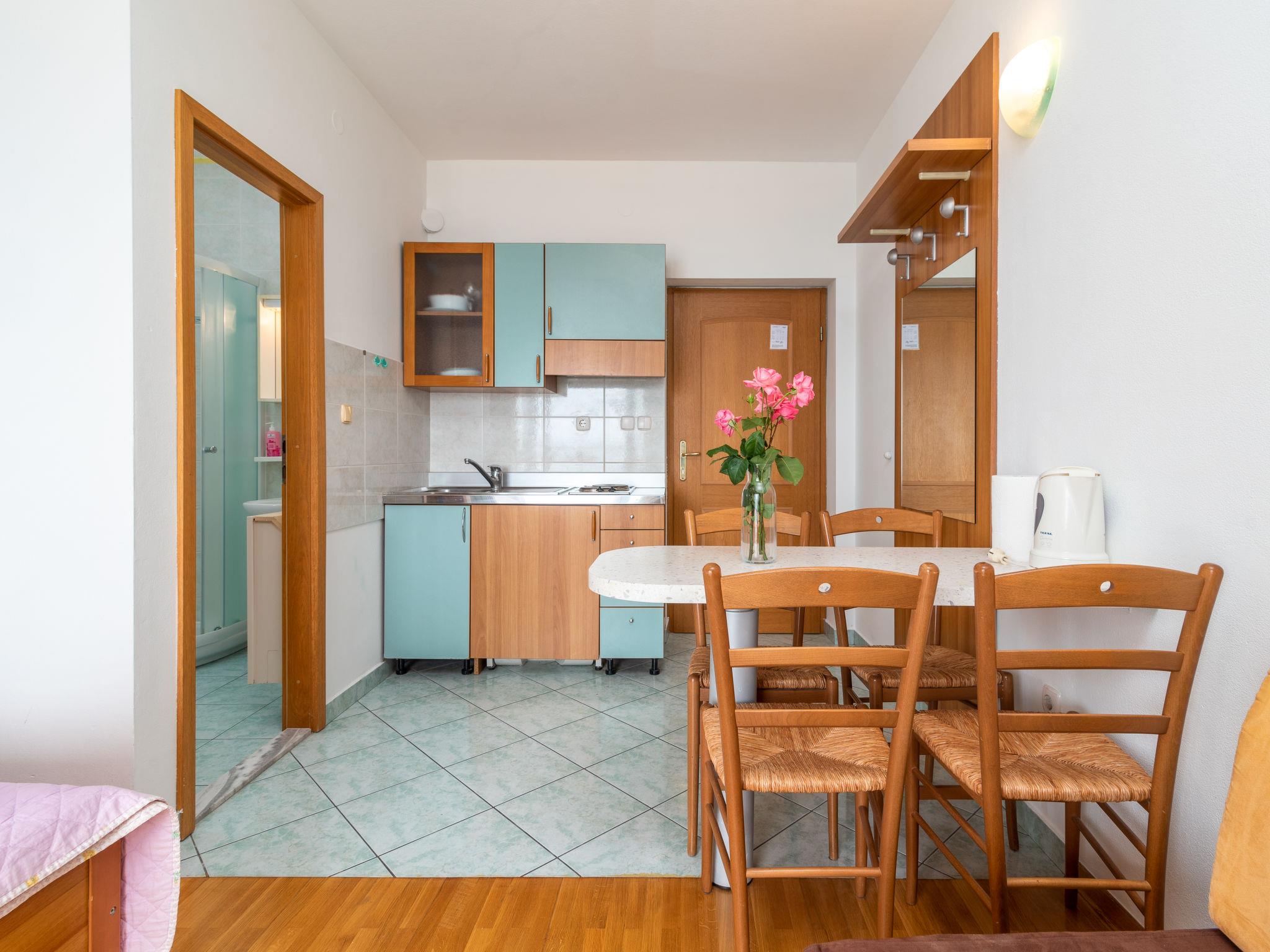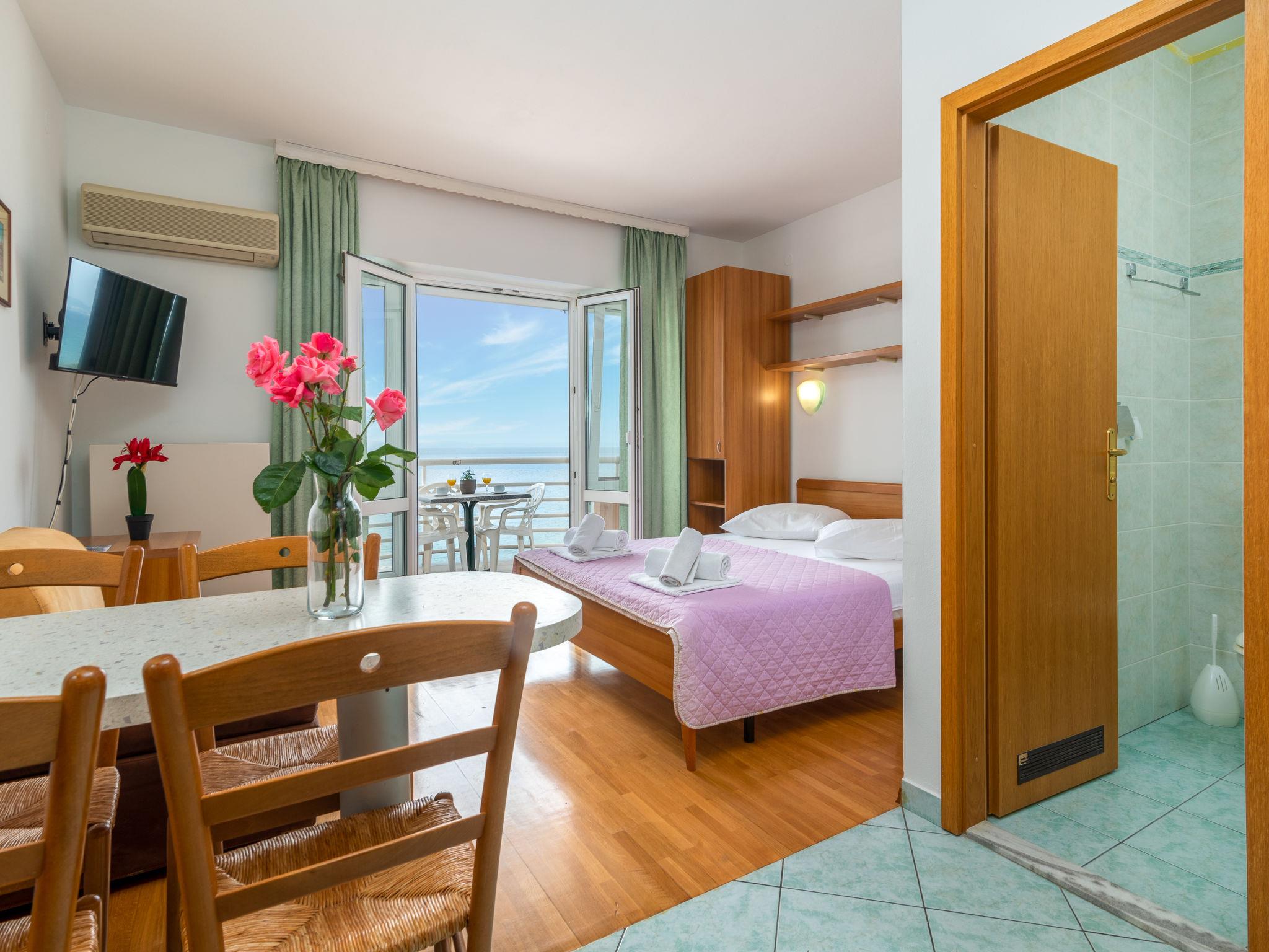 "Jerkan 16", 1-room studio 19 m2 on 2nd floor, south facing position. Living/sleeping room with 1 french bed (180 cm, length 200 cm), 1 folding bed (80 cm, length 200 cm), satellite TV (flat screen), air conditioning. Exit to the balcony. Open kitchen (2 hot plates, kettle, freezer). Shower/WC. Balcony 7 m2. Balcony furniture. Very beautiful panoramic view of the sea. Facilities: hair dryer. Internet (WiFi, free).